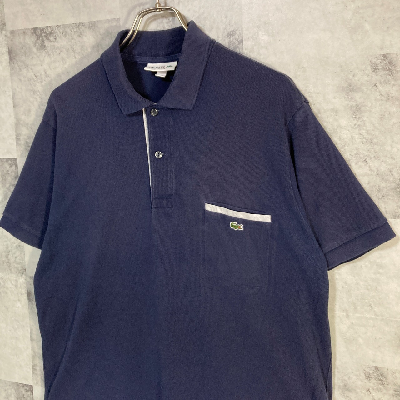 LACOSTE ラコステ 半袖 ポロシャツ 鹿子 ワンポイント刺繍ロゴ ネイビー L