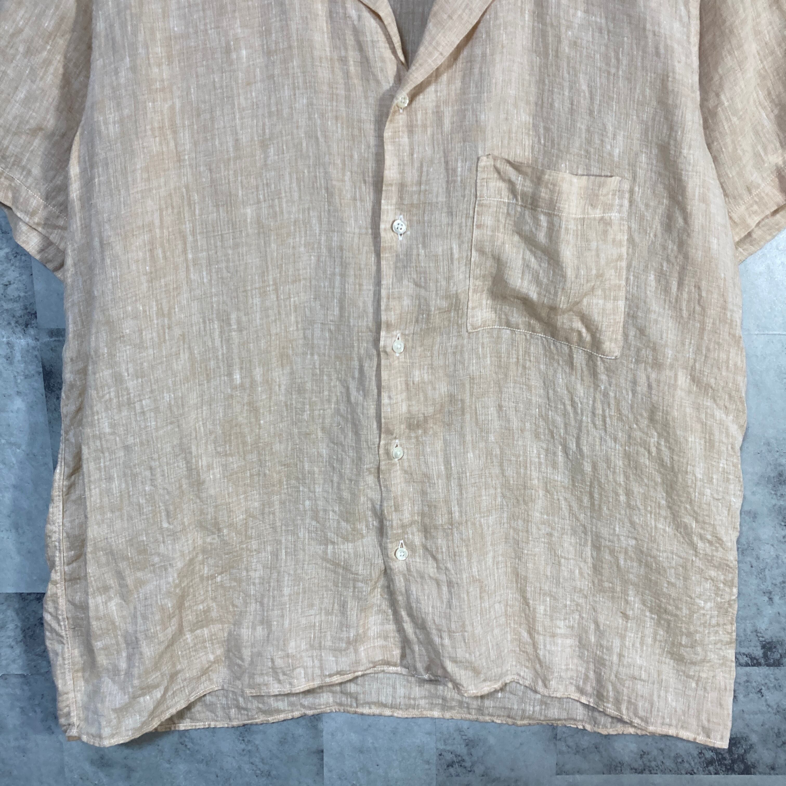 USA製 INDIVIDUALIZED SHIRTS インディヴィジュアライズド シャツ 半袖 開襟シャツ リネン ベージュ L