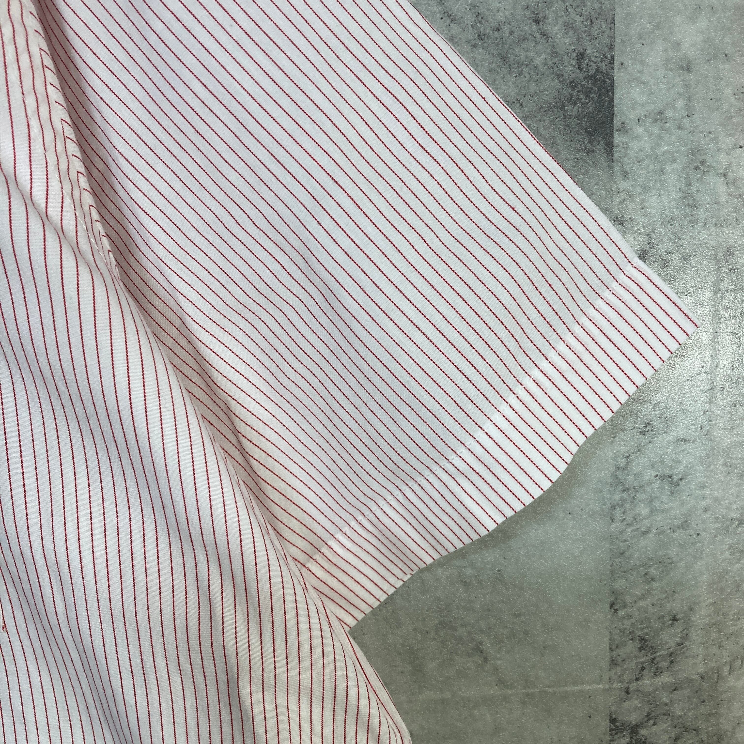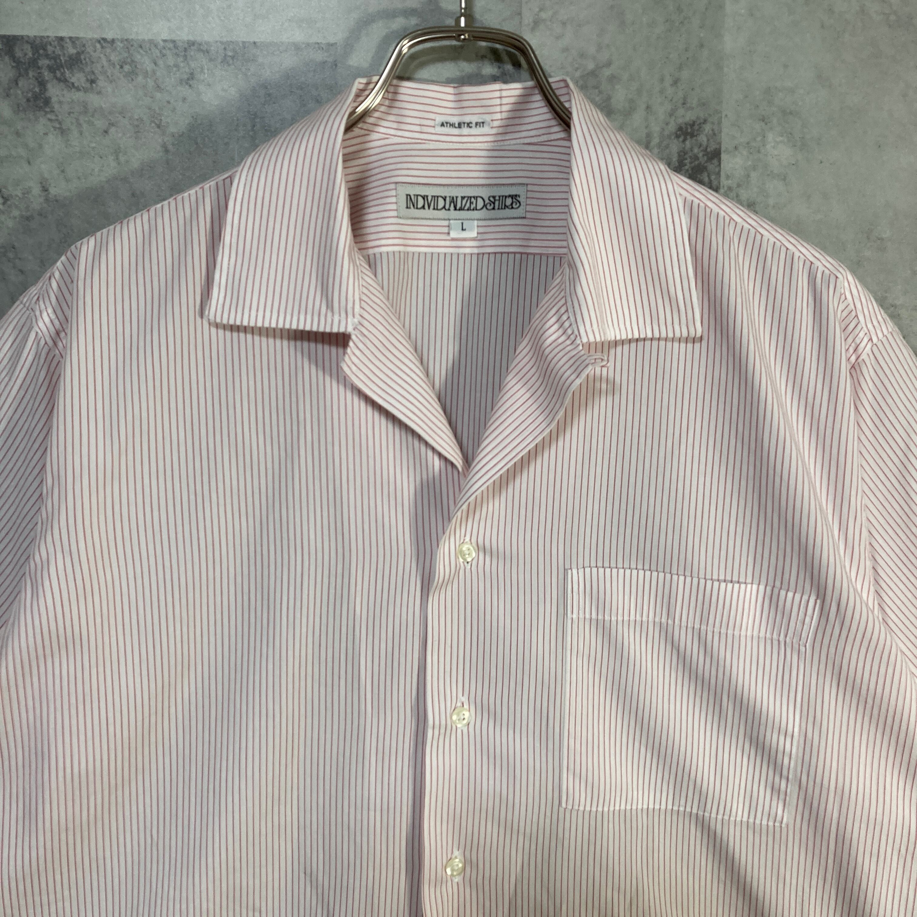 USA製 INDIVIDUALIZED SHIRTS インディヴィジュアライズド シャツ 半袖 開襟シャツ コットン ストライプ レッド L