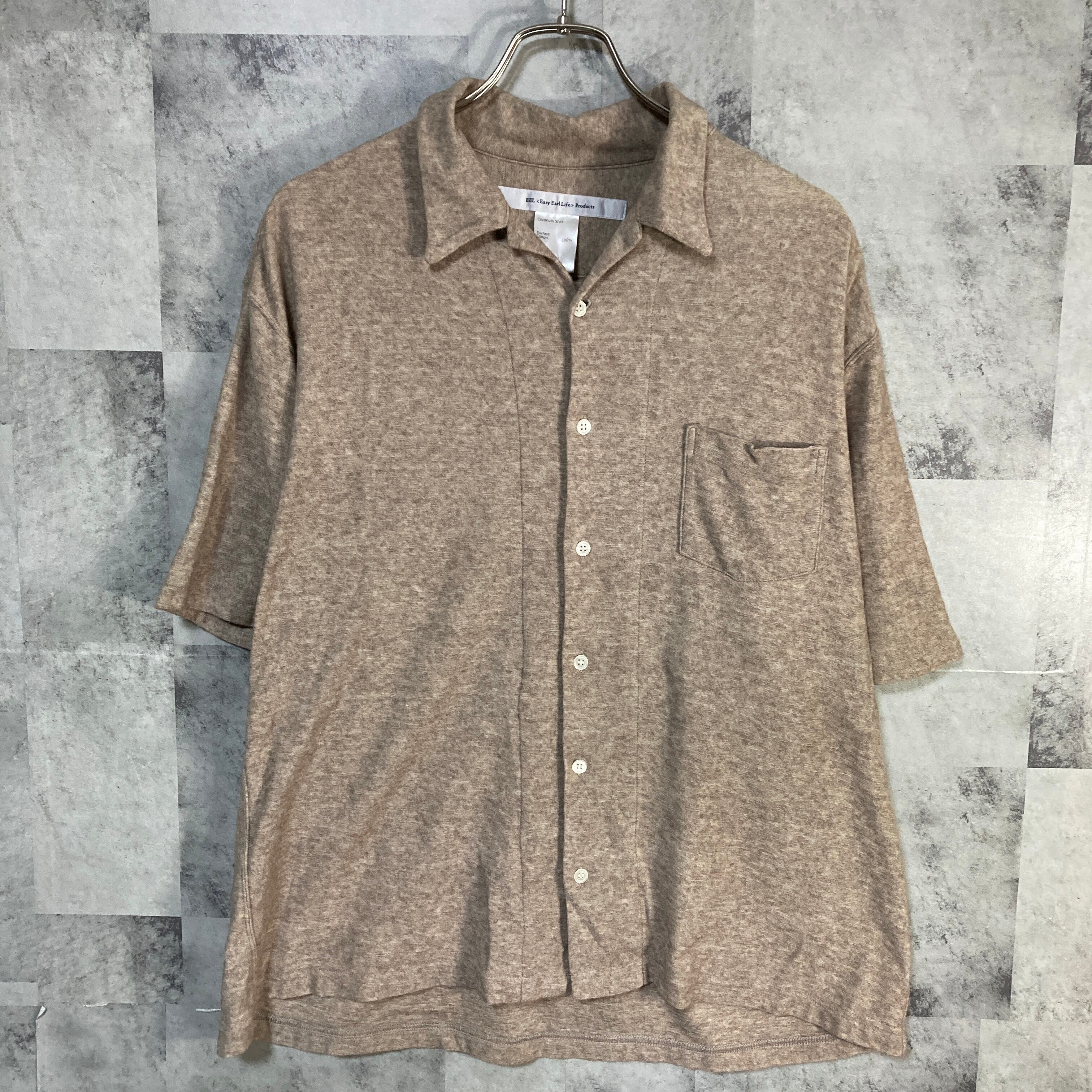 日本製 EEL イール オープンカラー シャツ パイル地 ブラウン M