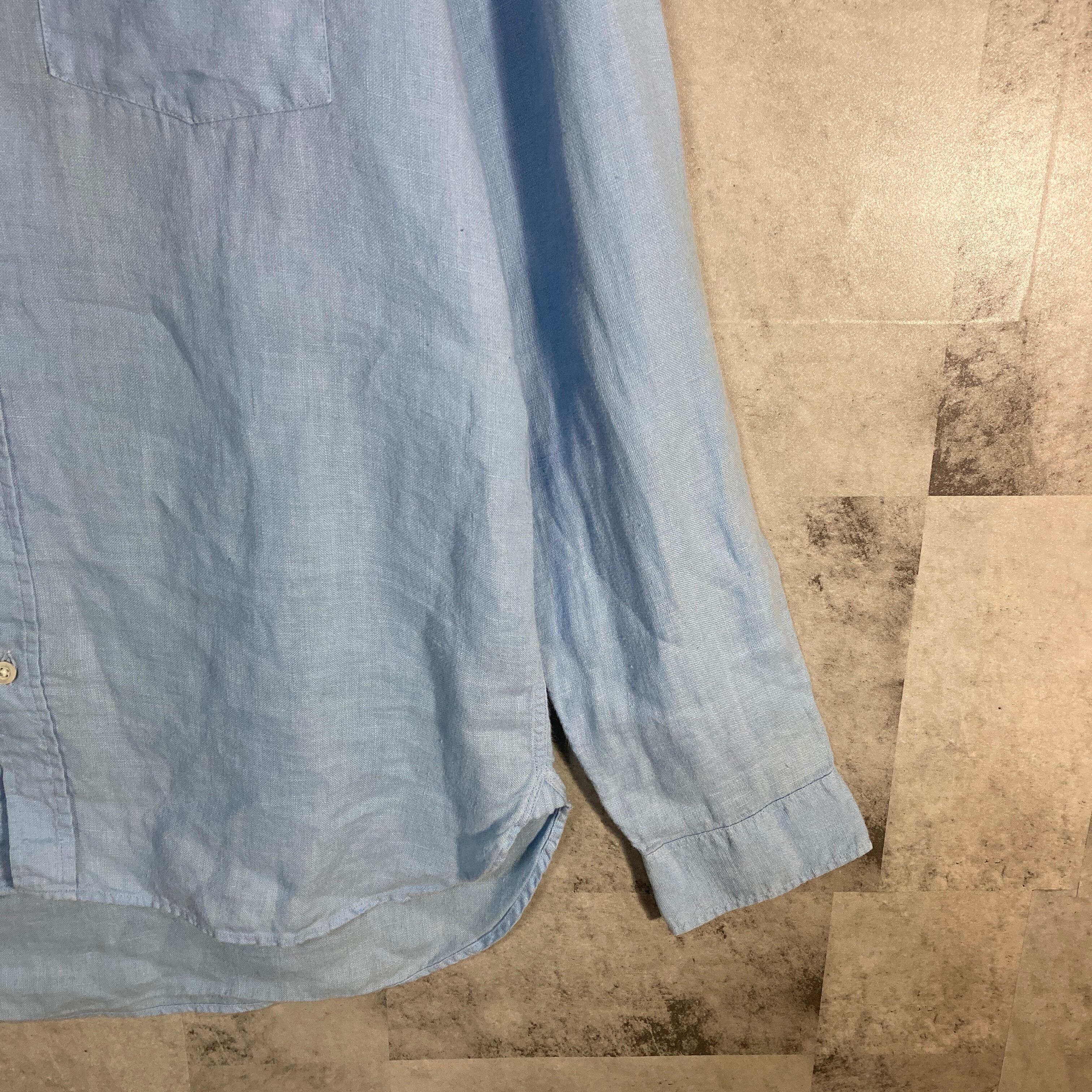 英国製 Bennetts Lane Shirts ベネッツレーンシャツ バンドカラー リネン サックスブルー M