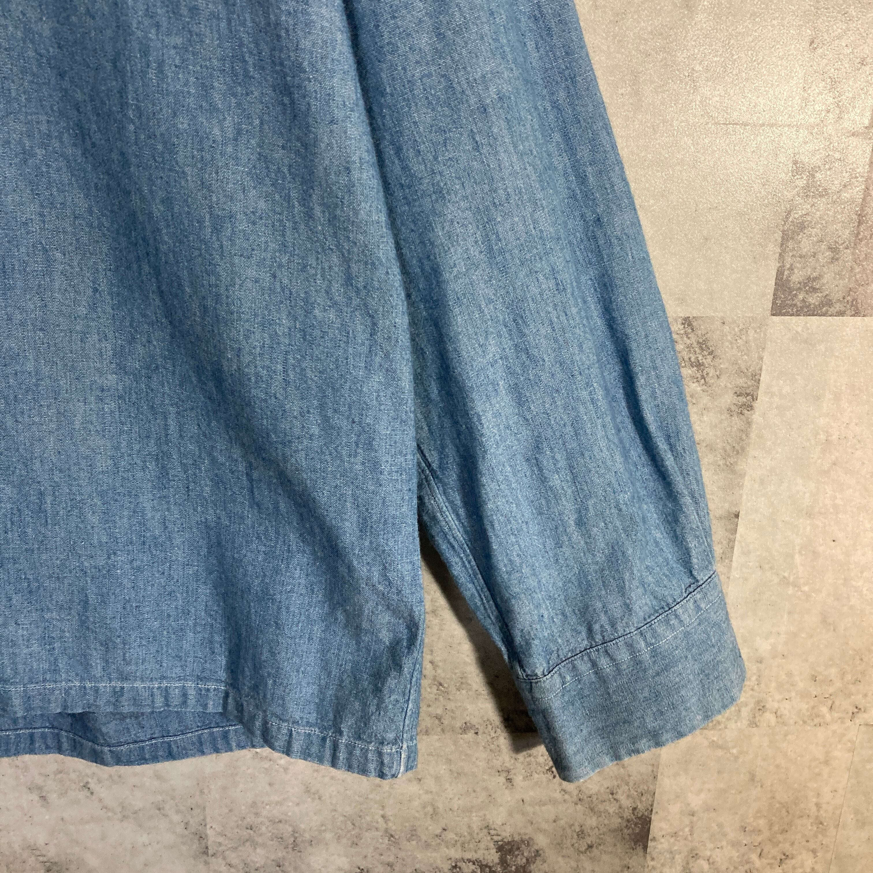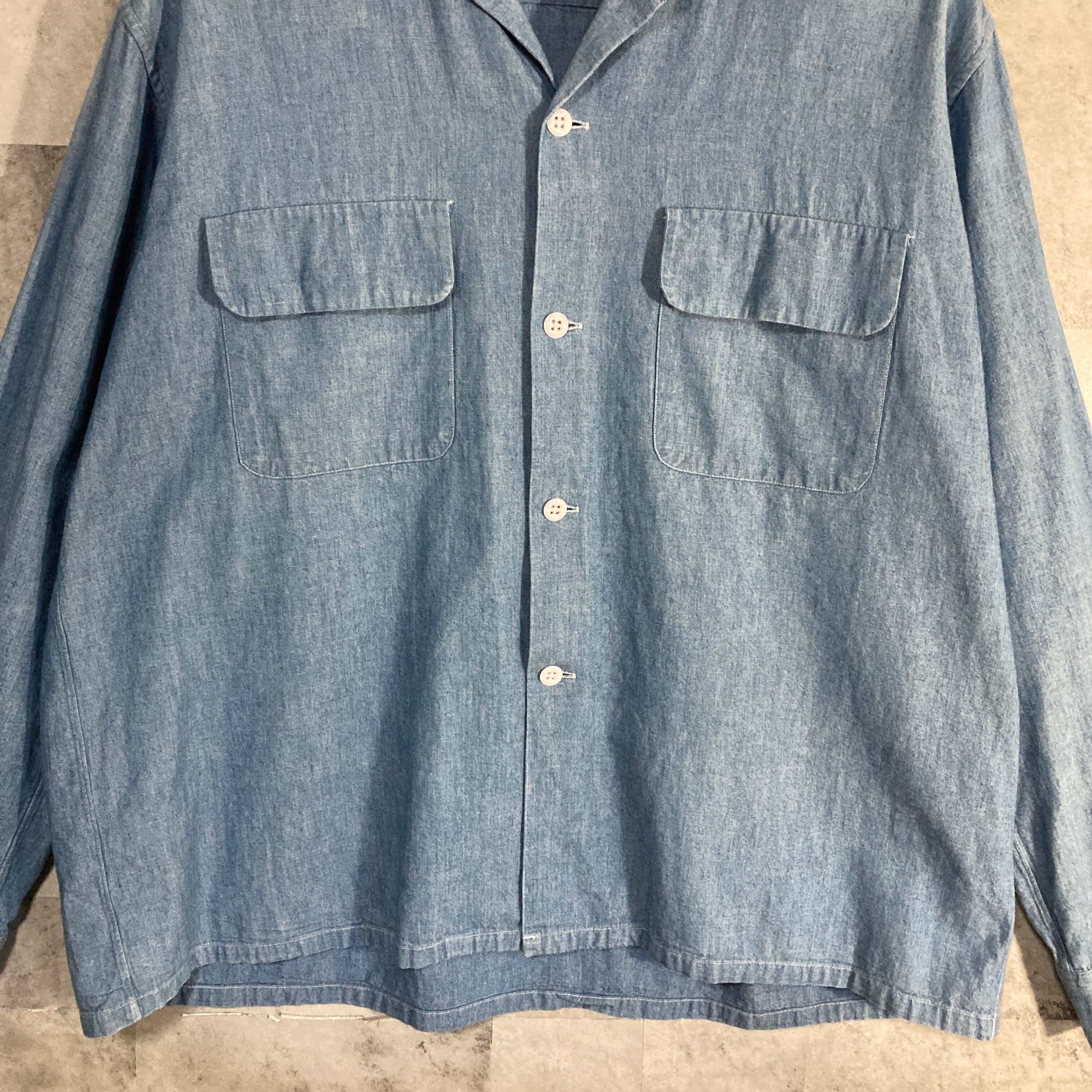 日本製 Sans limite サンリミット オープンカラー ダンガリーシャツ サックスブルー M