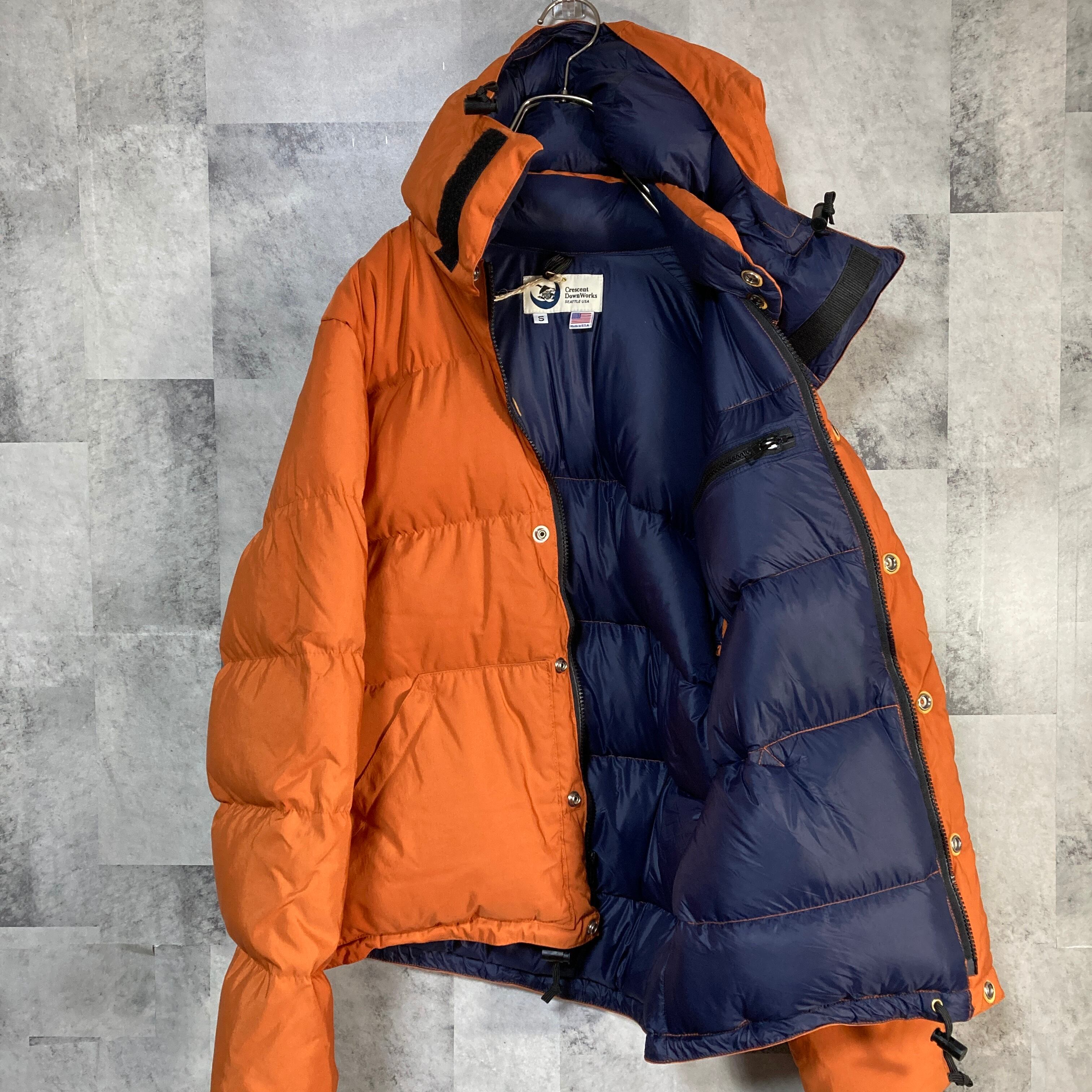 USA製 Crescent Down Works クレセントダウンワークス フーディー ダウンジャケット 60/40 クロス オレンジ S ダウンセーター
