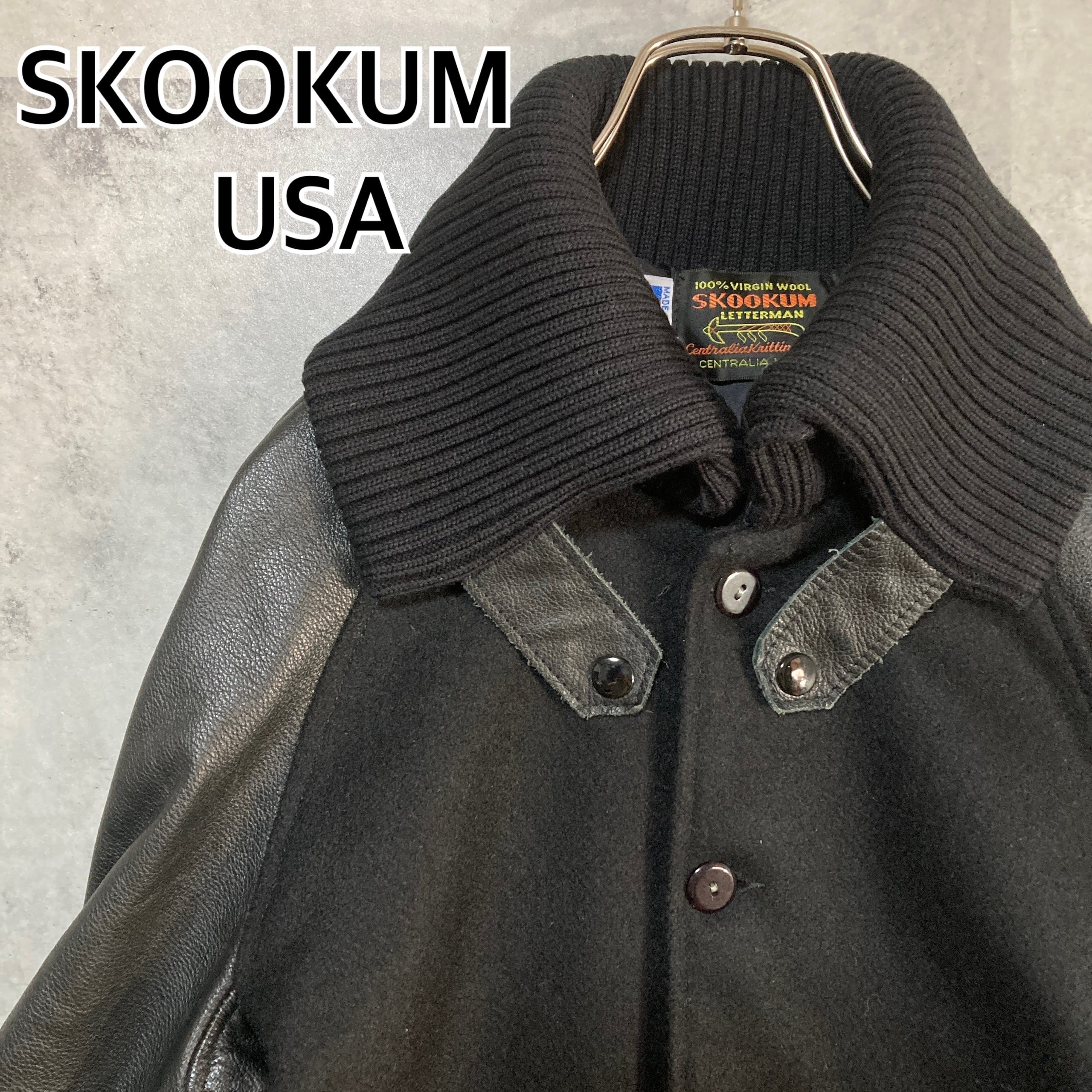 USA製 SKOOKUM スクーカム ドンキージャケット ショート丈 袖レザー スタジャン ブラック 34