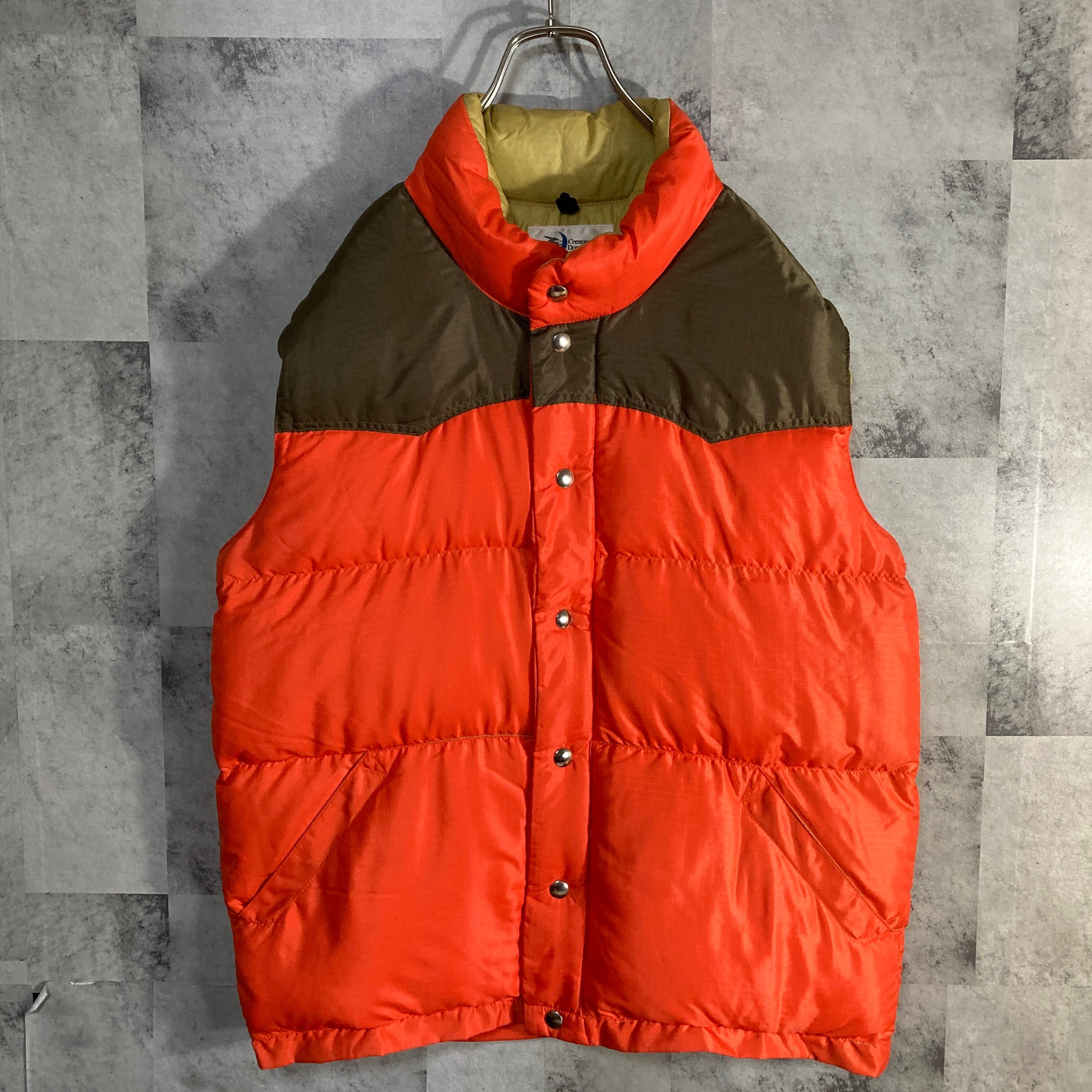 USA製 Crescent Down Works クレセントダウンワークス ダウンベスト リップストップナイロン オレンジ&ブラウン M
