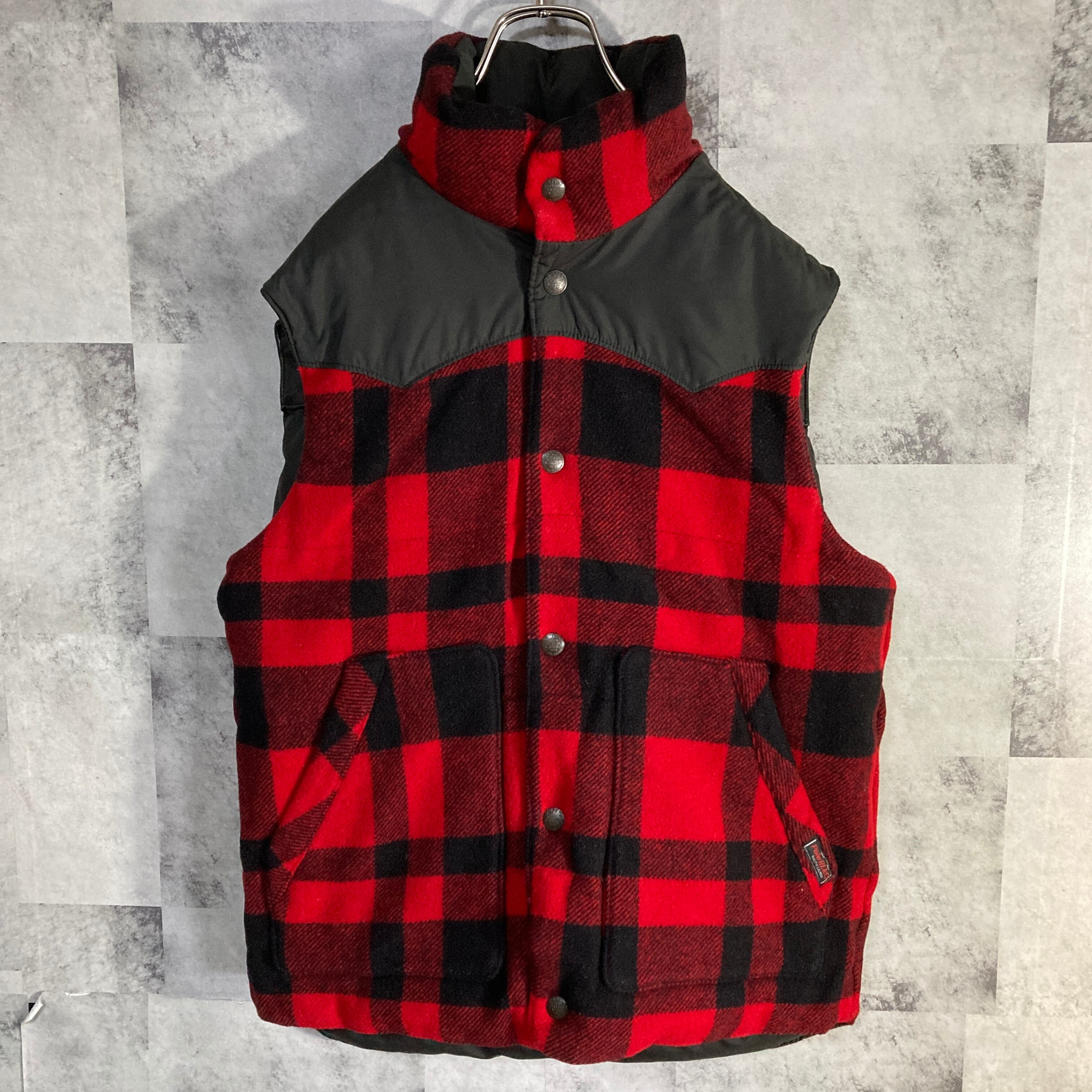 POLO by Ralph Lauren ポロバイラルフローレン レザーヨーク ダウンベスト リバーシブル ブラック バッファローチェック レッド S
