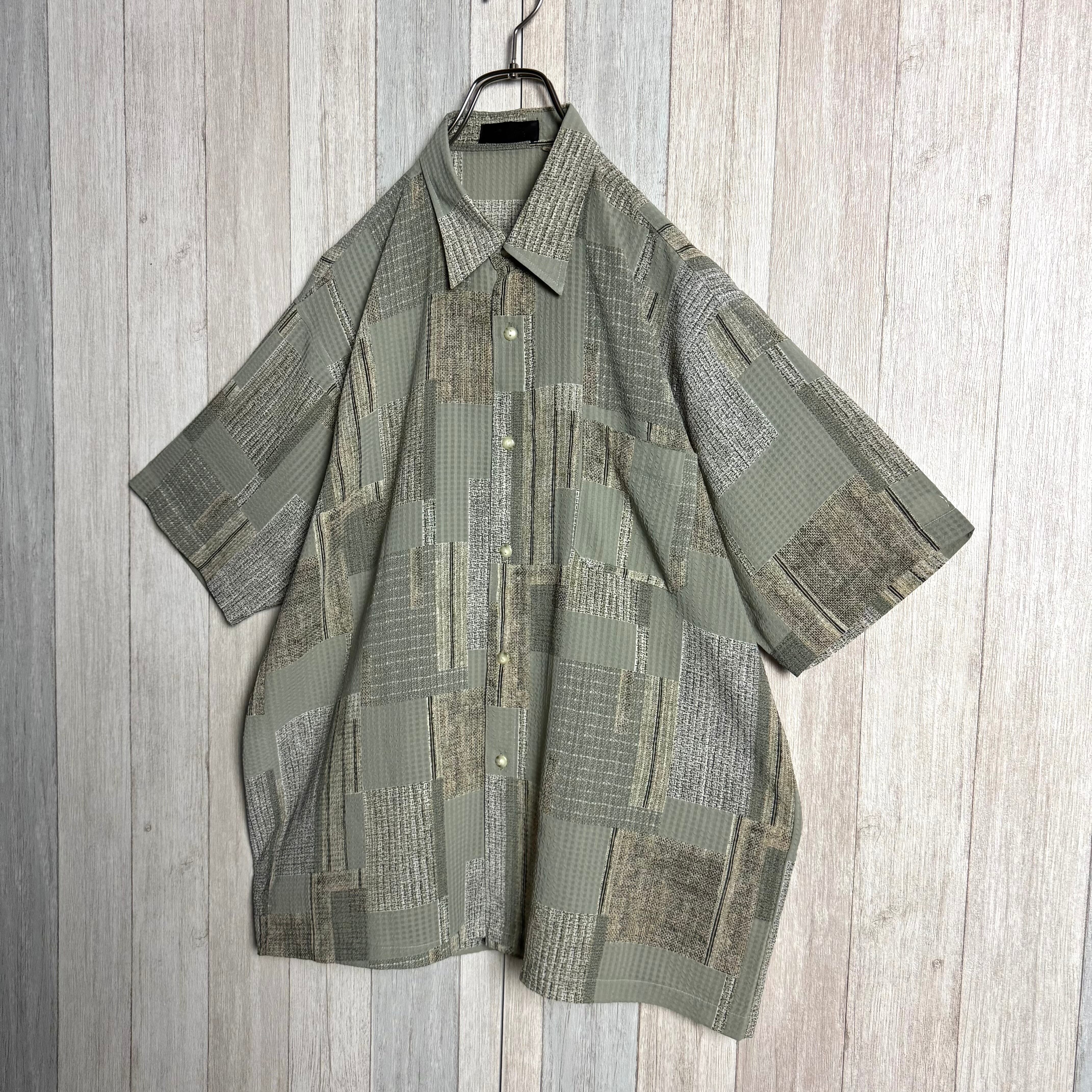 UNKNOWN ポリエステル 総柄 半袖 シャツ モスグリーン L