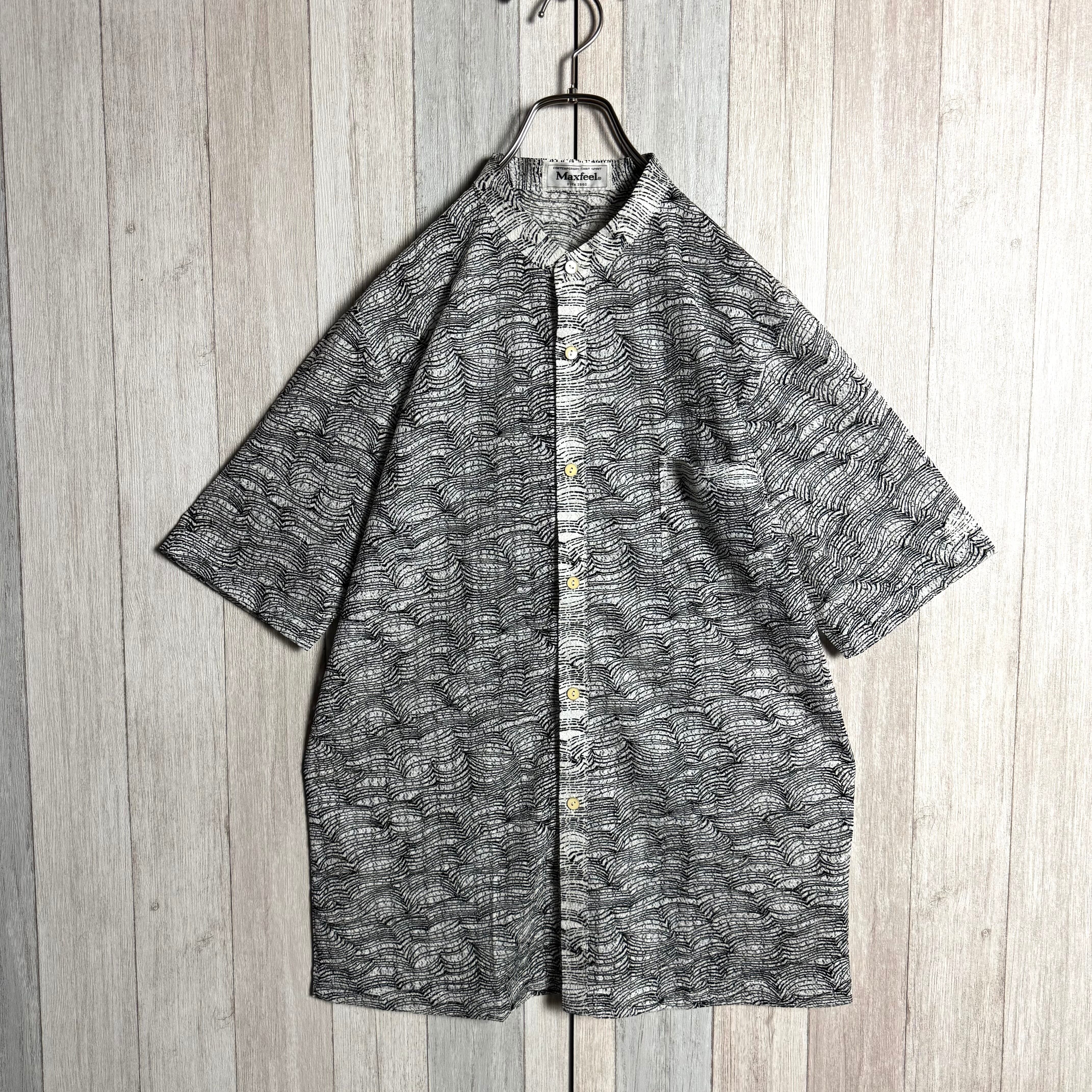 日本製 Maxfeel ポリエステル 半袖 バンドカラーシャツ モノトーン L