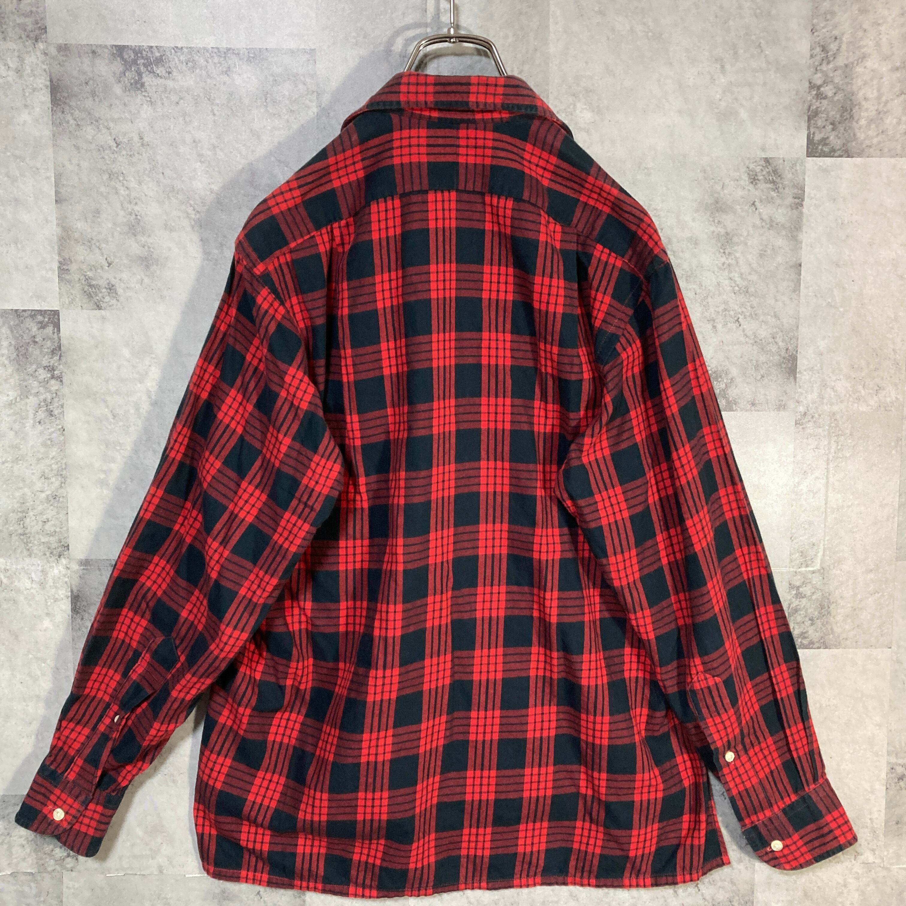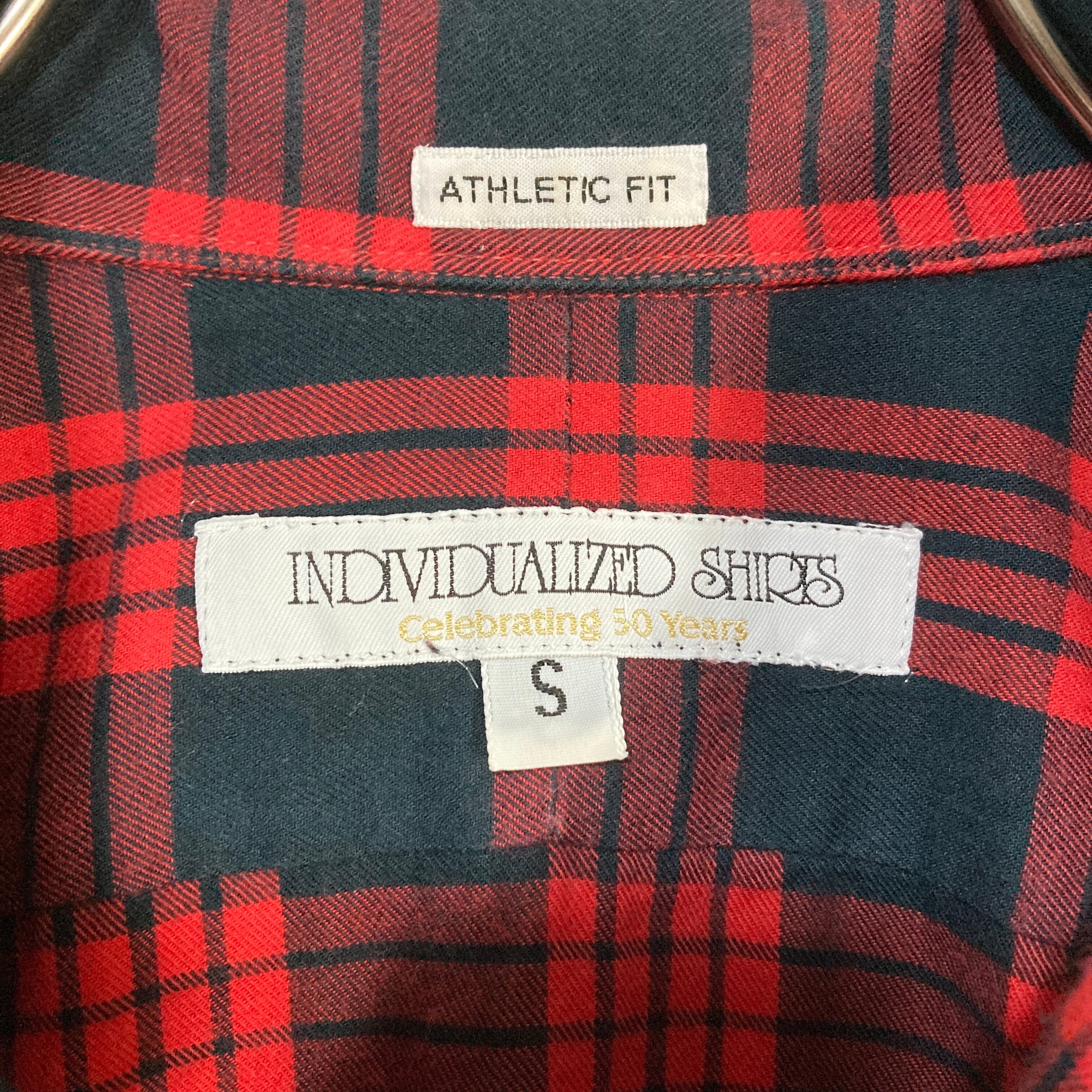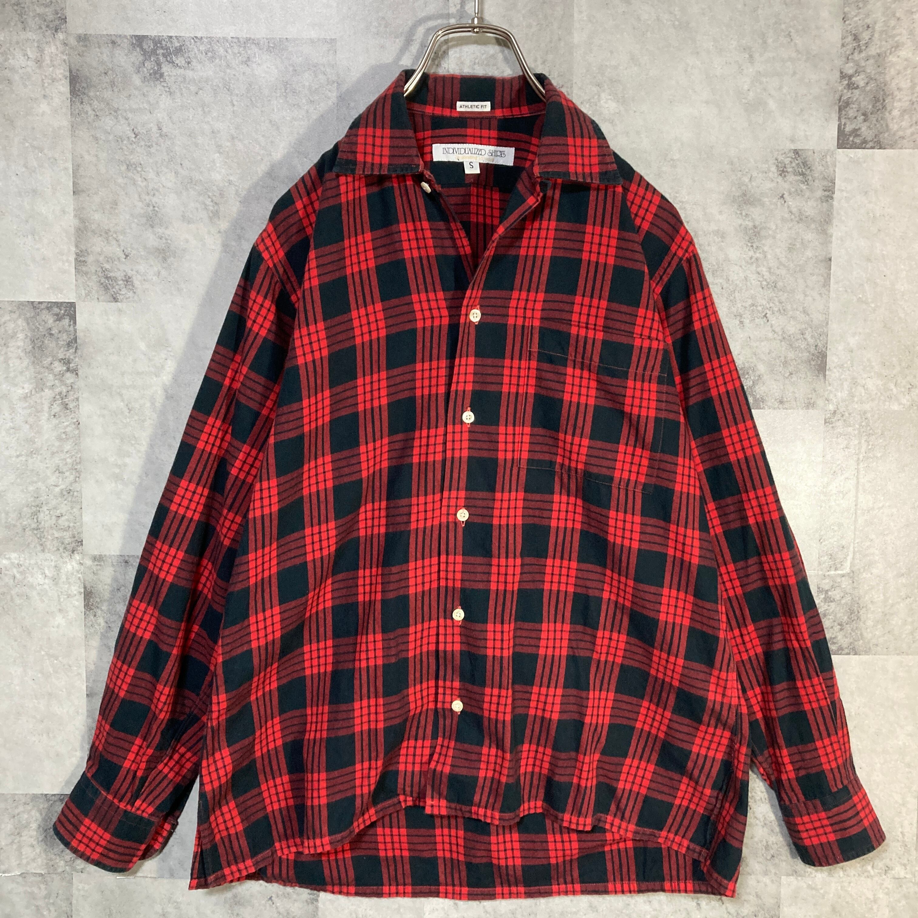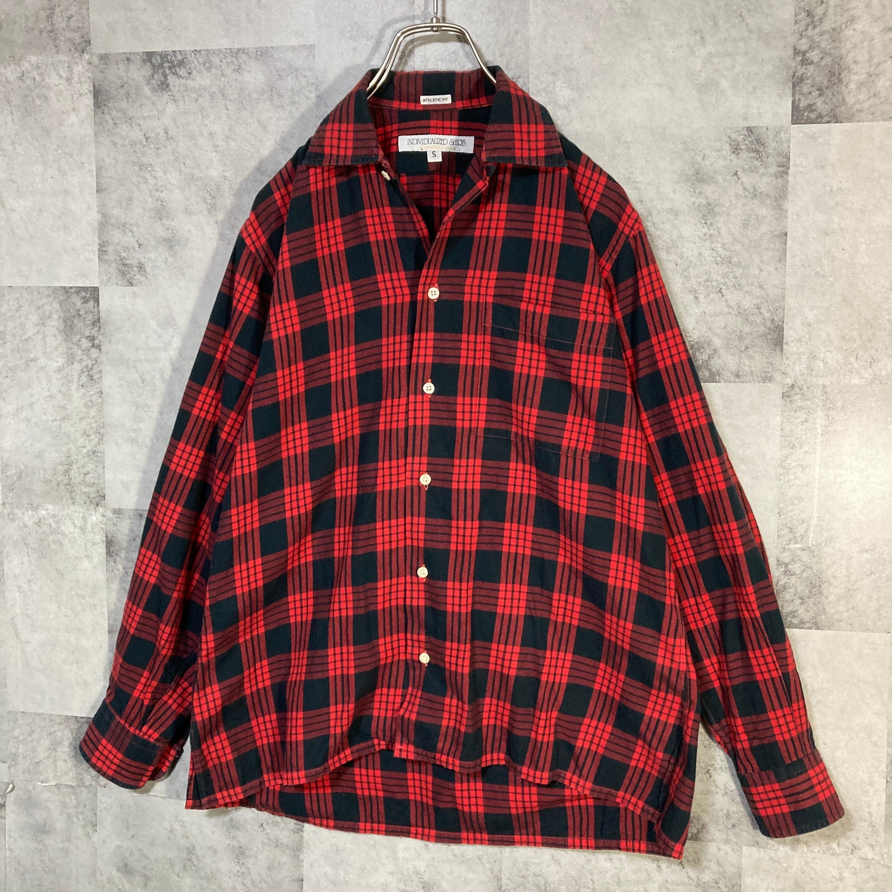 USA製 INDIVIDUALIZED SHIRTS インディヴィジュアライズド シャツ 長袖 オープンカラーシャツ チェック レッド&ブラック S