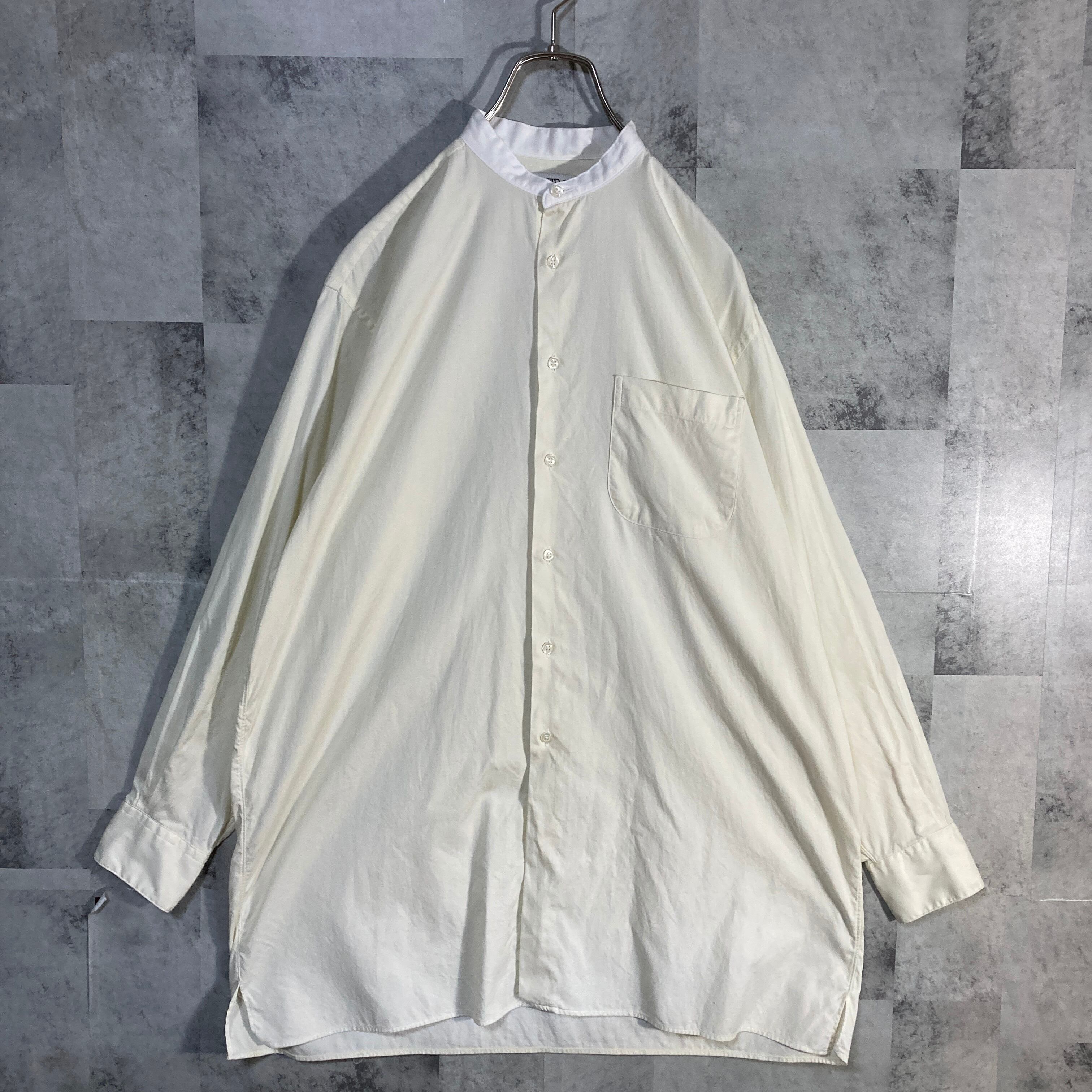 USA製 INDIVIDUALIZED SHIRTS インディヴィジュアライズドシャツ バンドカラー クレリックシャツ パステルイエロー S