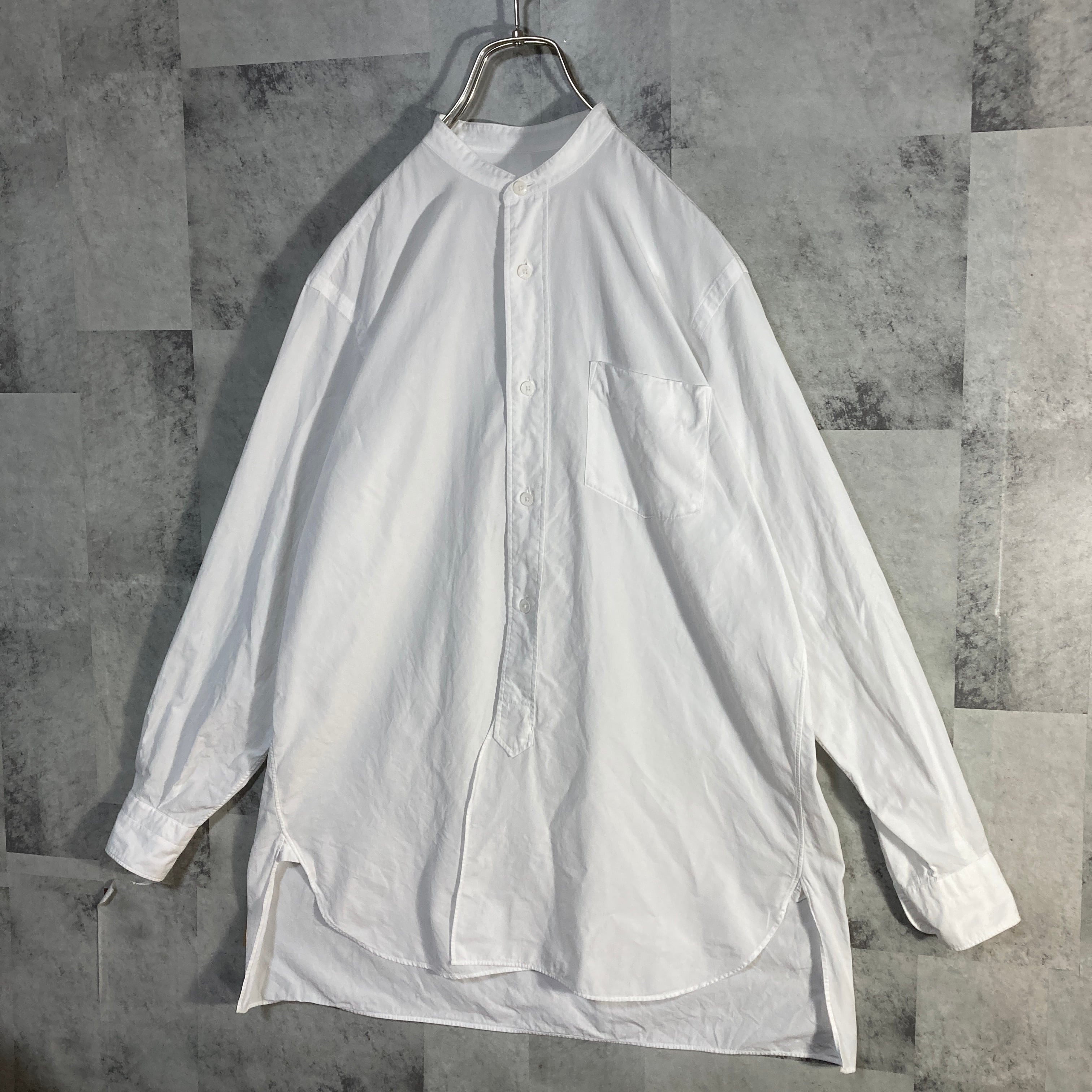 日本製 COMOLI コモリ 長袖 バンドカラー シャツ ホワイト 0