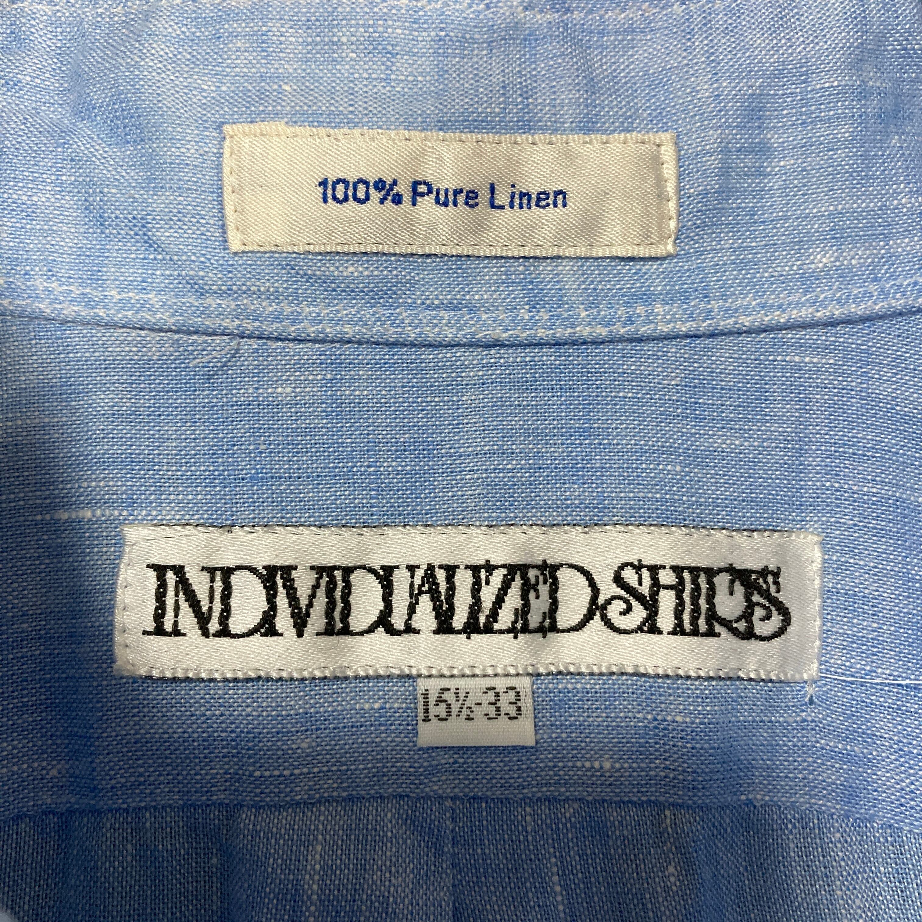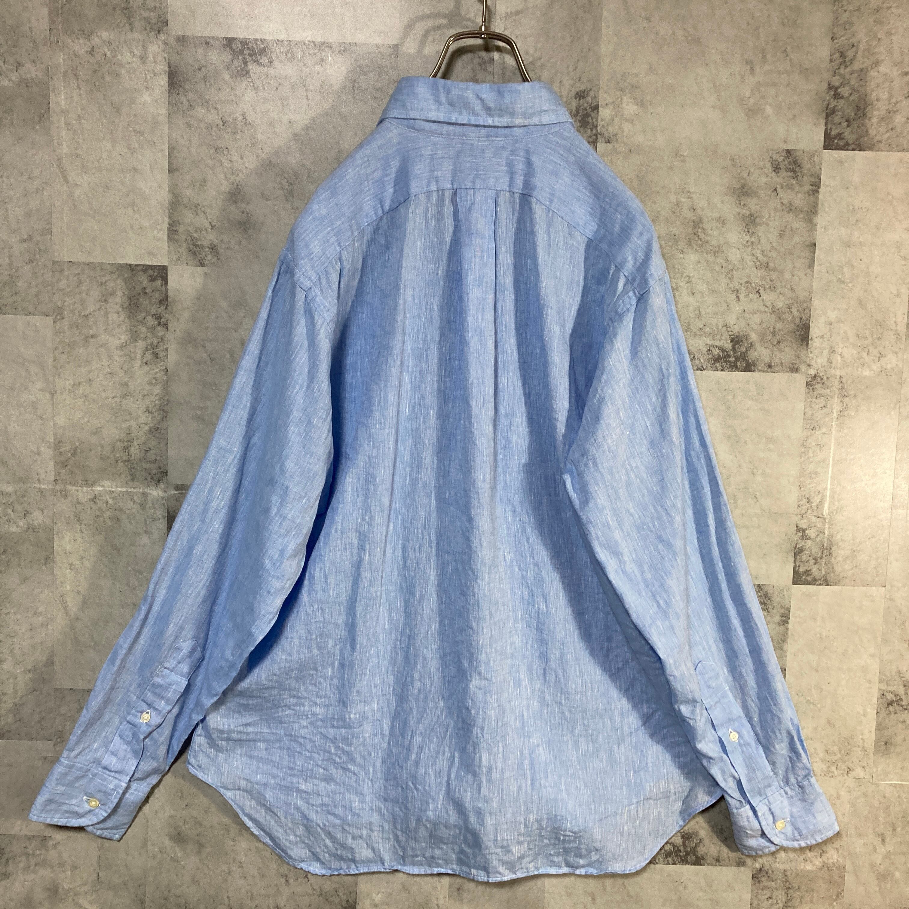 USA製 INDIVIDUALIZED SHIRTS インディヴィジュアライズドシャツ ボタンダウン リネン サックスブルー