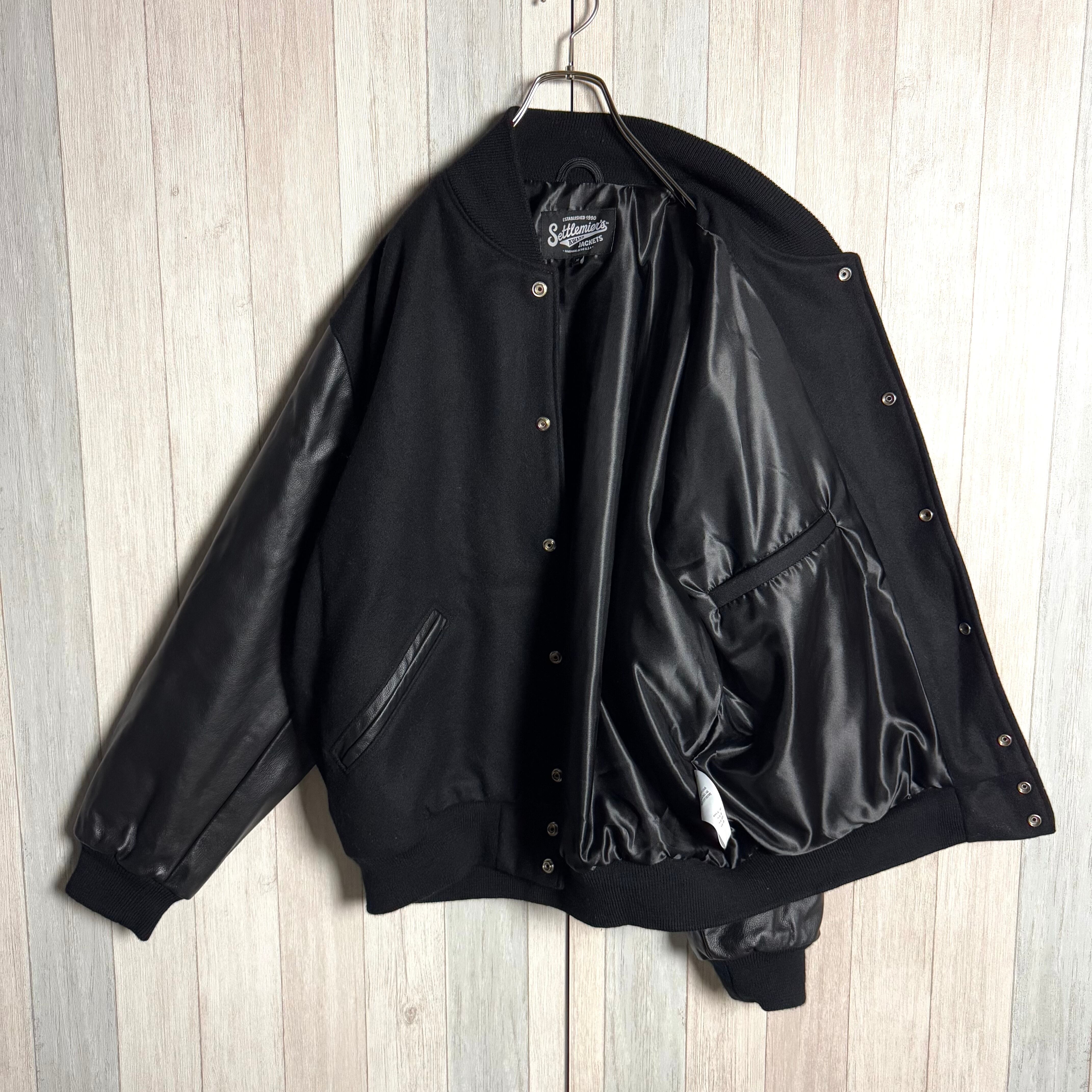 USA製 Settlemier's セトルマイヤーズ アワードジャケット 袖レザー スタジャン バーシティジャケット オールブラック XL