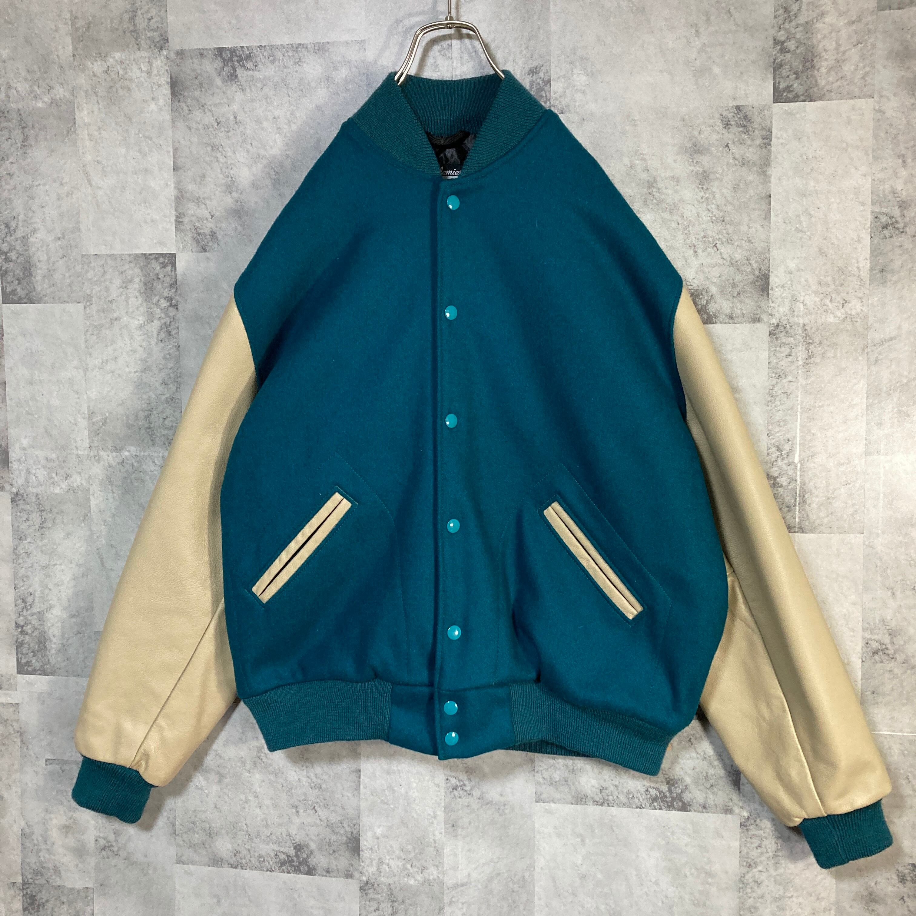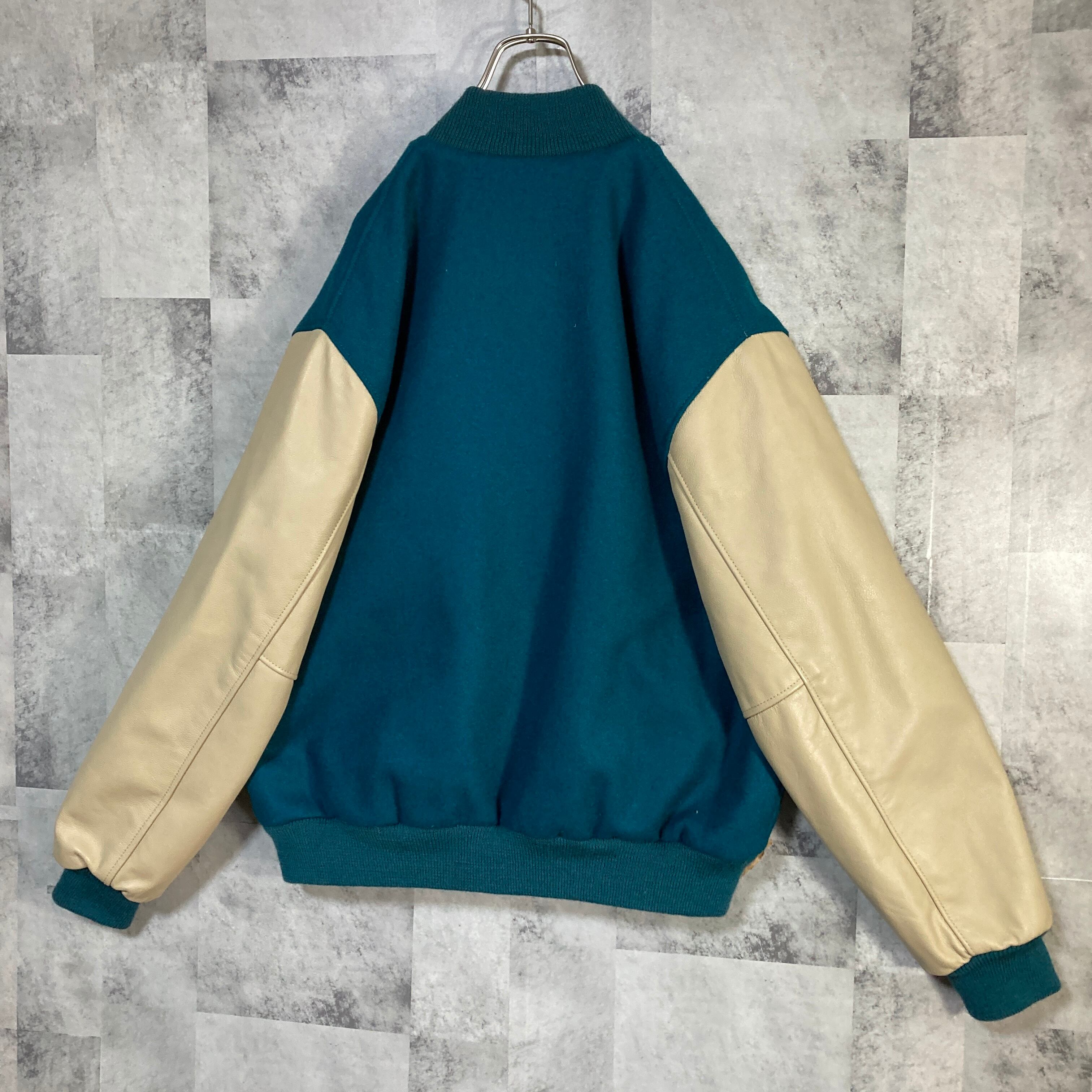 USA製 Settlemier's セトルマイヤーズ アワードジャケット 袖レザー スタジャン バーシティジャケット エメラルドグリーン XL
