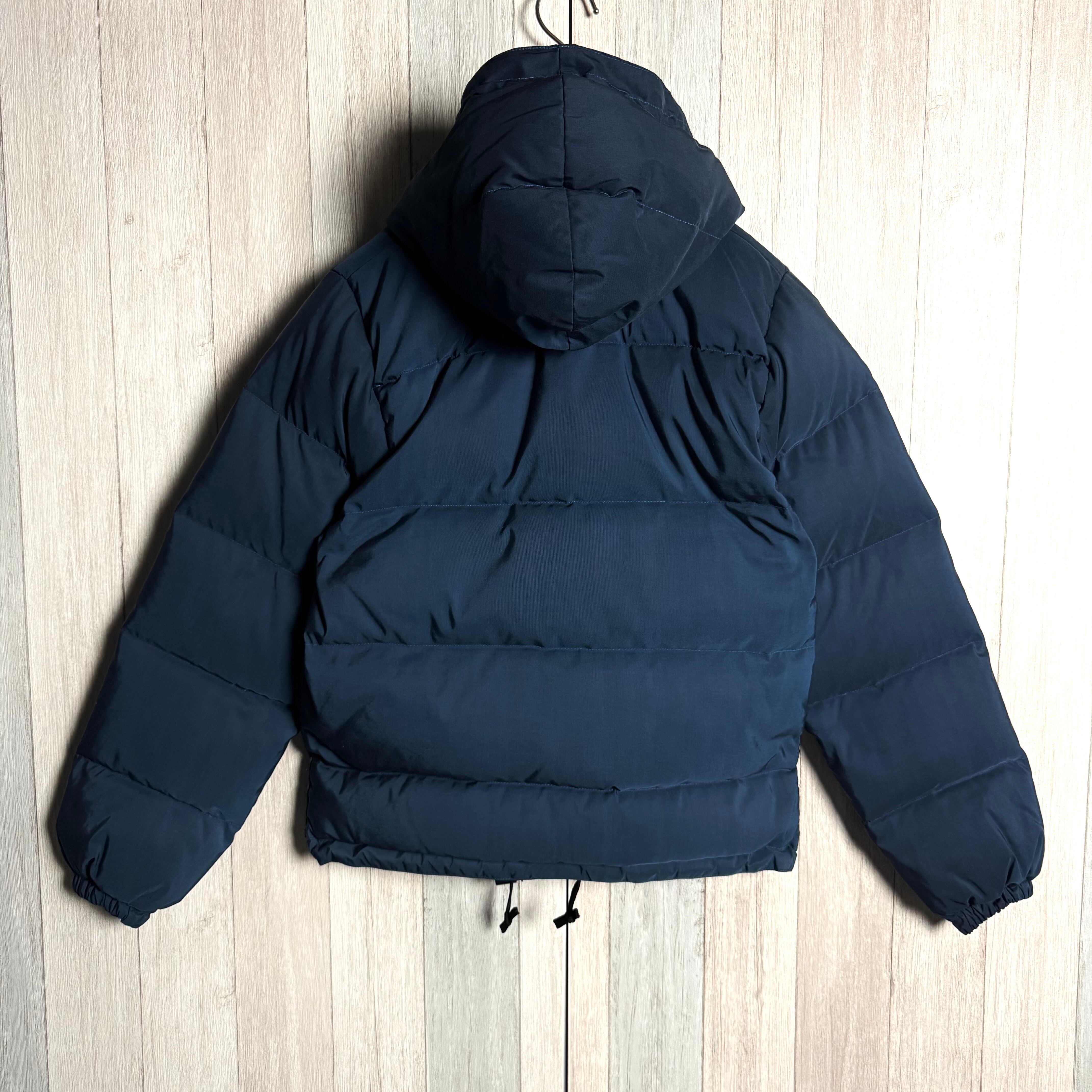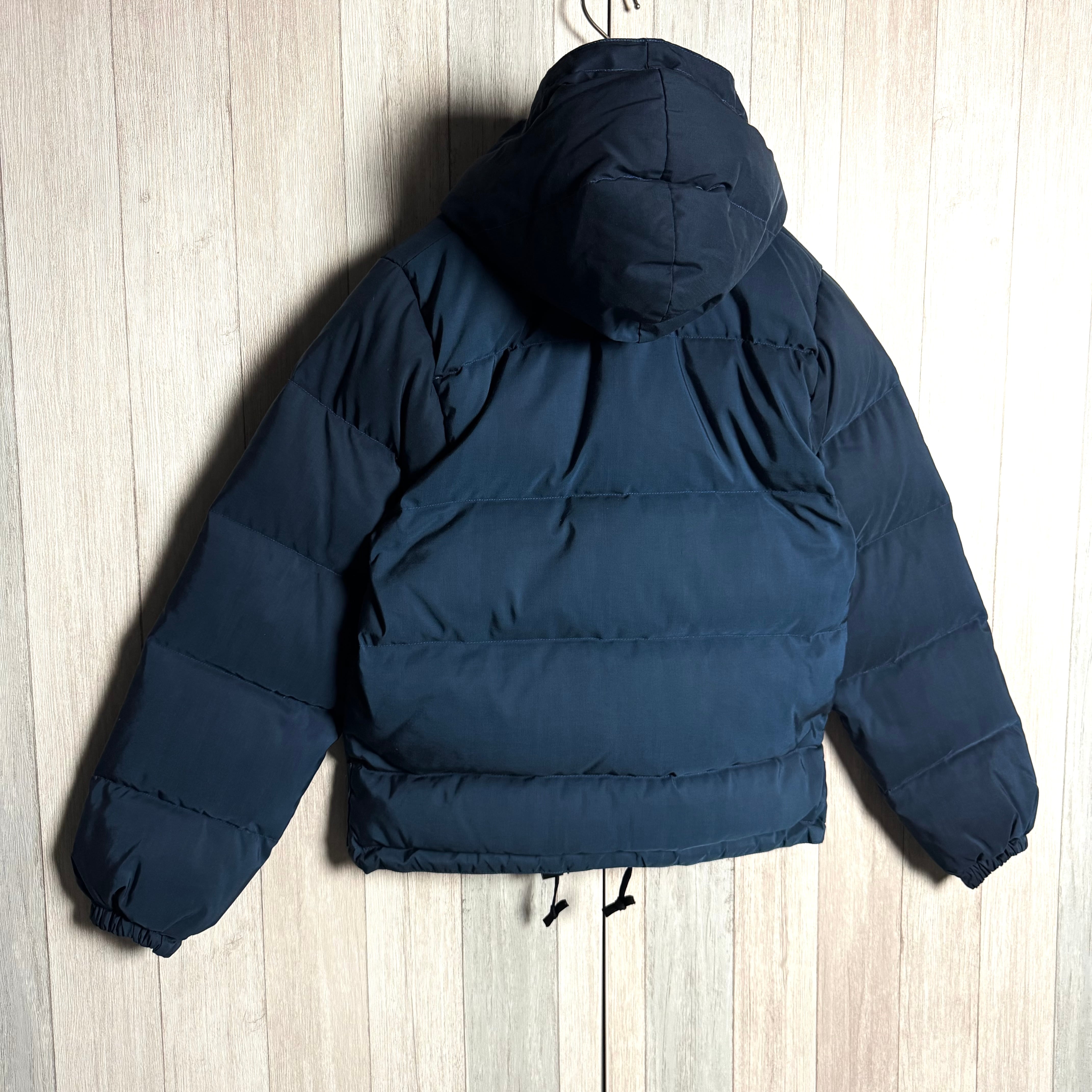 高品質なダウン素材を使用したこのフーディー ジャケットは、深いネイビーの色合いが特徴で、どんなコーディネートにも合わせやすいアイテムです。