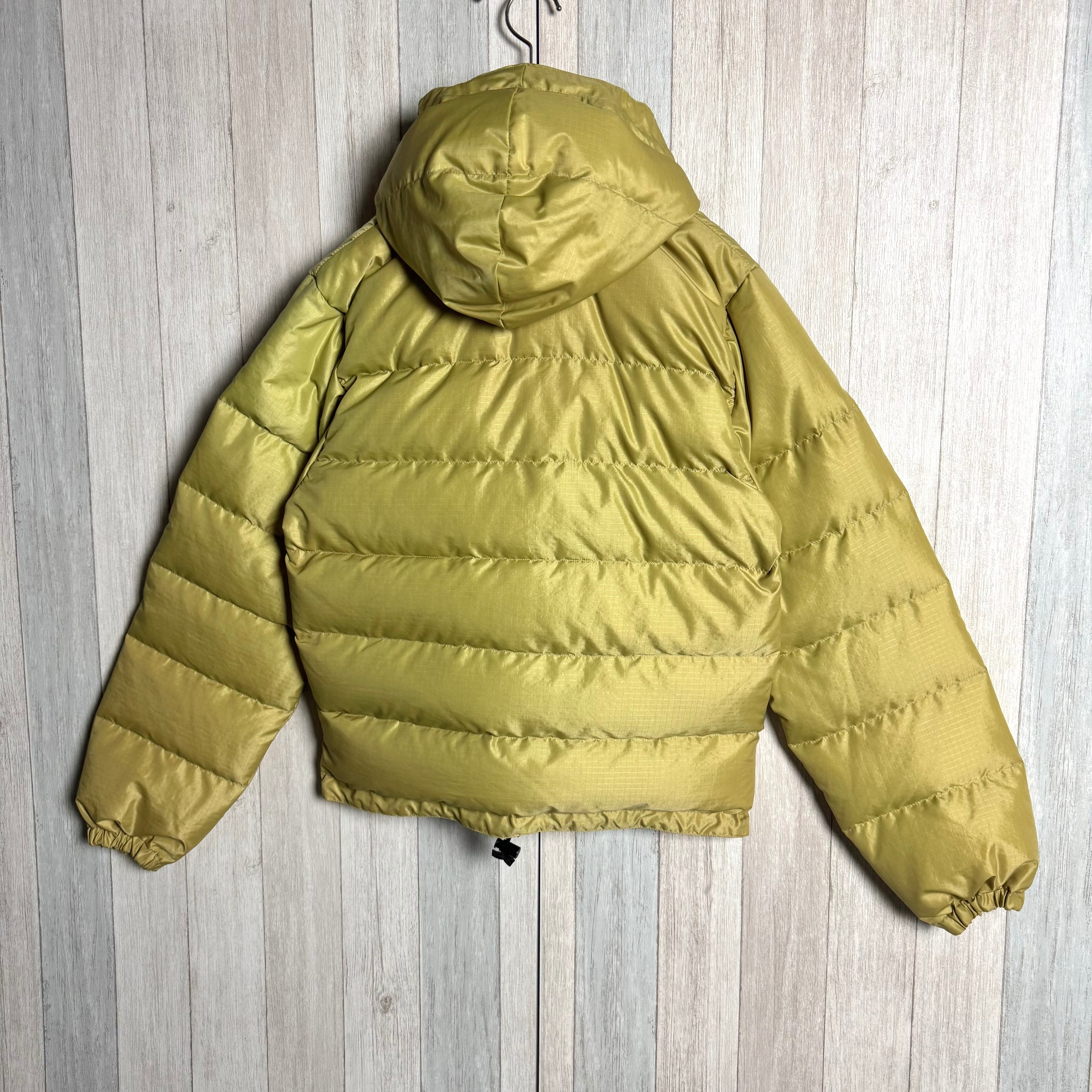 高品質なダウン素材を使用したこのダウンジャケットは、明るいライトイエローの色合いが特徴で、コーディネートのアクセントにもぴったりなアイテムです。