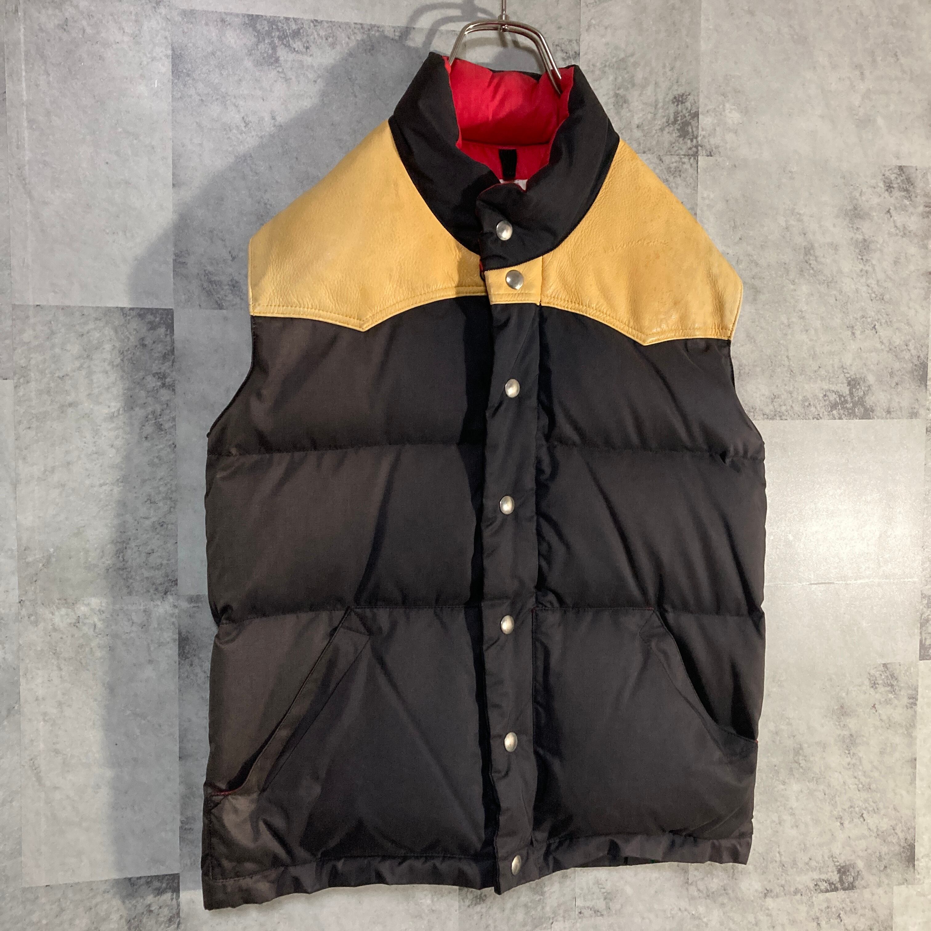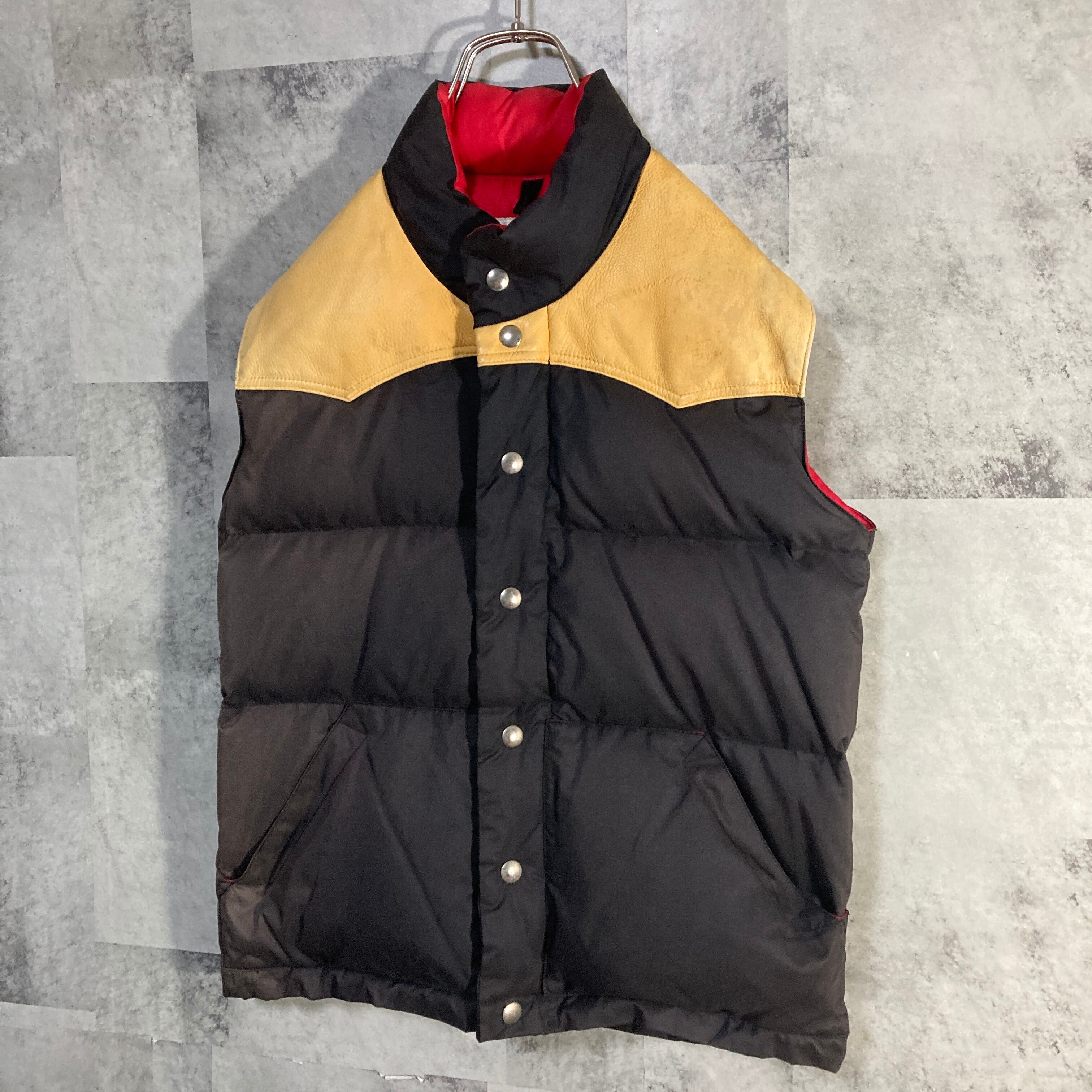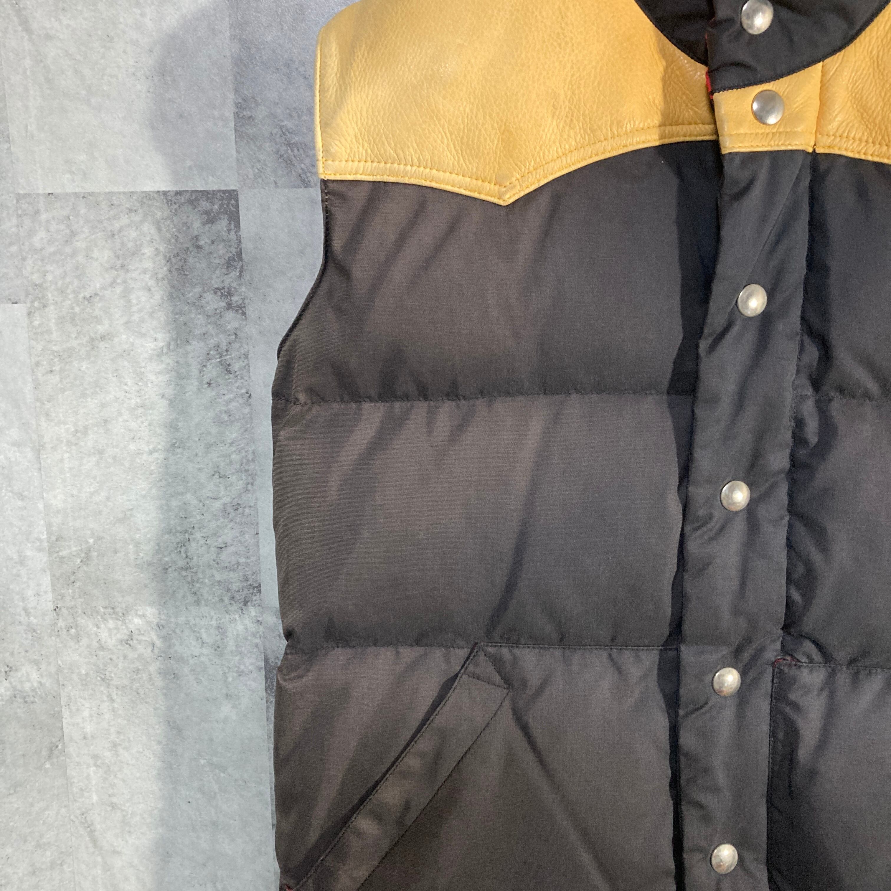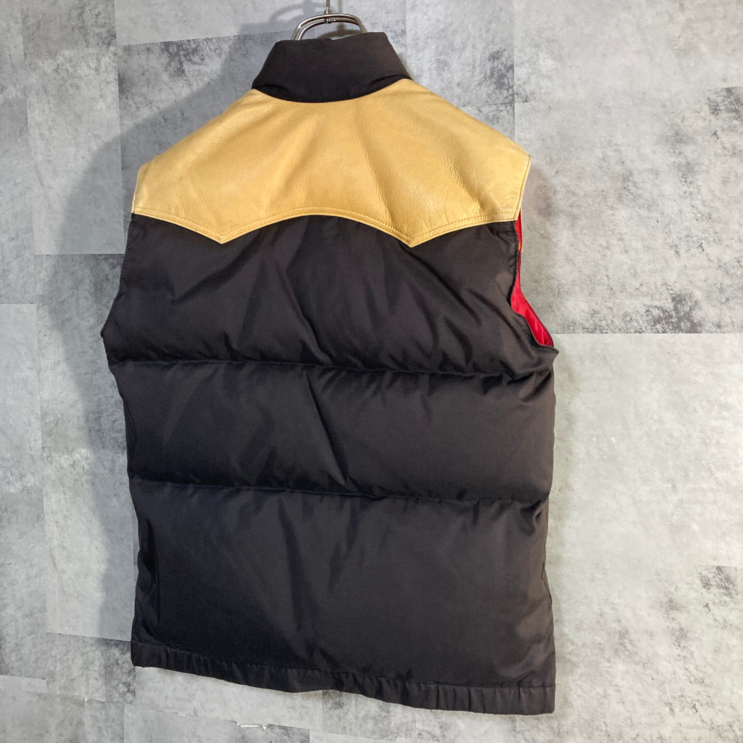 USA製 Crescent Down Works クレセントダウンワークス ダウンベスト 60/40クロス レザーヨーク ブラック&キャメル XS