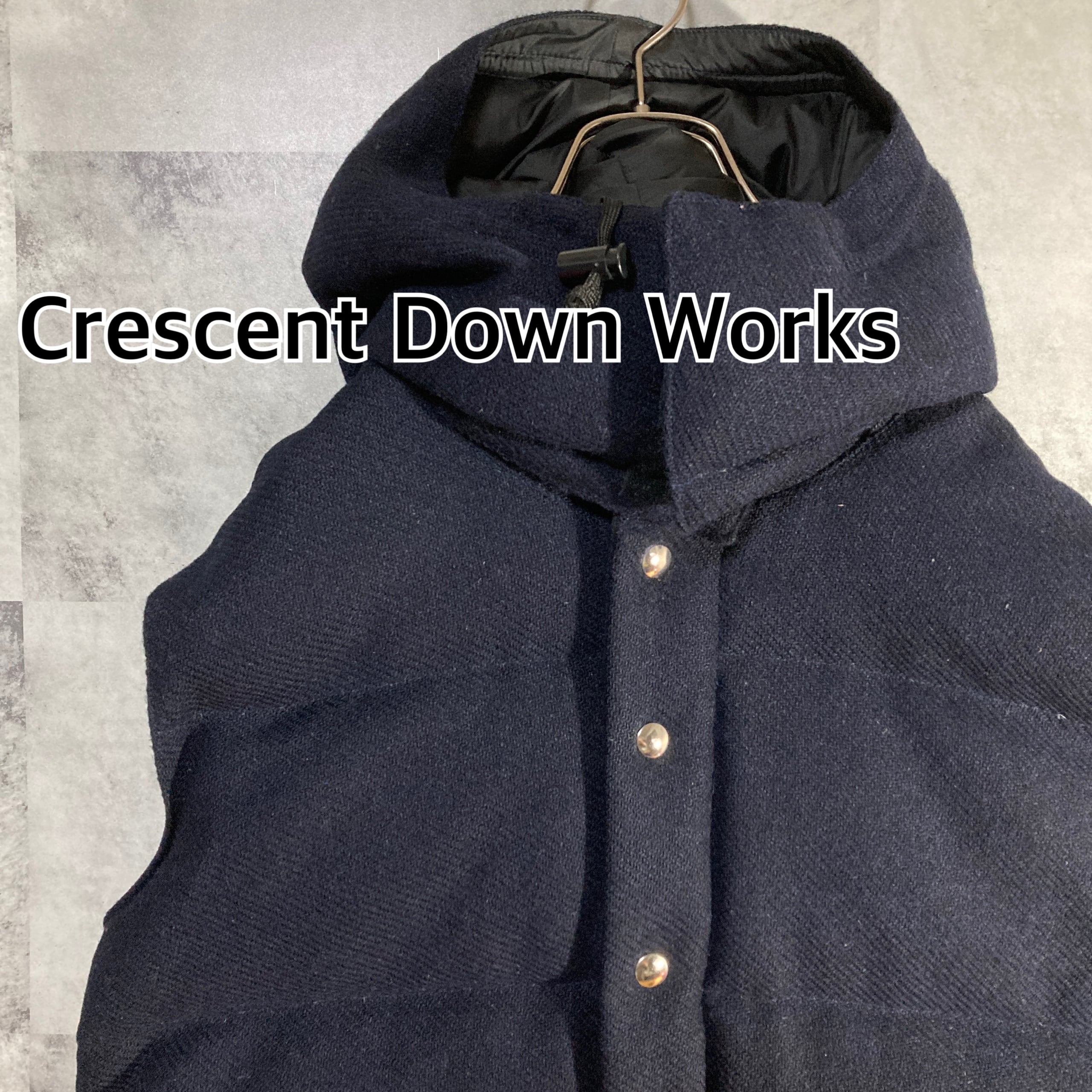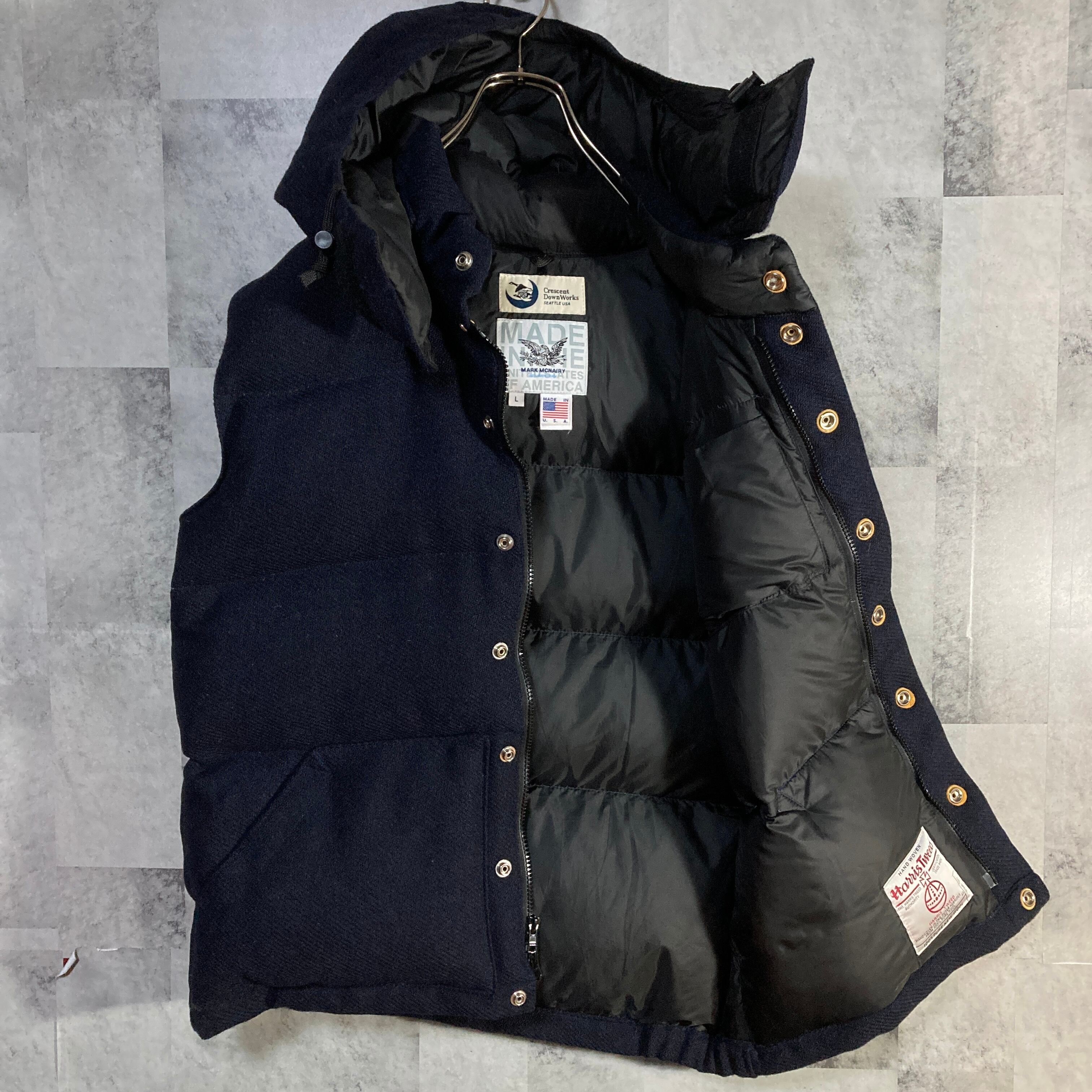 USA製 Crescent Down Works クレセントダウンワークス ハリスツイード ダウンベスト フーディ 2WAY ネイビー L マークマクナイリー別注