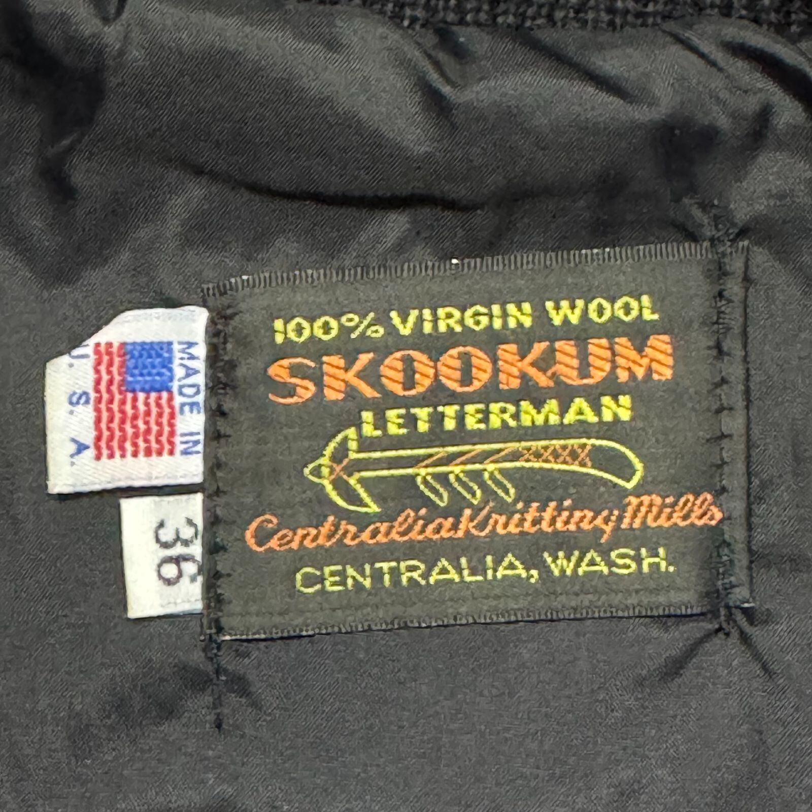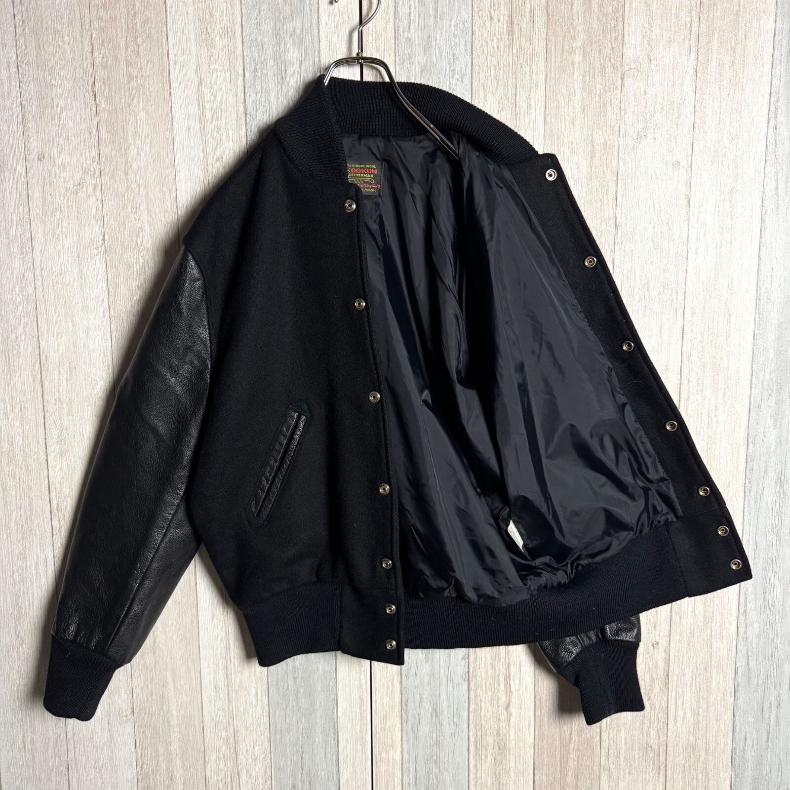 USA製 SKOOKUM スクーカム アワードジャケット 袖レザースタジャン オールブラック 36