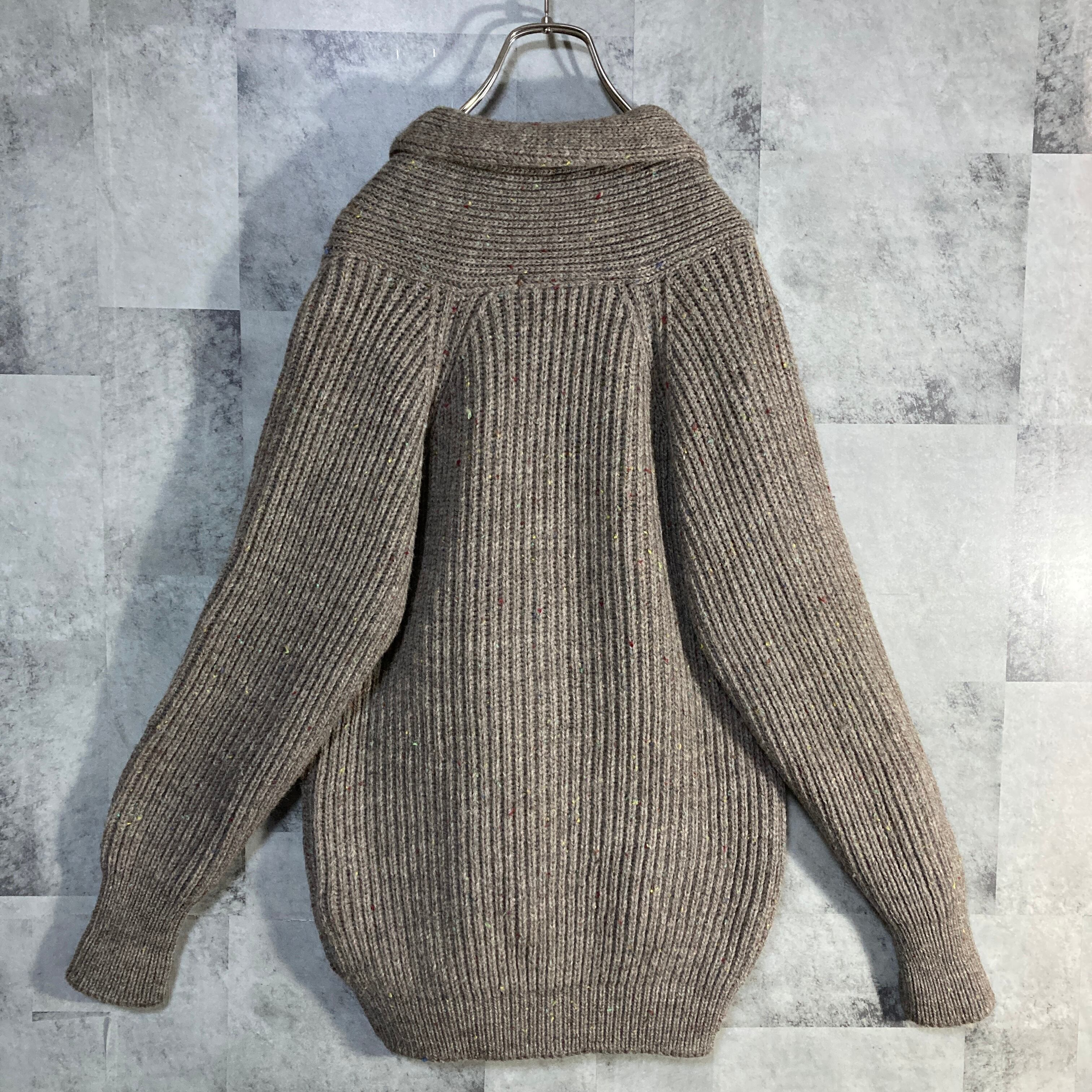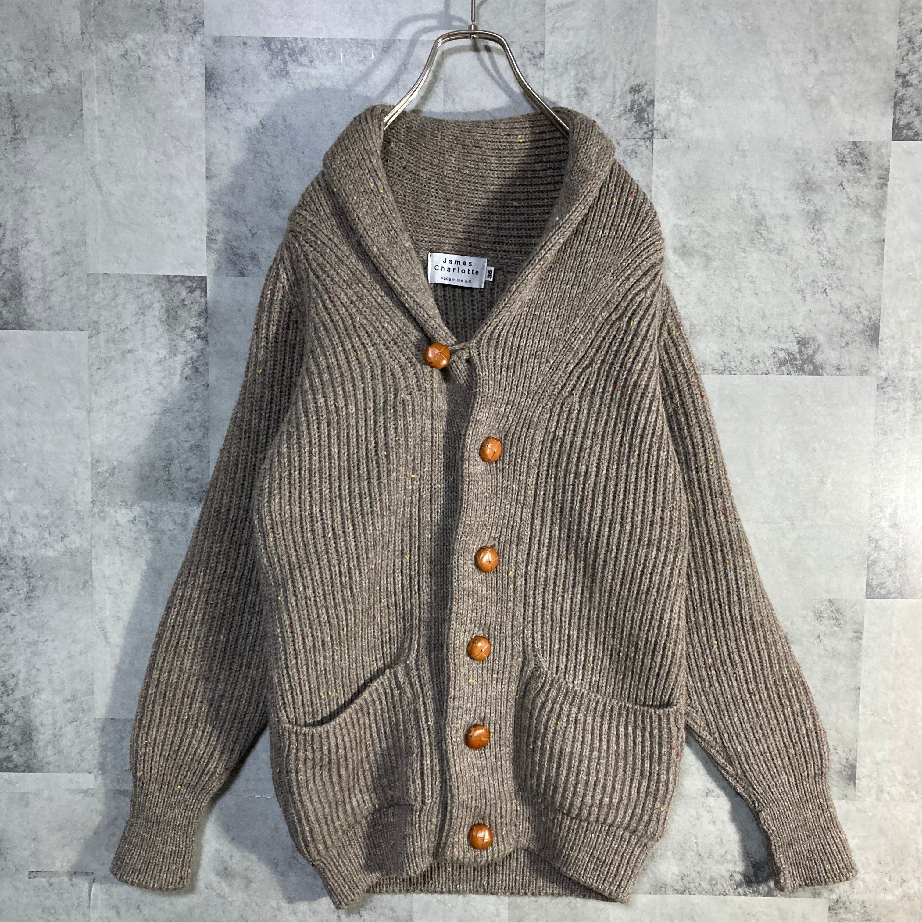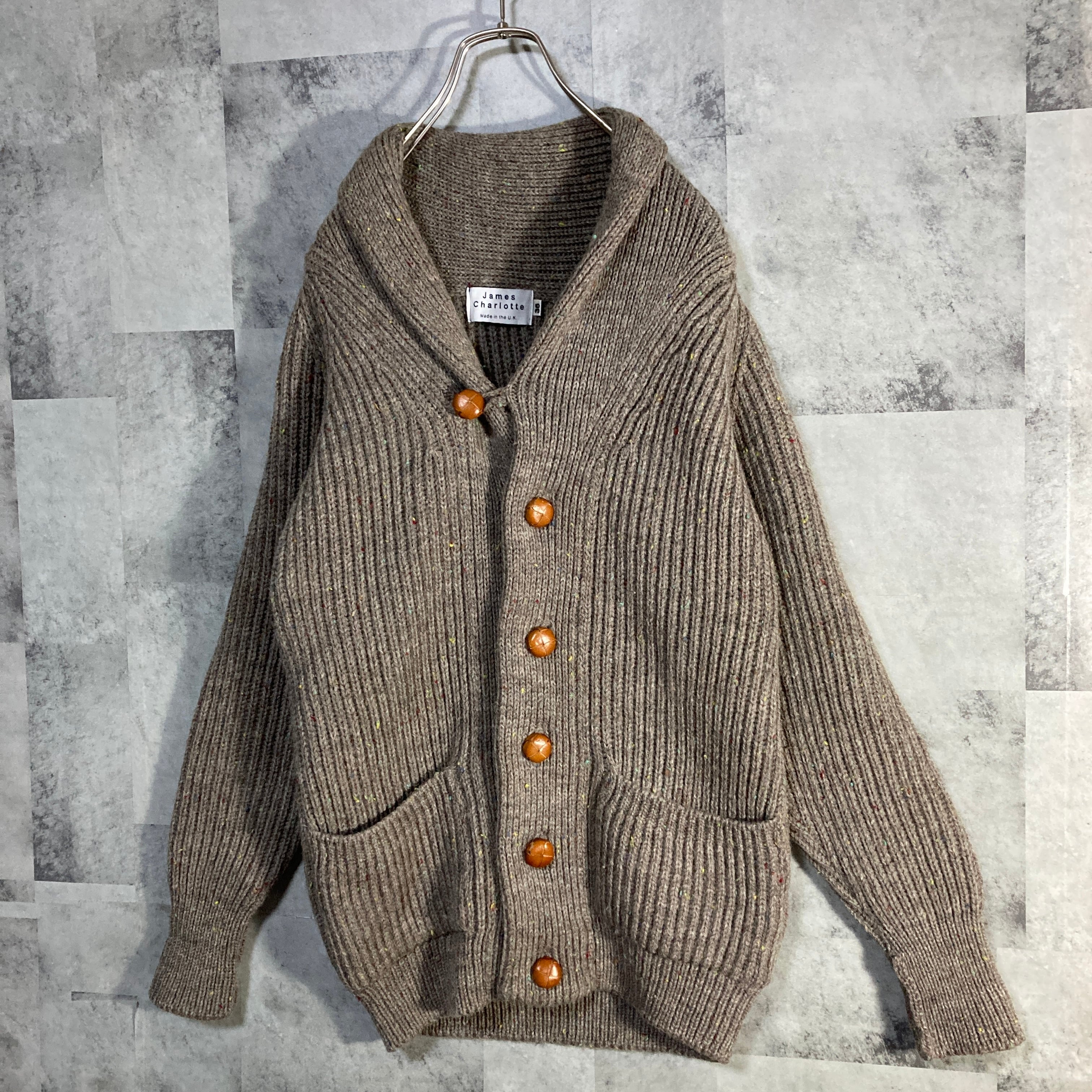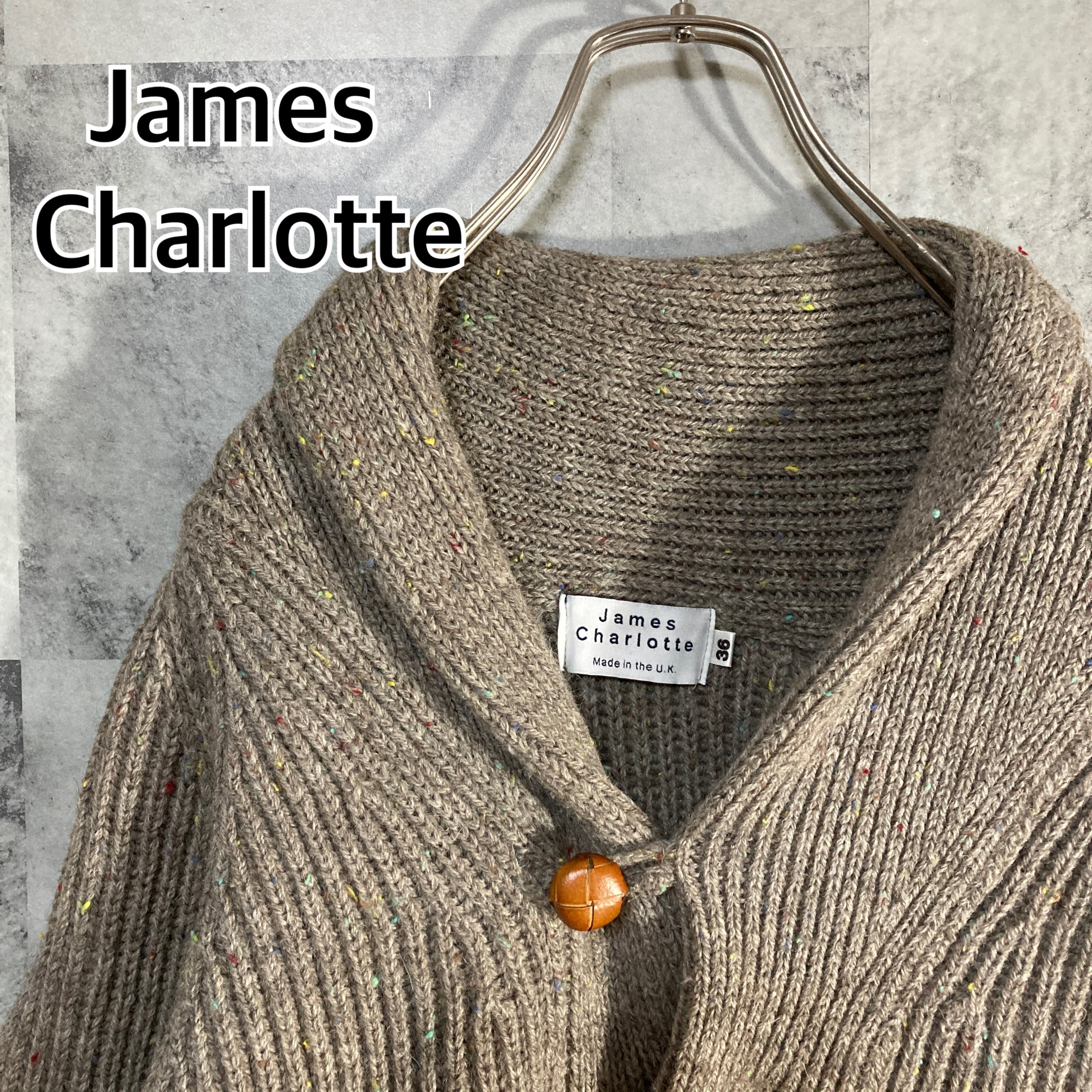 英国製 James Charlotte ジェームスシャルロット ショールカラーニットカーディガン ウールネップ ベージュ 36