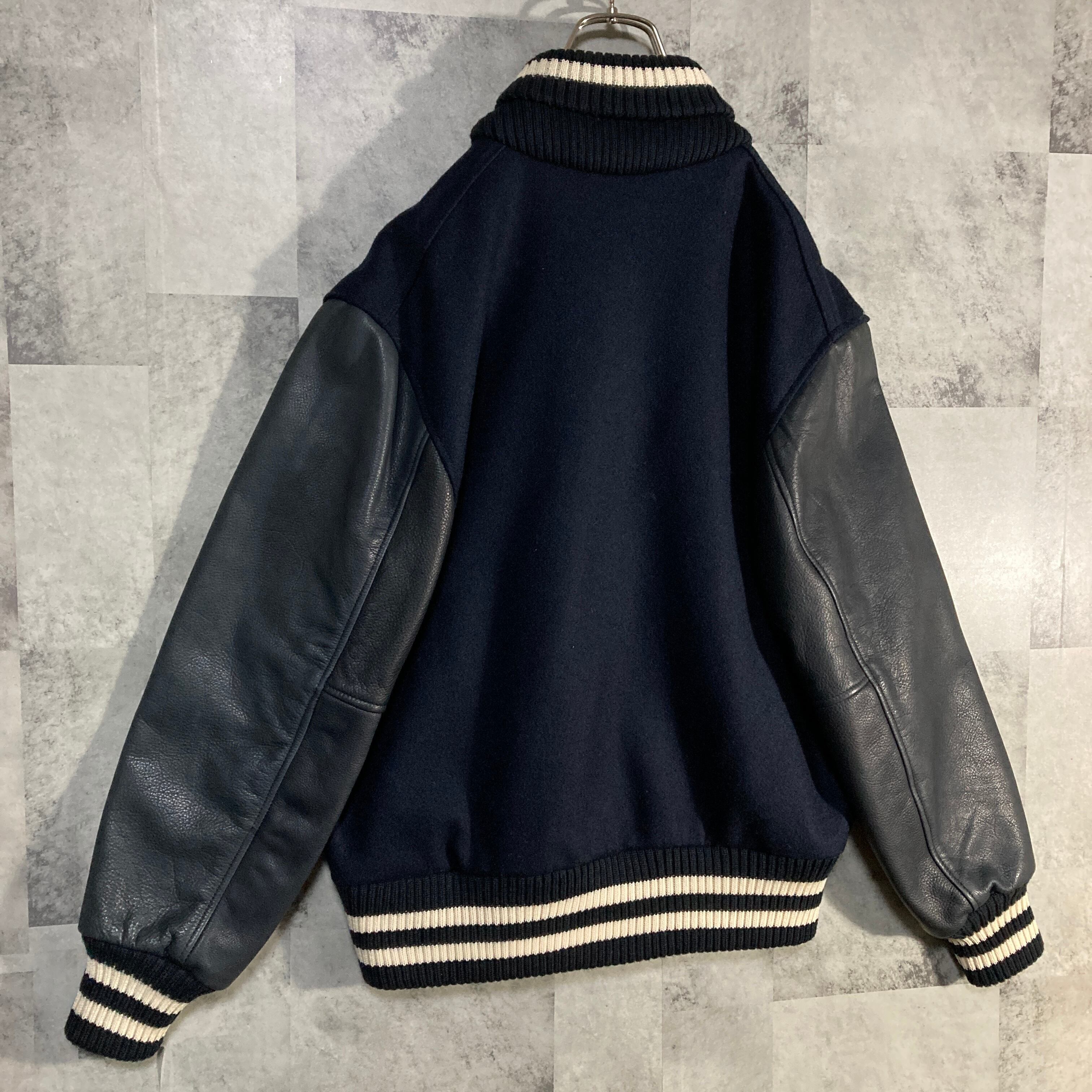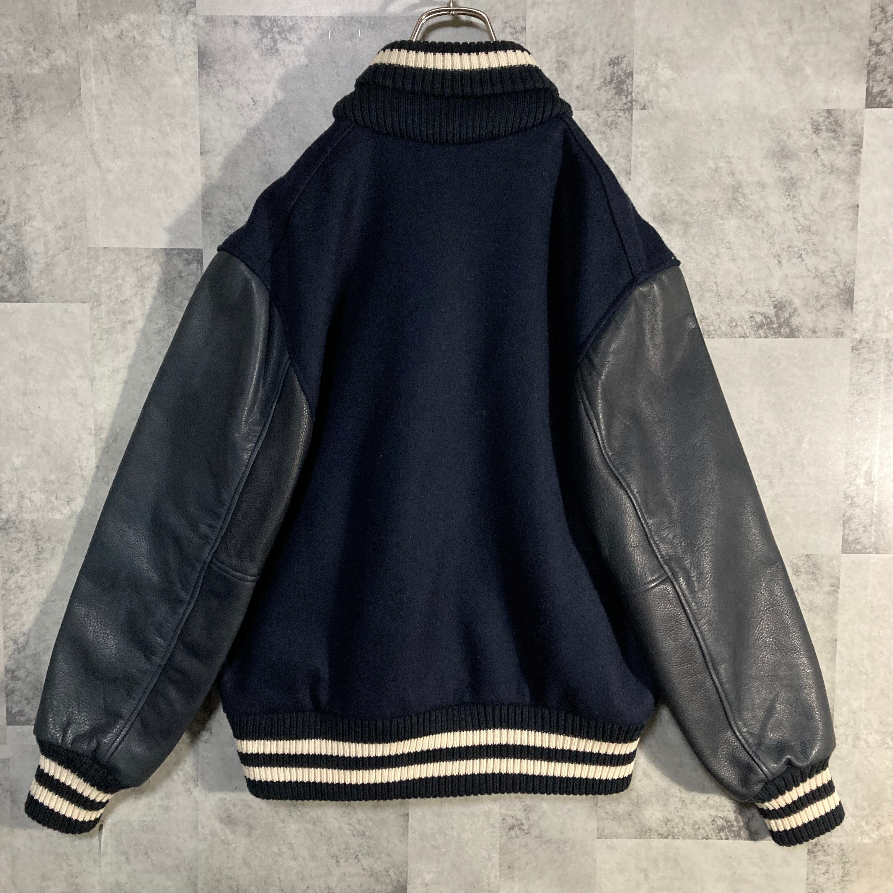 USA製 SKOOKUM スクーカム アワードジャケット 袖レザースタジャン ネイビー 38