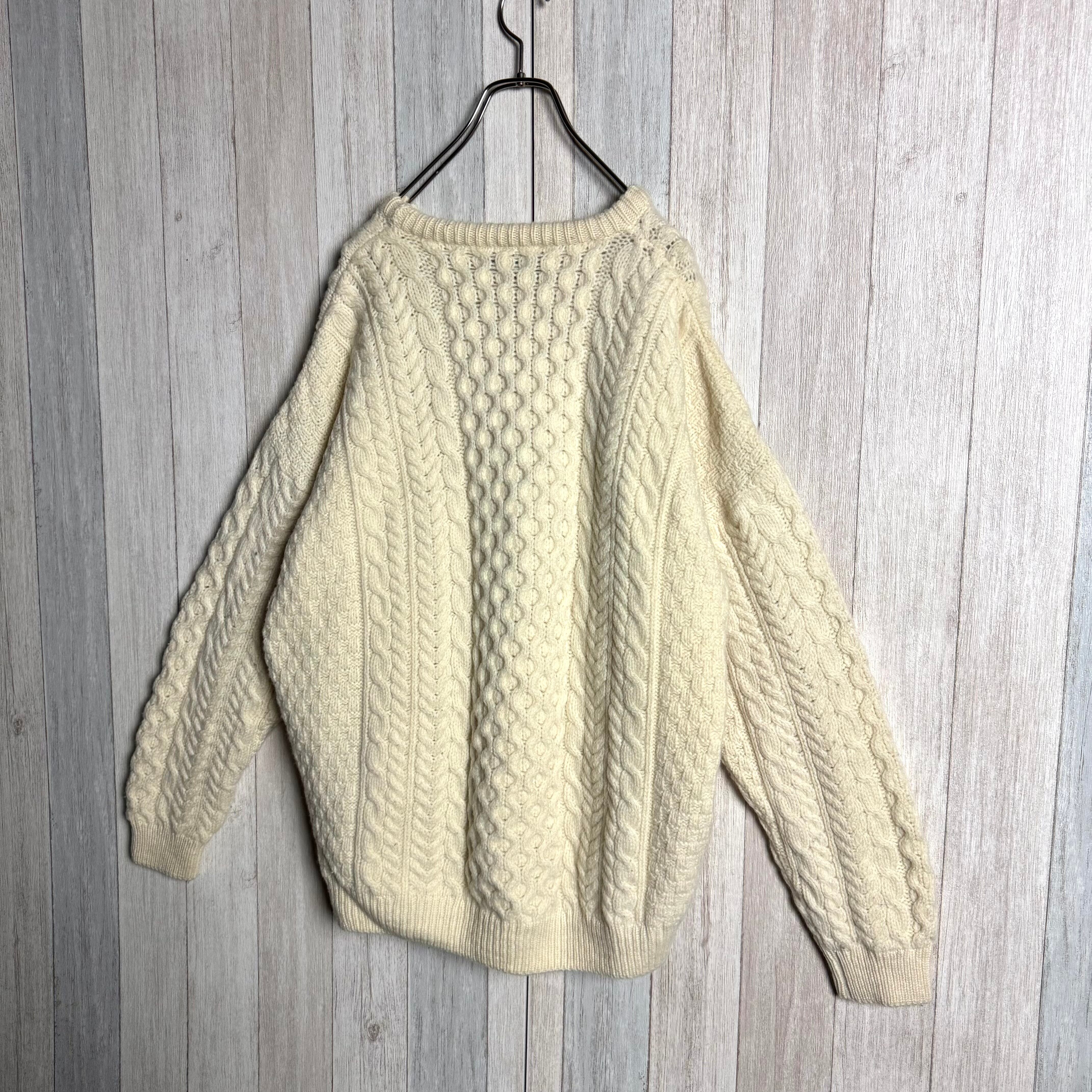 アイルランド製 Carraig Donn キャレイグドン ケーブル編みニット オフホワイト XL