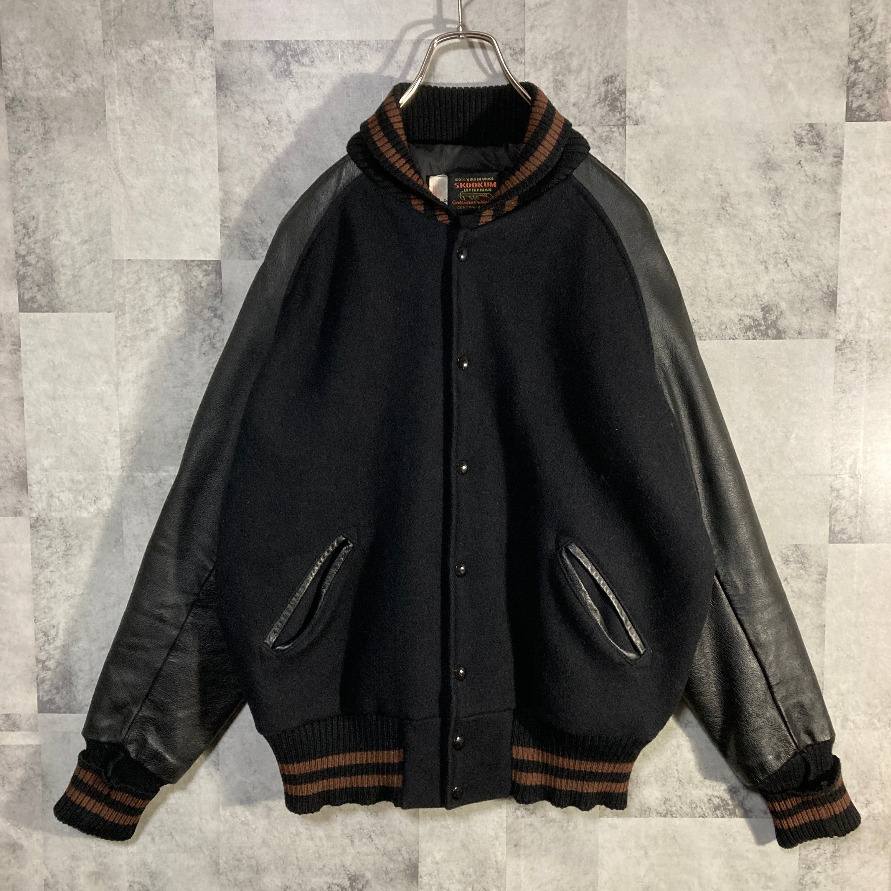 USA製 SKOOKUM スクーカム アワードジャケット 袖レザースタジャン ブラック リブライン ブラウン 42