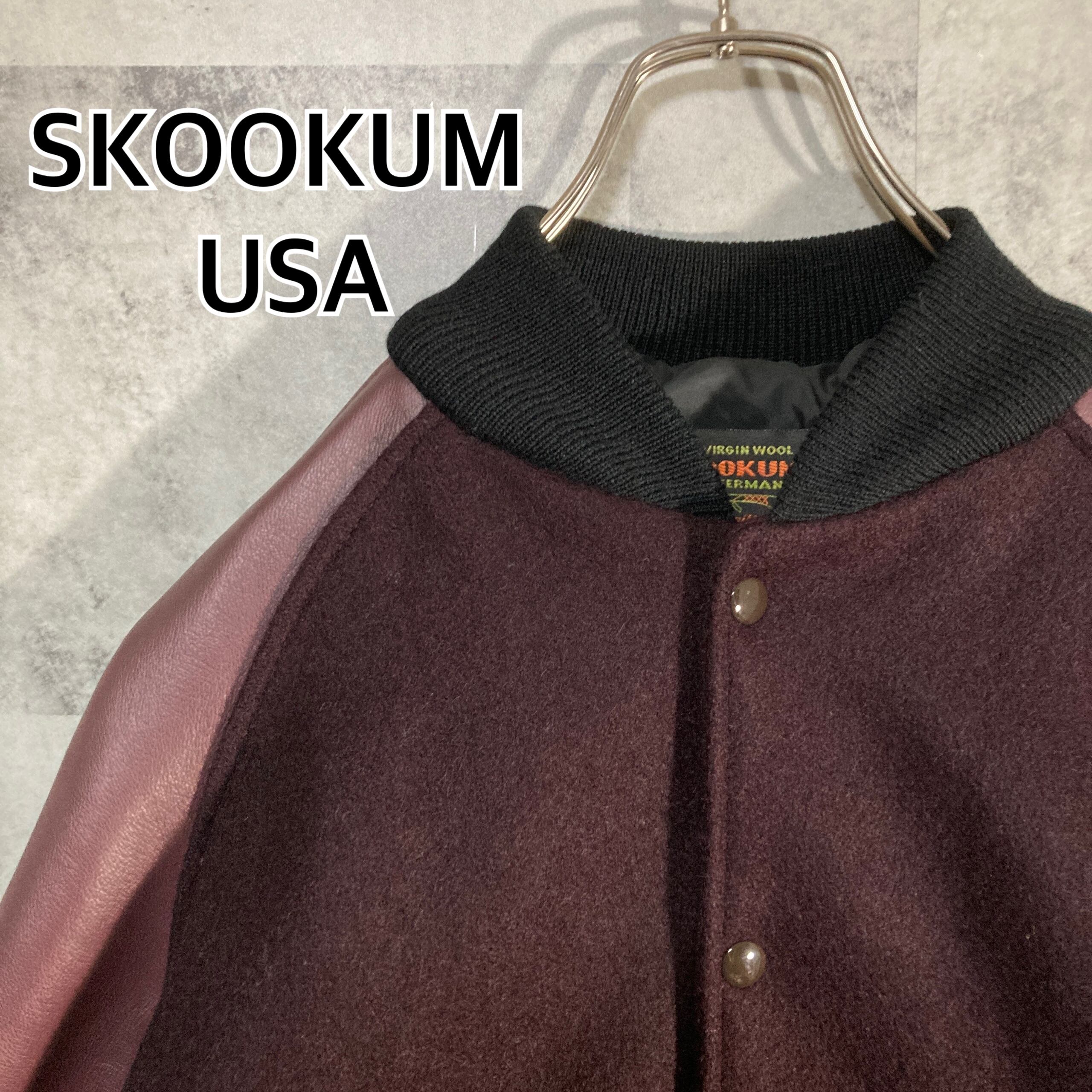 USA製 SKOOKUM スクーカム アワードジャケット 袖レザースタジャン バーガンディ38