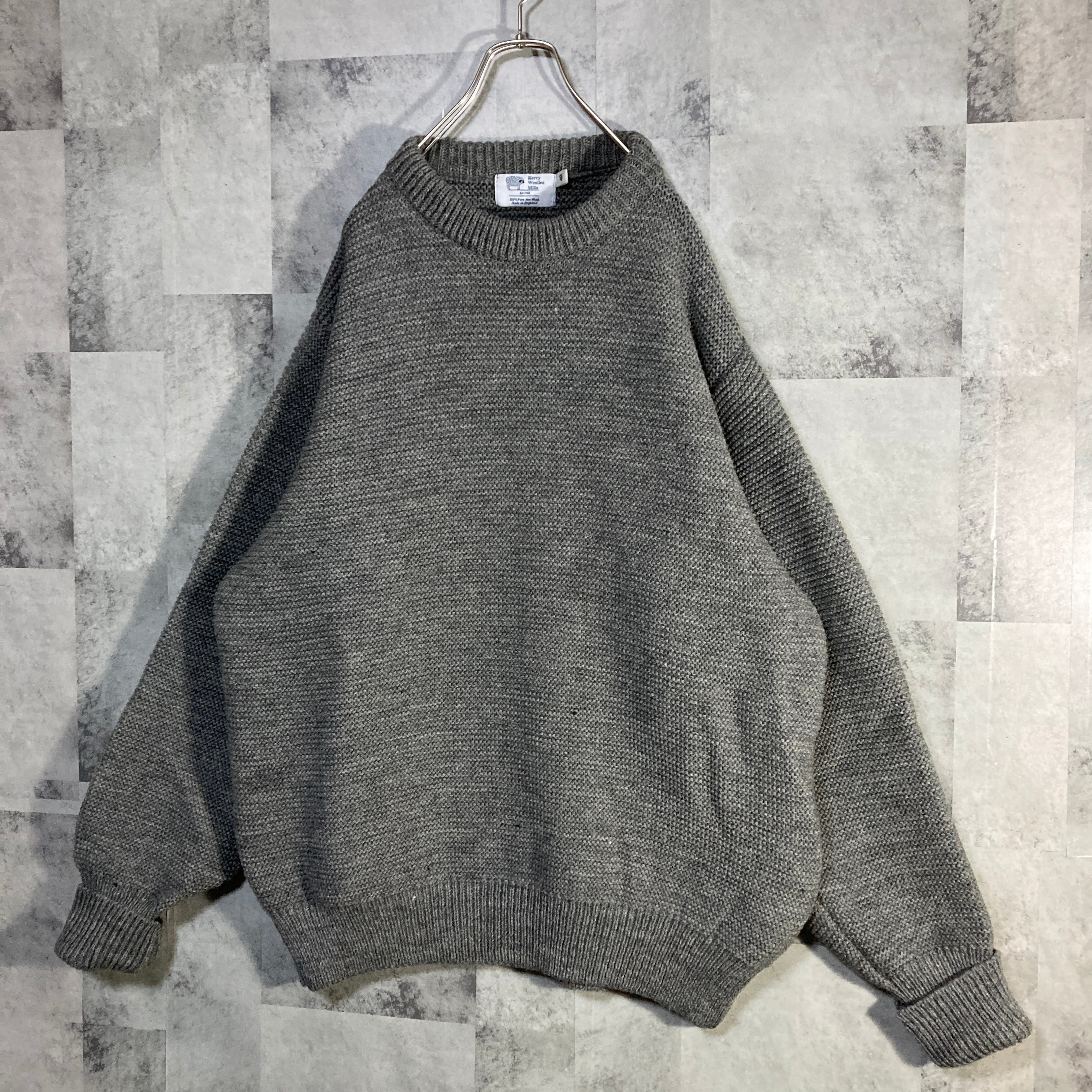 英国製 Kerry Woollen Mills ケリーウーレンミルズ クルーネックニット グレー 40 XL相当