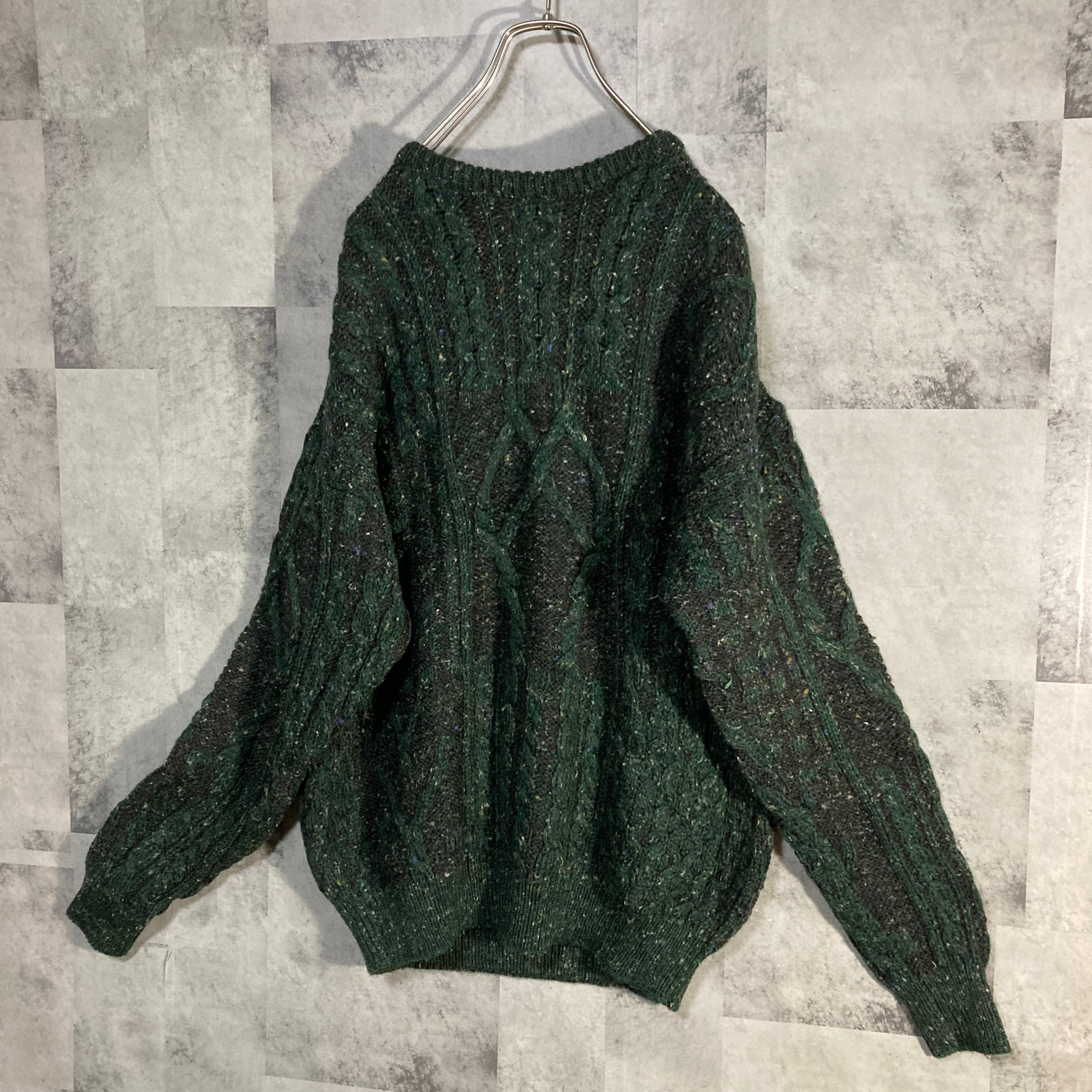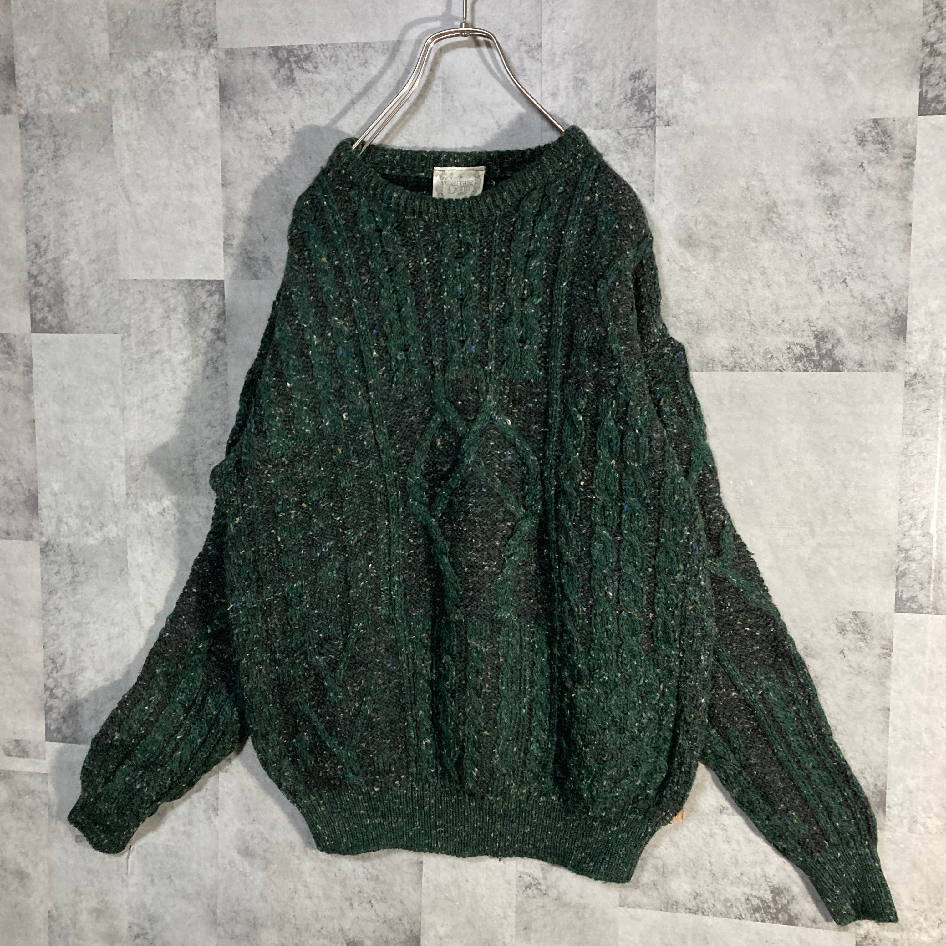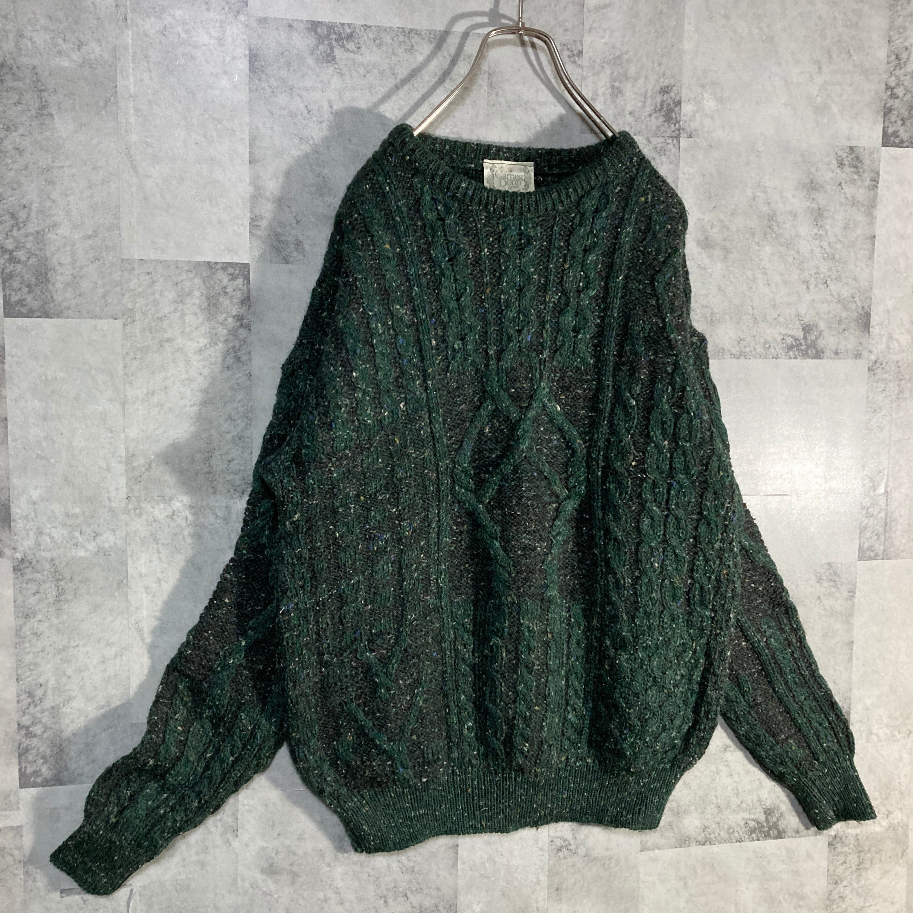 アイルランド製 CARRAIG DONN キャレイグ ドン ケーブルニット グリーン L ウールネップ