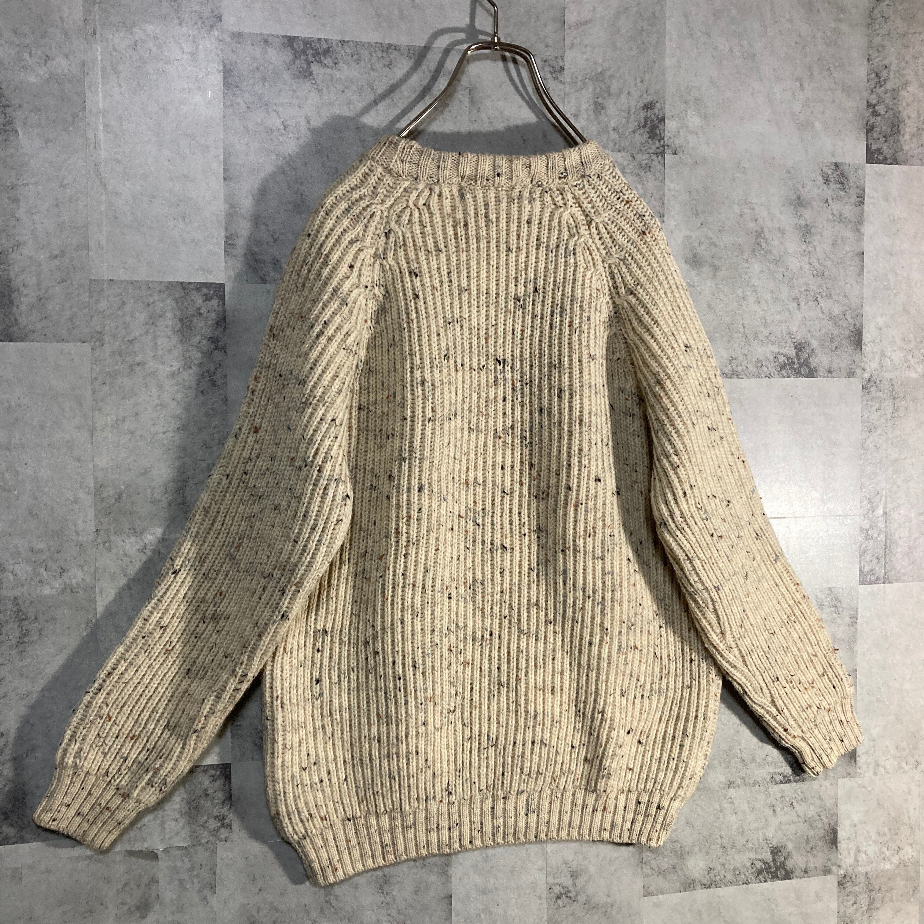英国製 Kerry Woollen Mills ケリーウーレンミルズ クルーネックニット ナチュラル 40 ウールネップ