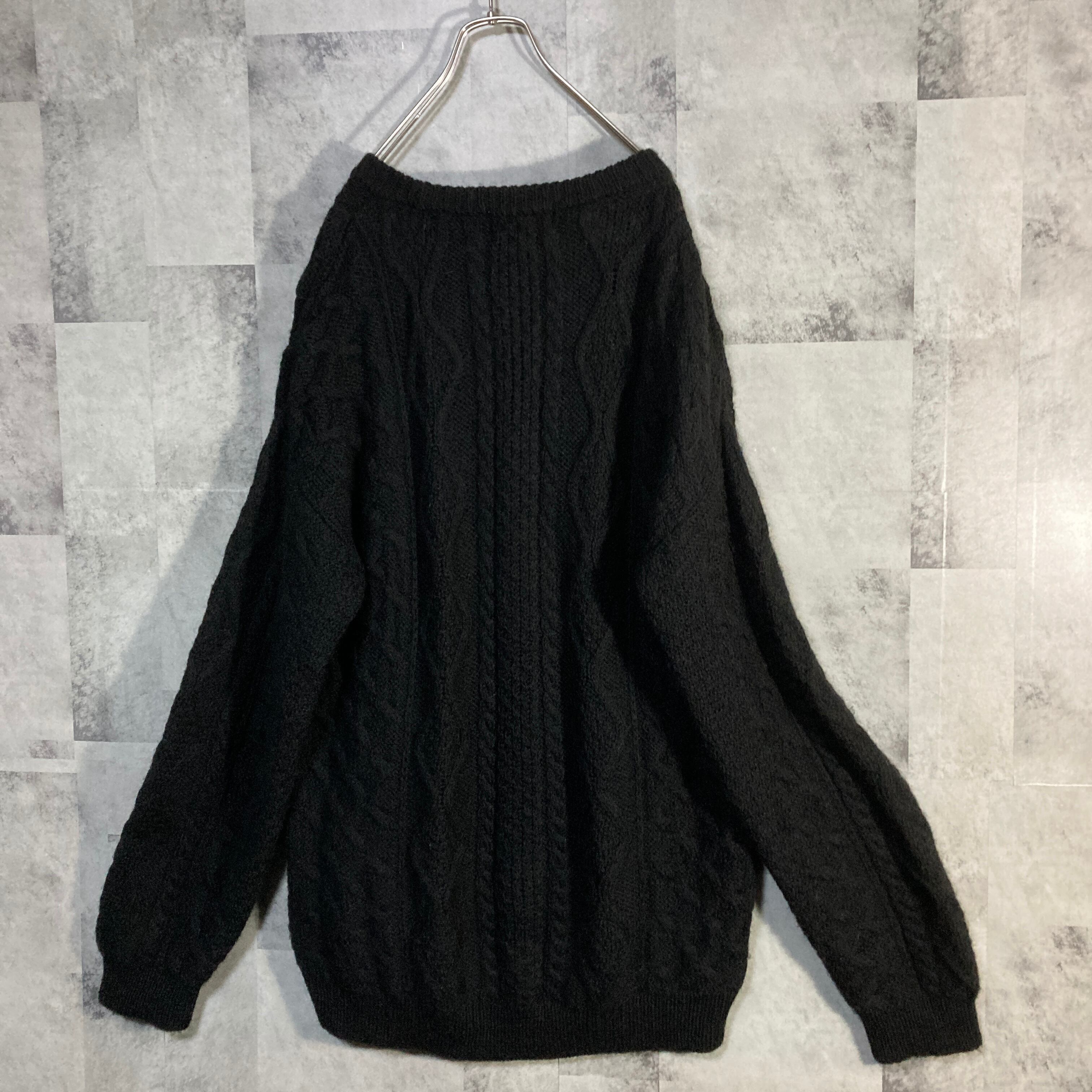 英国製 James Charlotte ジェームスシャルロット ケーブルニット ブラック 36 XL相当