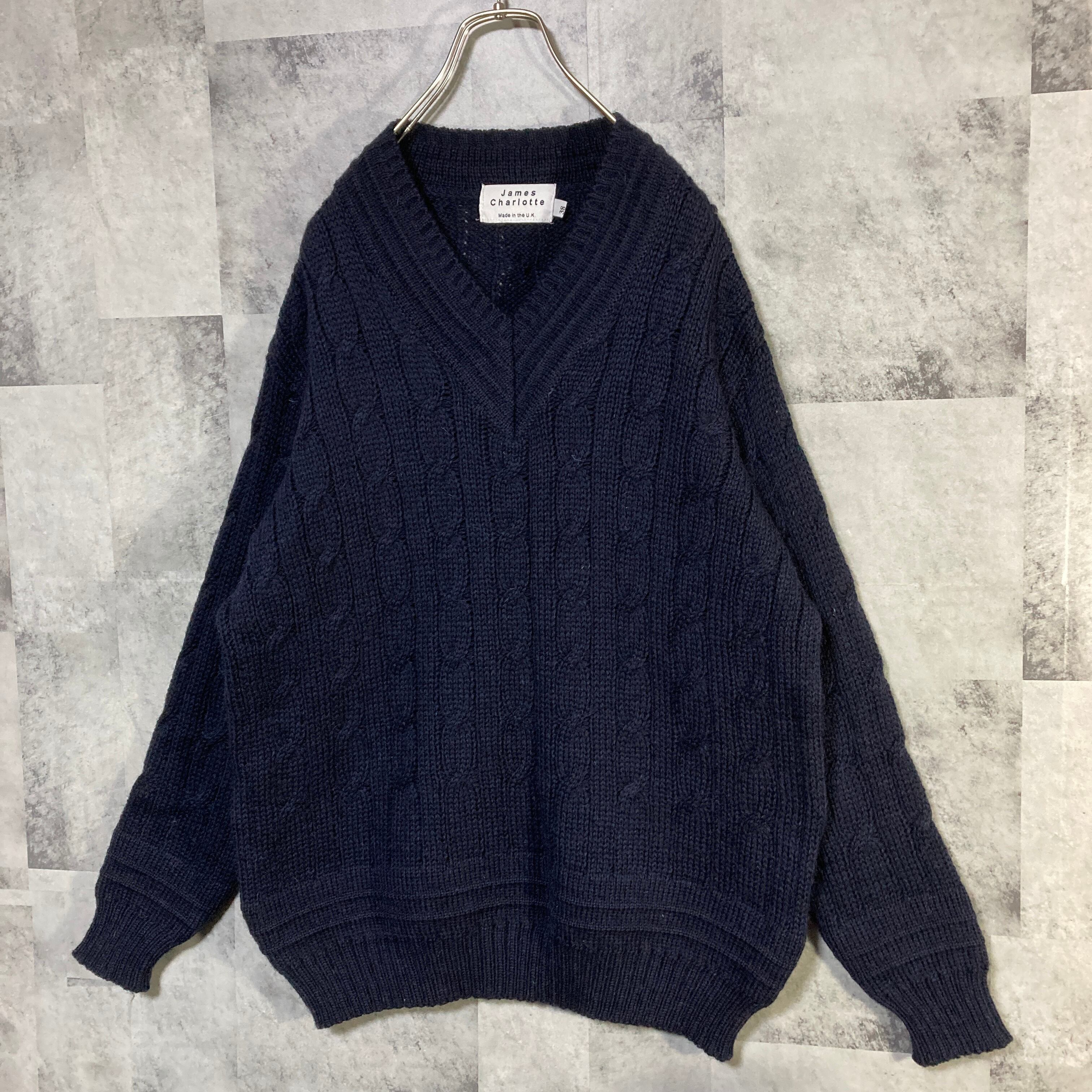 英国製 James Charlotte ジェームスシャルロット Vネックニット ネイビー38