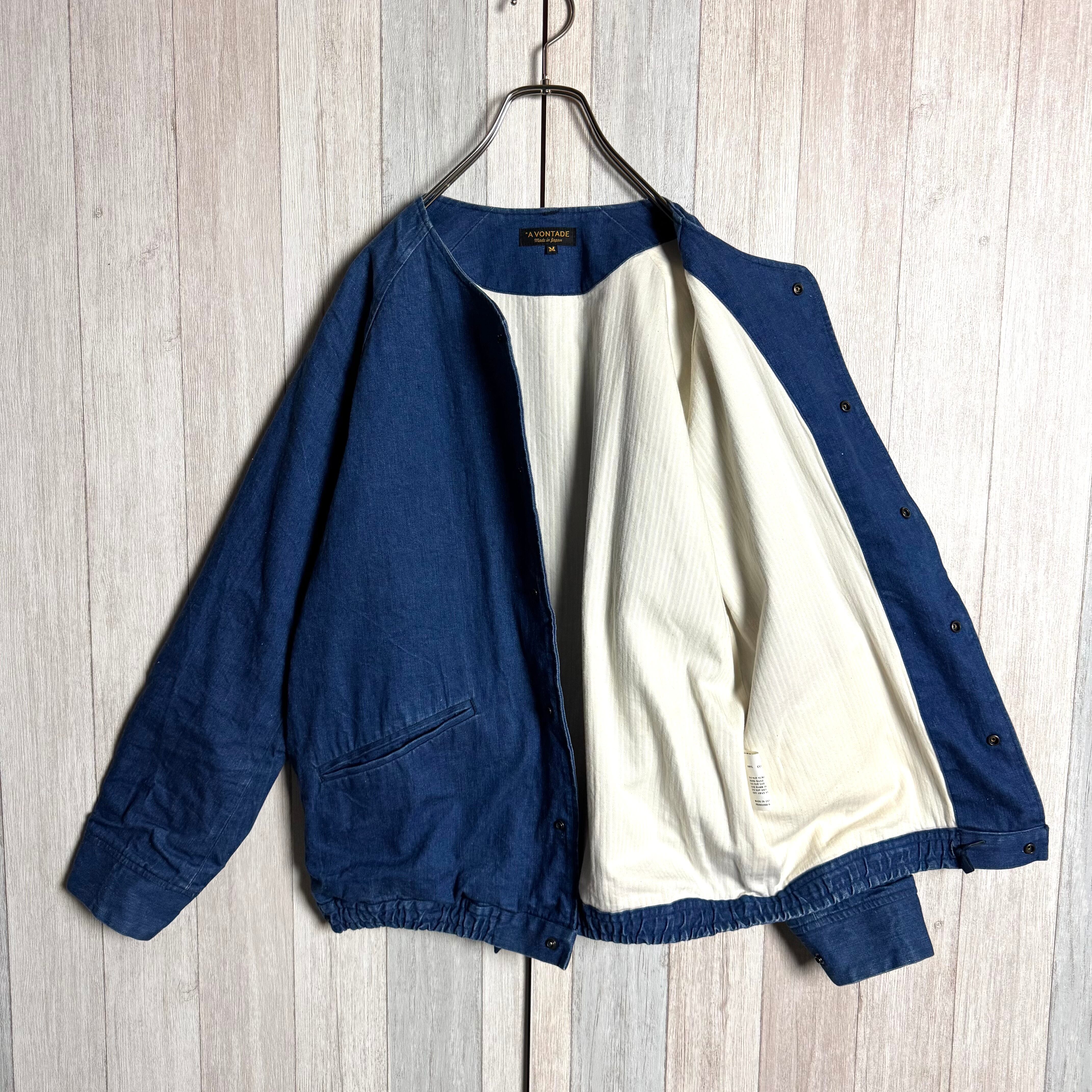 日本製 A VONTADE ノーカラー デニムスナップ ジャケット コーチジャケット インディゴ M