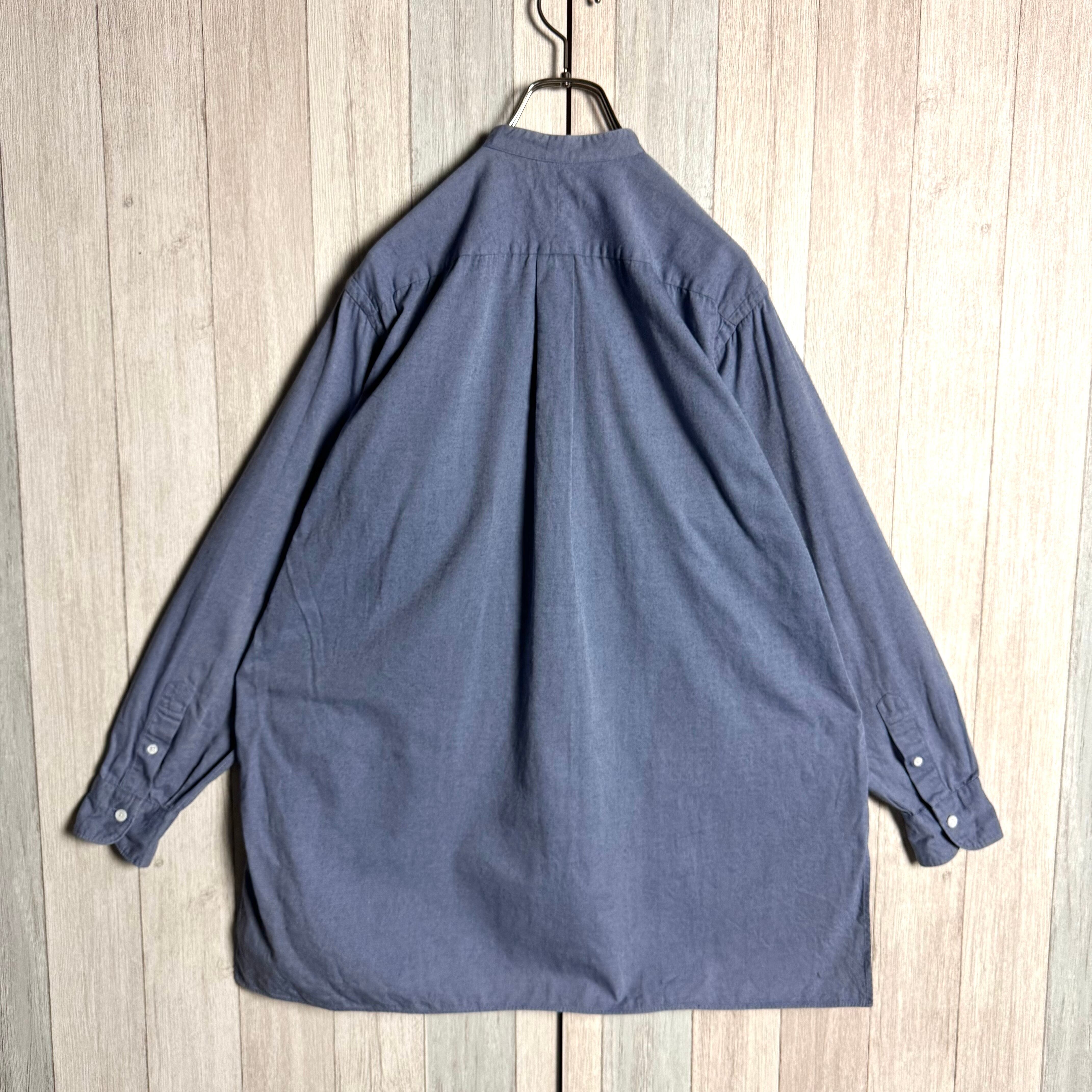 日本製 COMOLI コモリ 長袖 バンドカラー シャツ コットンネル サックスブルー 1
