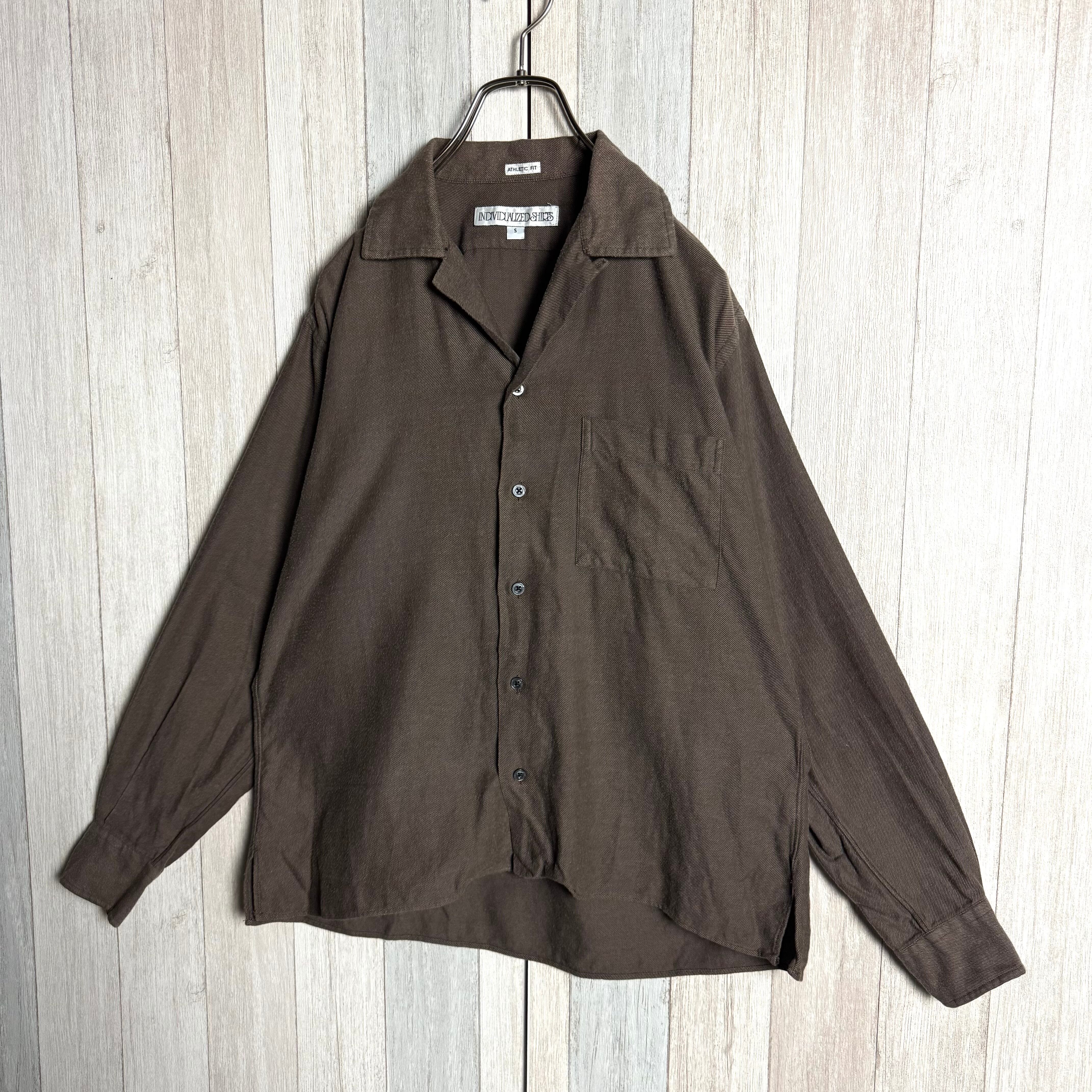 USA製 INDIVIDUALIZED SHIRTS インディヴィジュアライズド シャツ 長袖 オープンカラーシャツ コットンフランネル モカ S