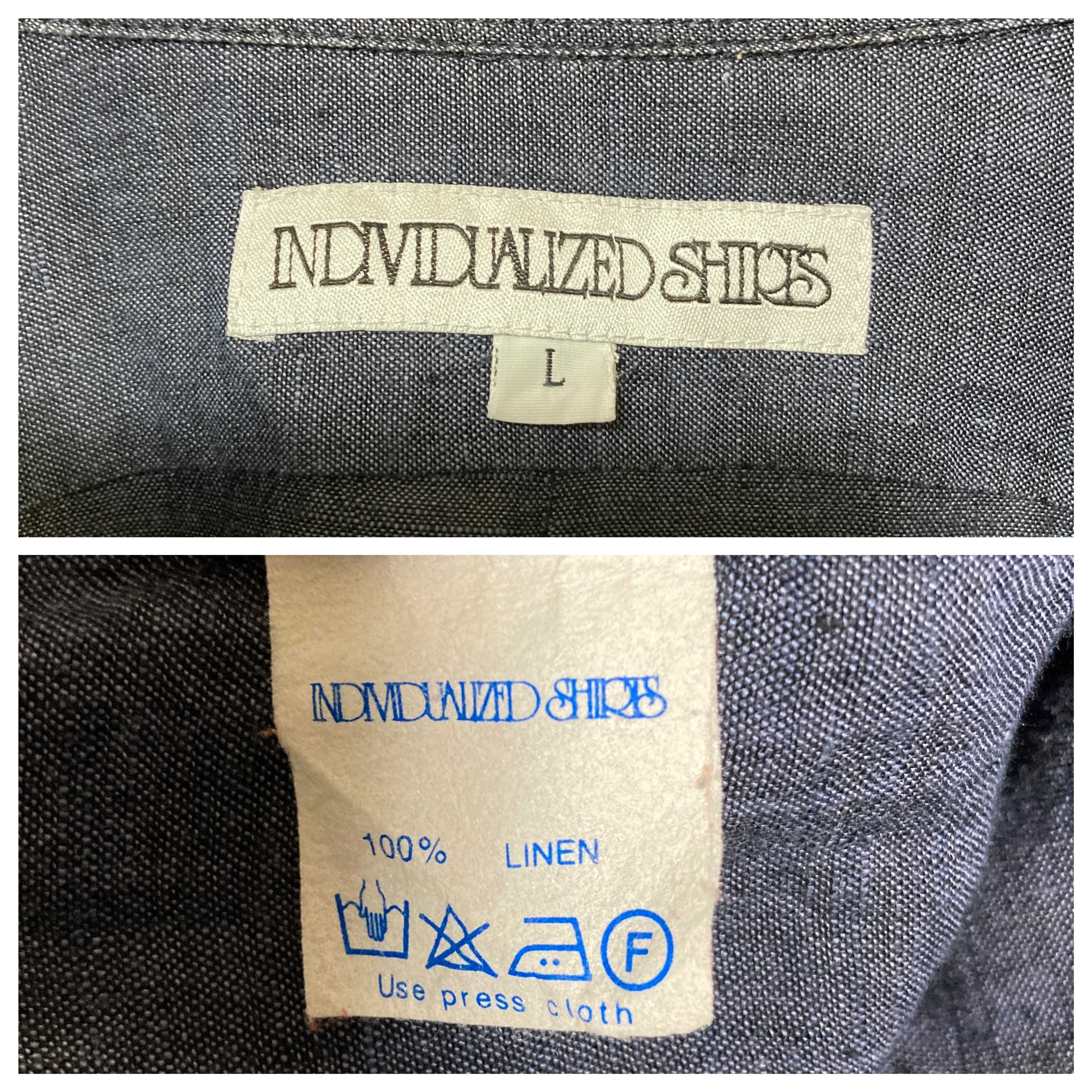 USA製 INDIVIDUALIZED SHIRTS インディヴィジュアライズド シャツ 長袖 リネン ネイビー L