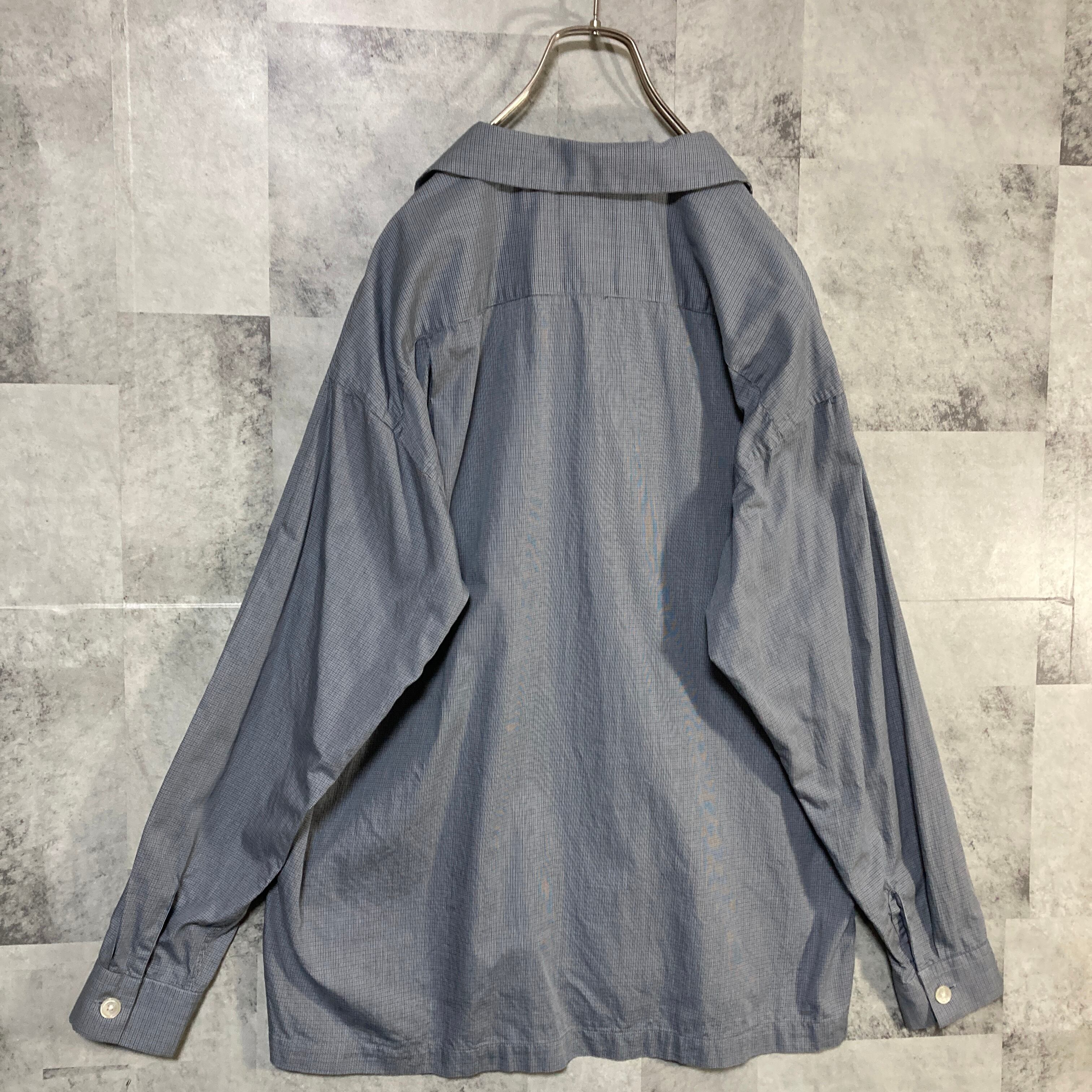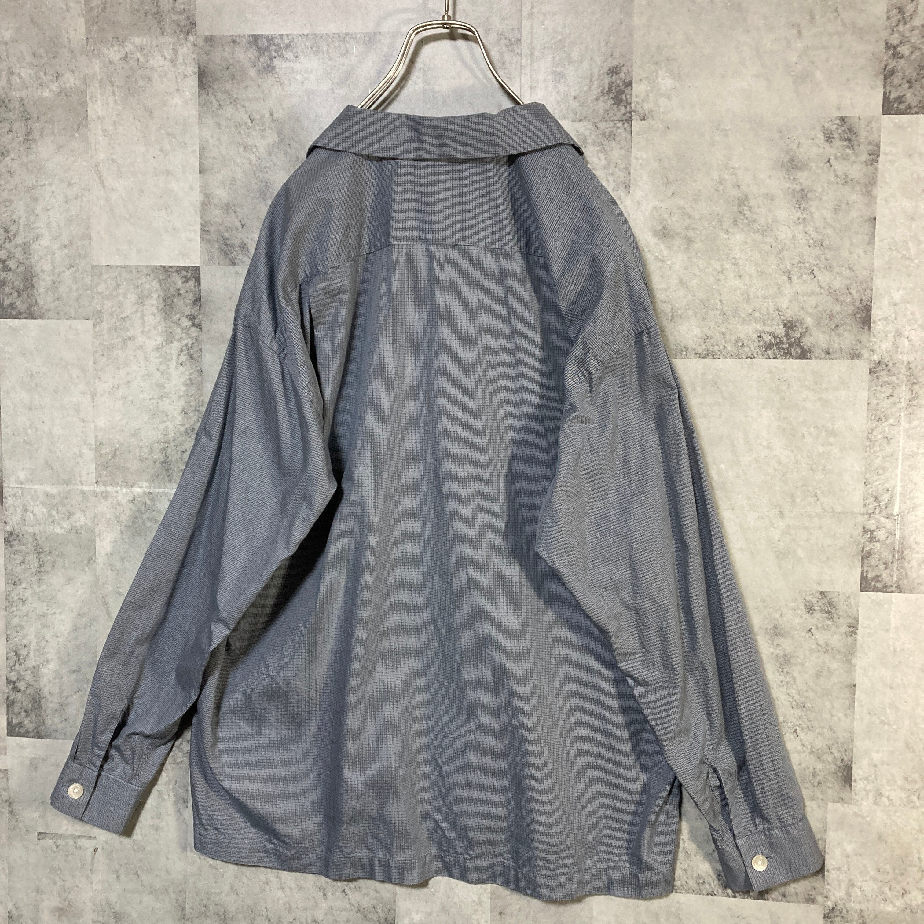 日本製 SERO 長袖 オープンカラーシャツ 千鳥格子 グレー L相当