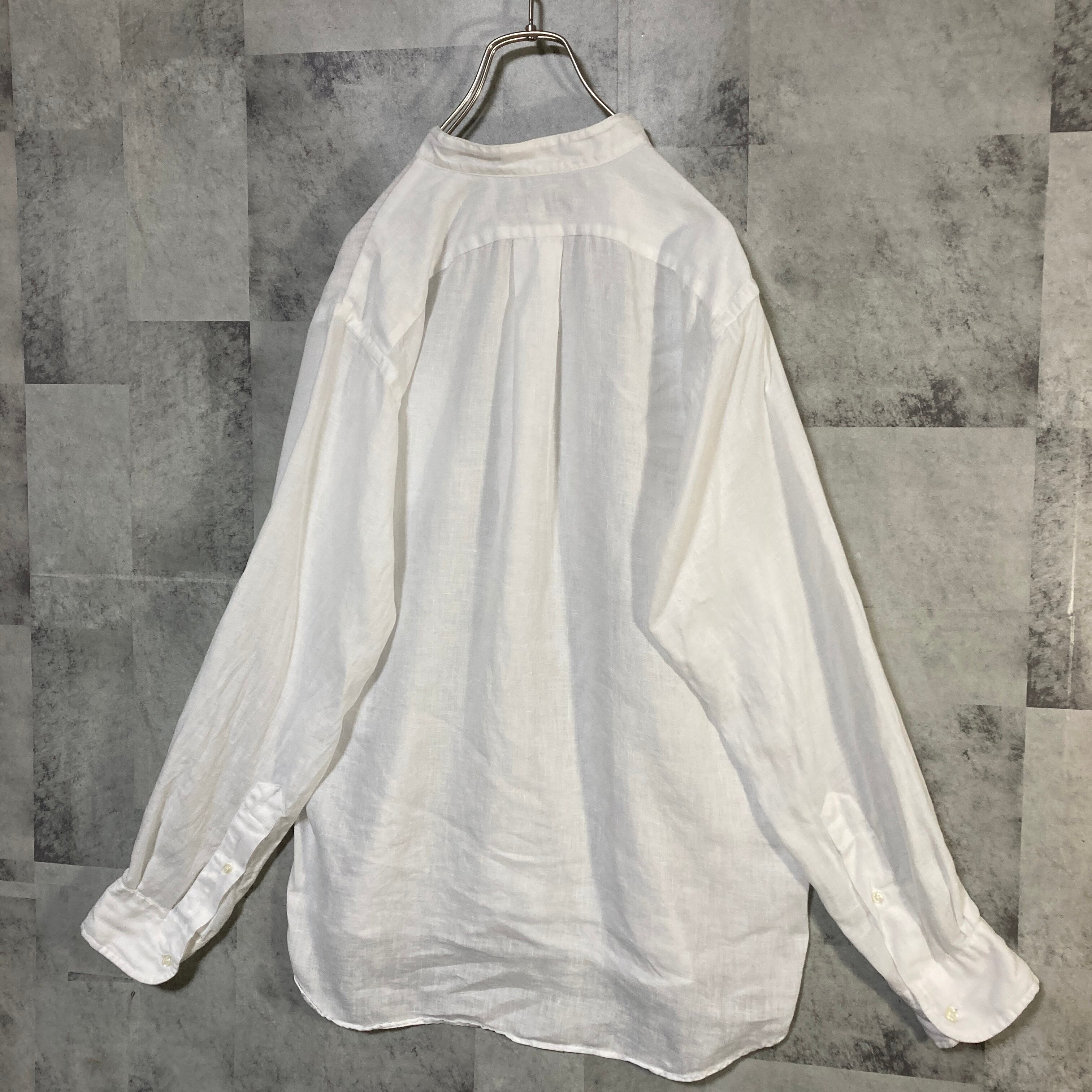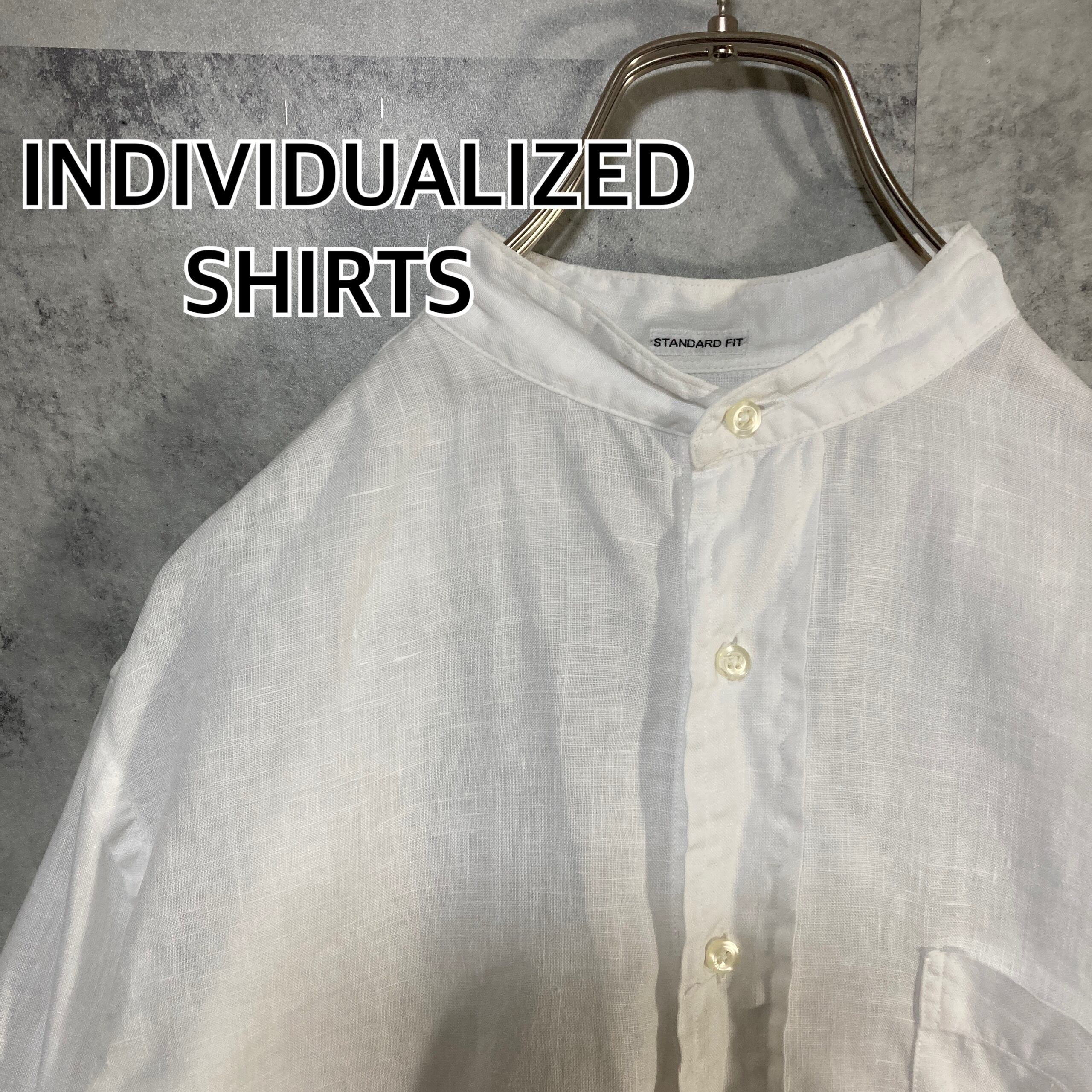 USA製 INDIVIDUALIZED SHIRTS インディヴィジュアライズド シャツ 長袖バンドカラー リネン ホワイト M-L相当