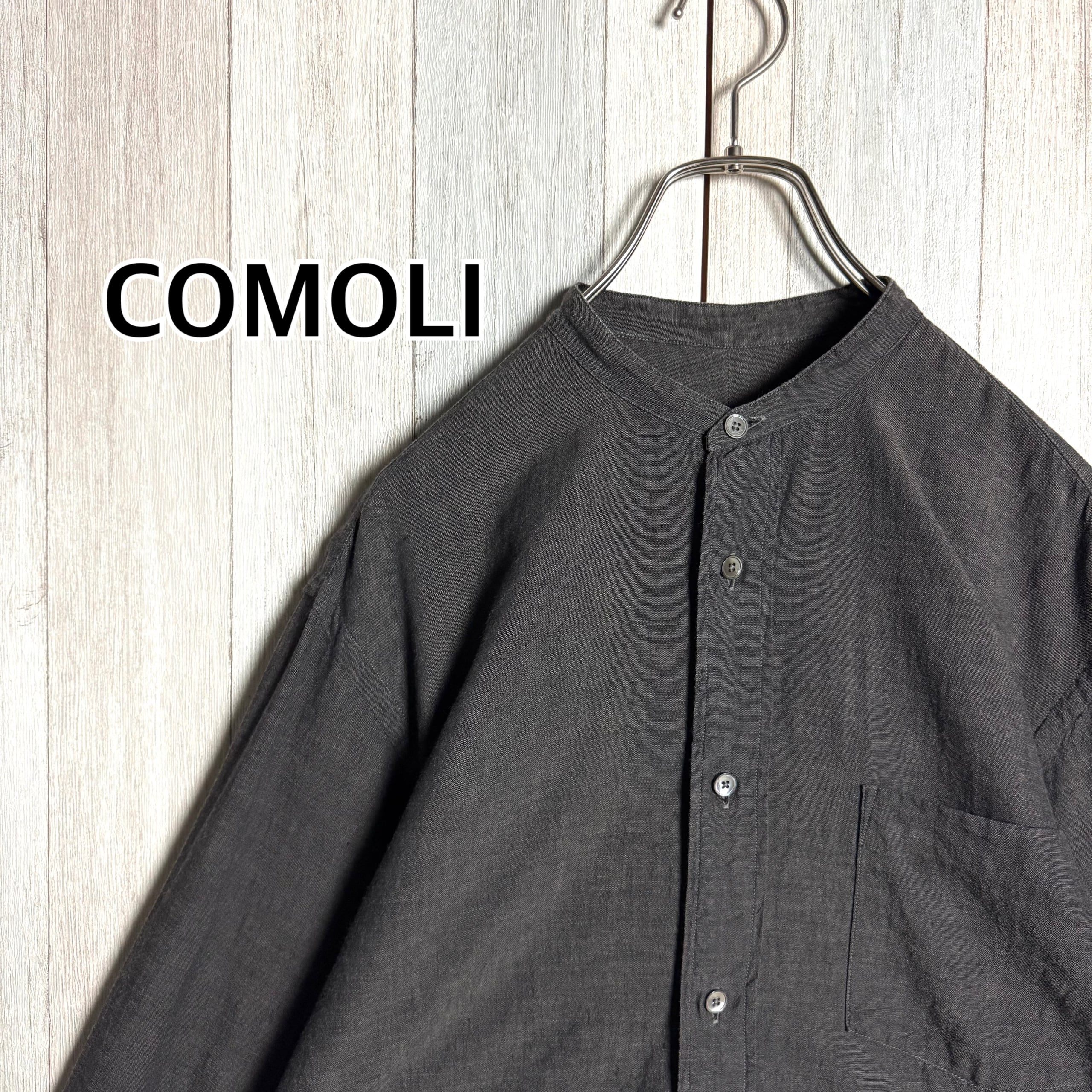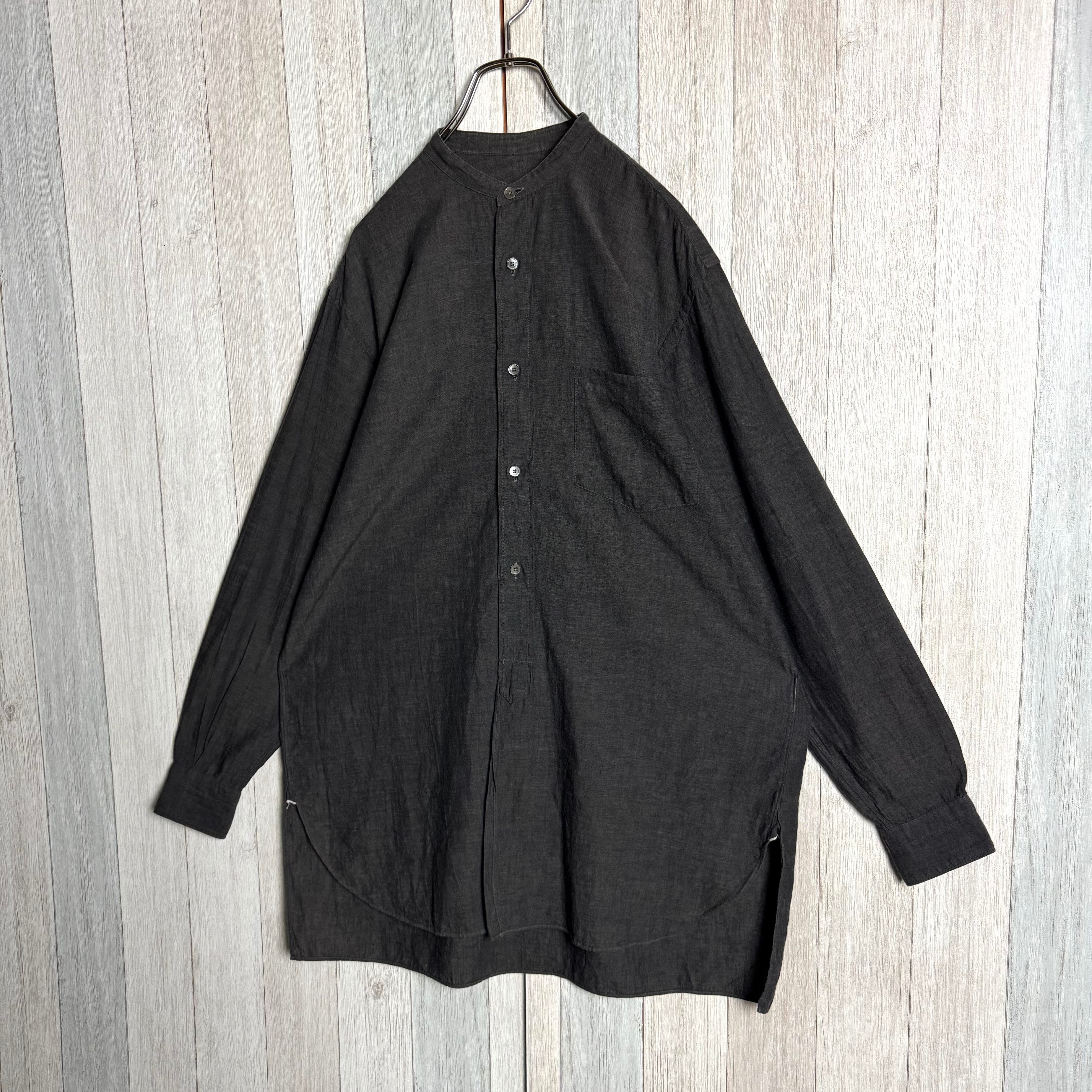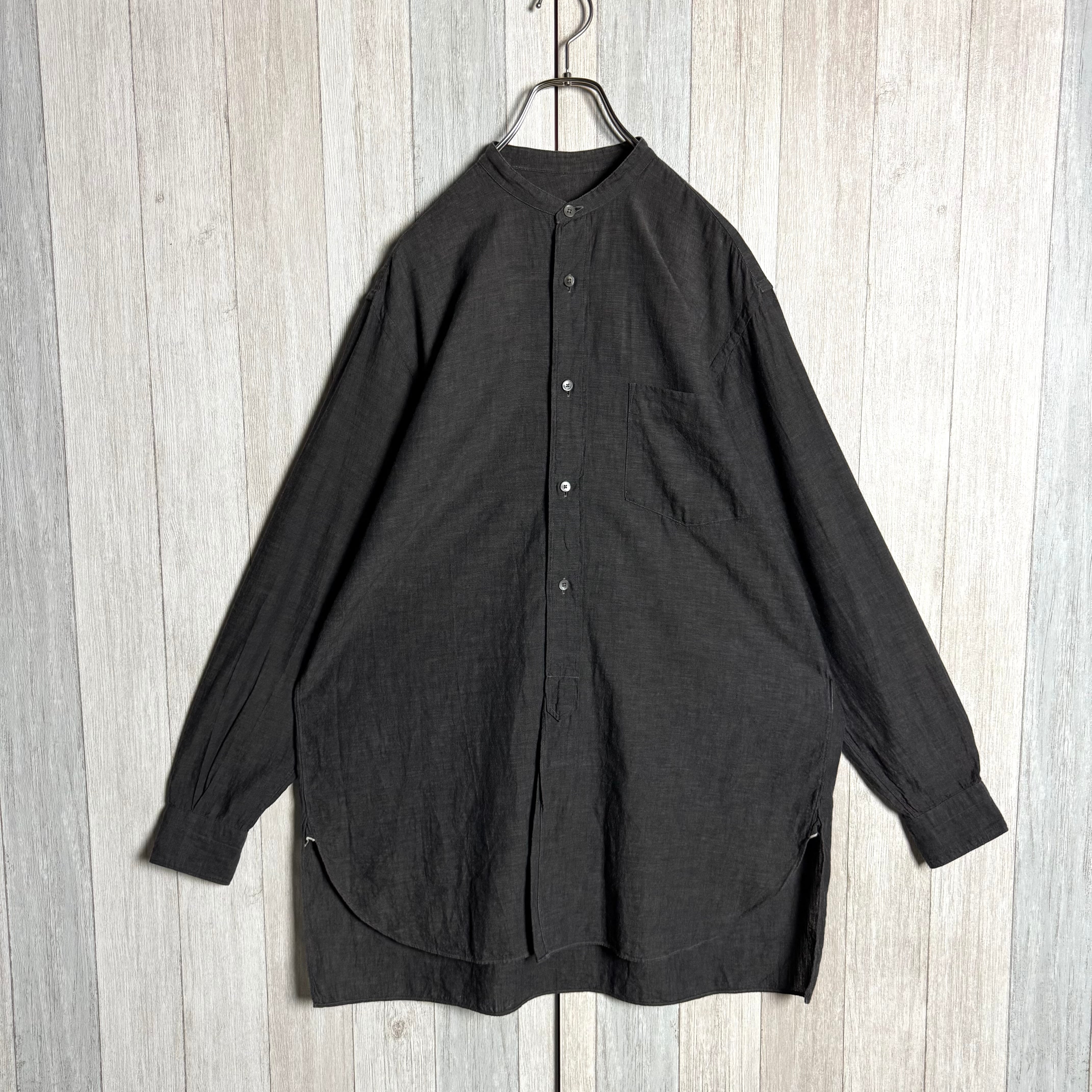 日本製 COMOLI コモリ 長袖 バンドカラー シャツ シャンブレー グレー 2