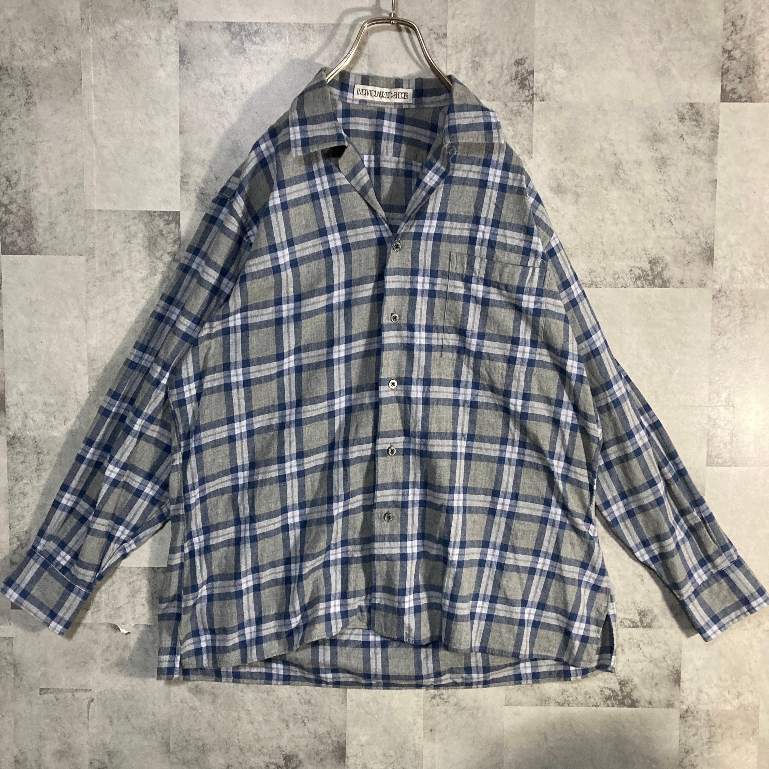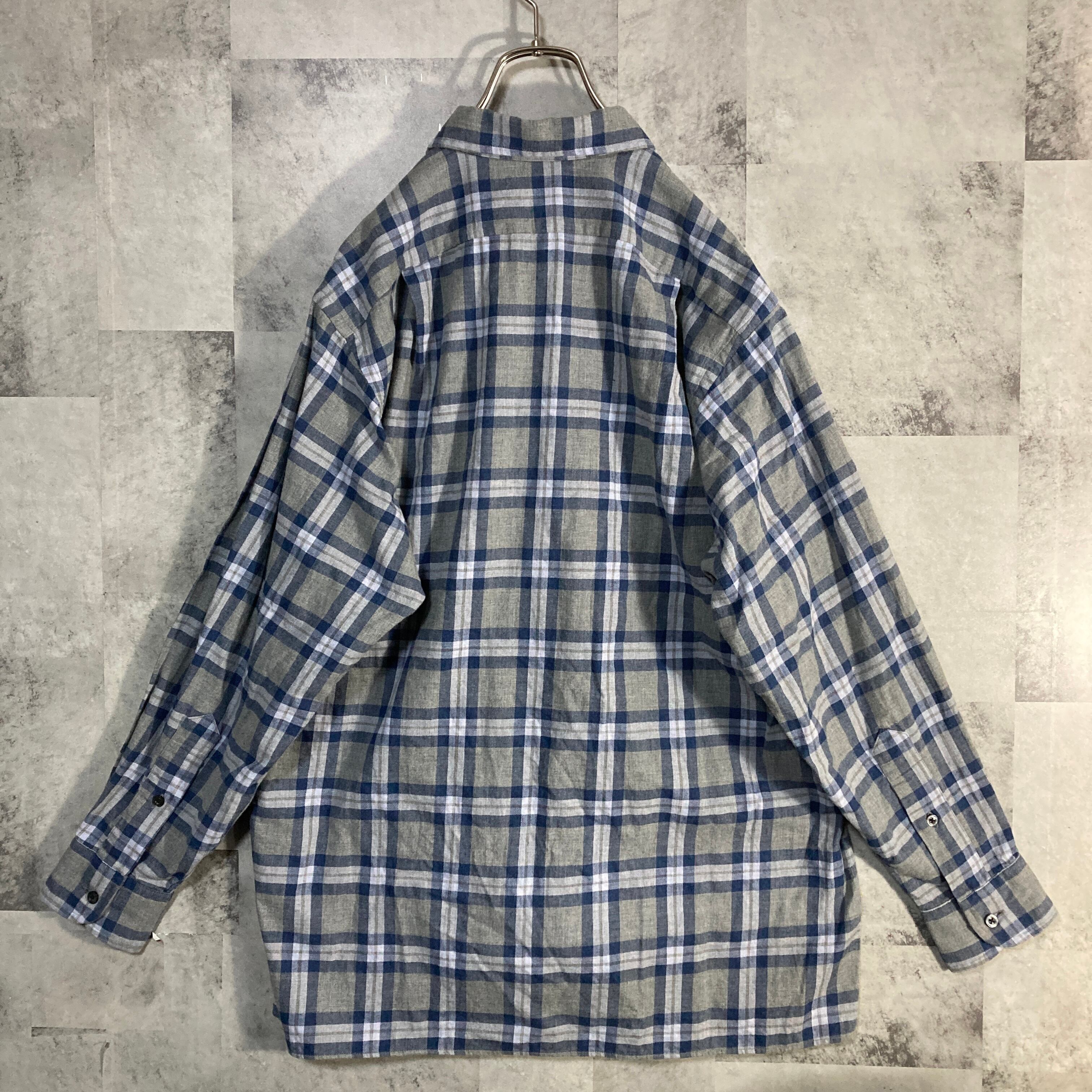 USA製 INDIVIDUALIZED SHIRTS インディヴィジュアライズド シャツ 長袖 オープンカラーシャツ コットンフランネル チェック ブルー&グレー L相当