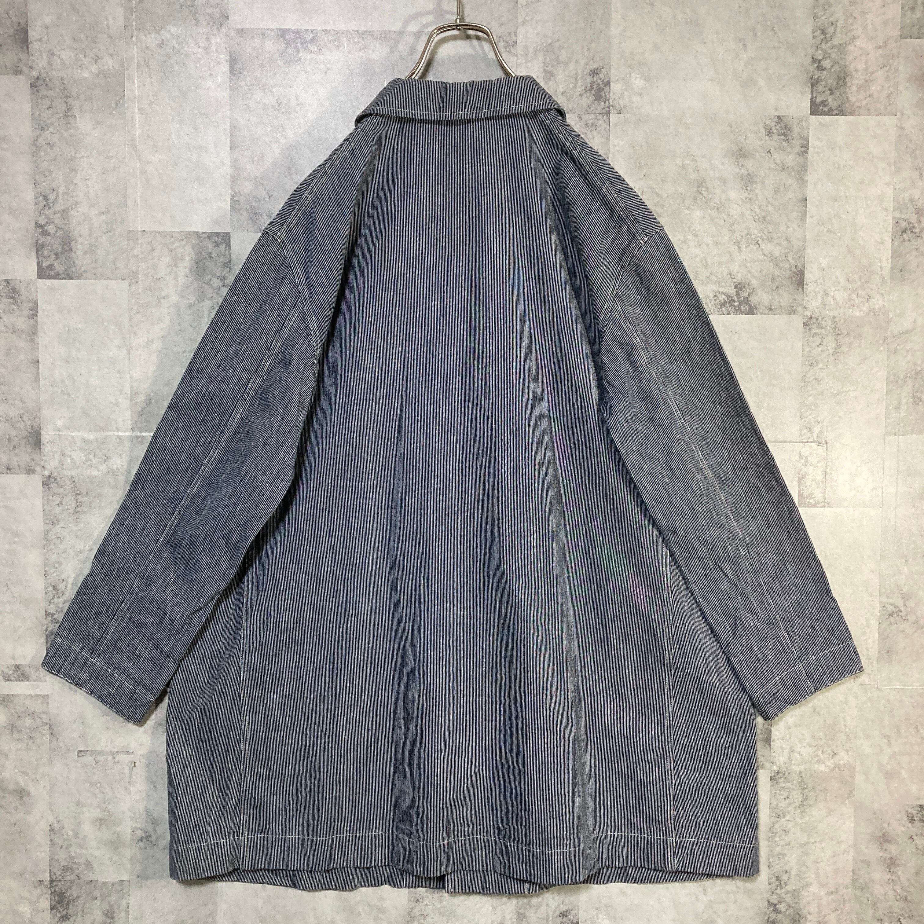 日本製 Veritecoeur ヴェリテクール ストライプ コート コットン ネイビー
