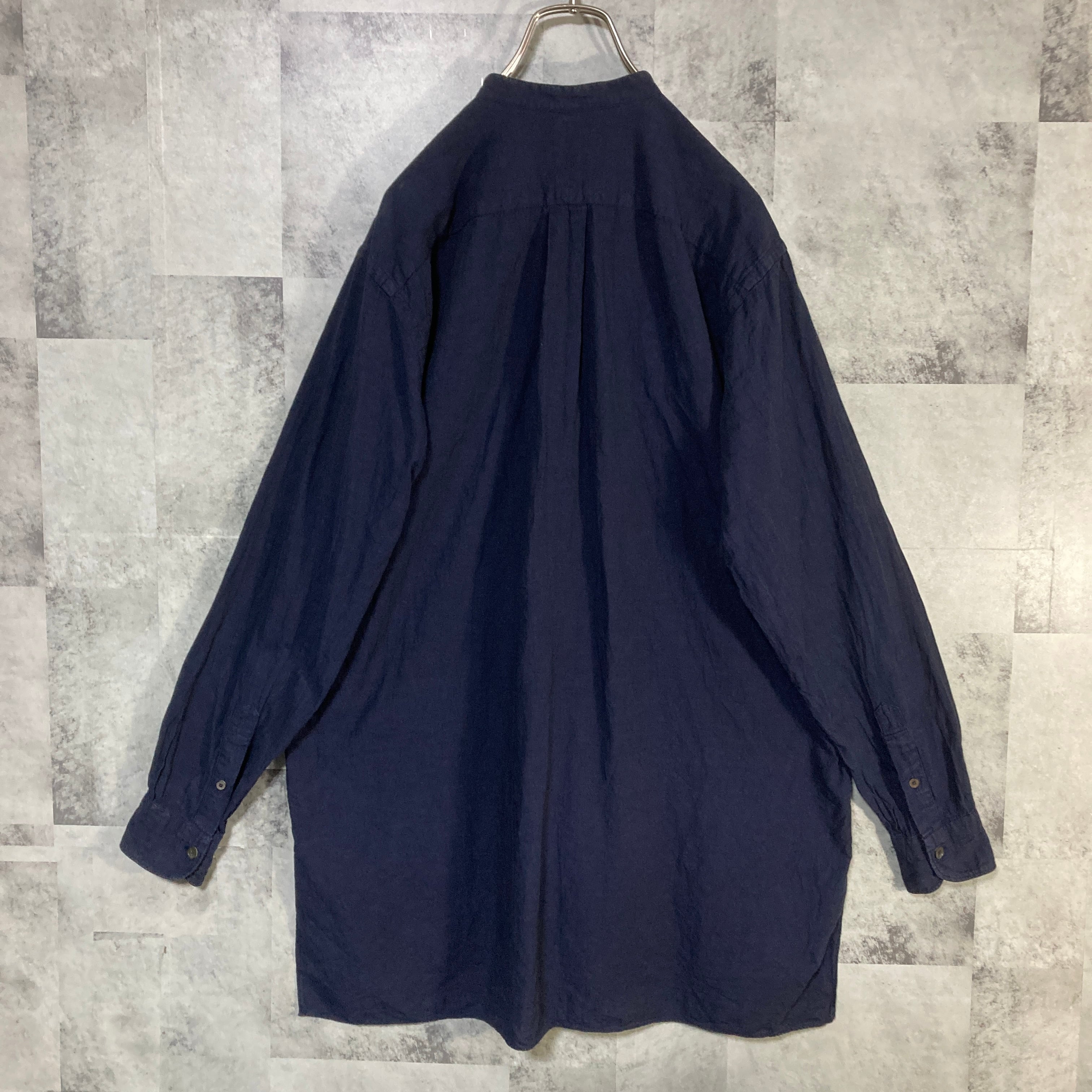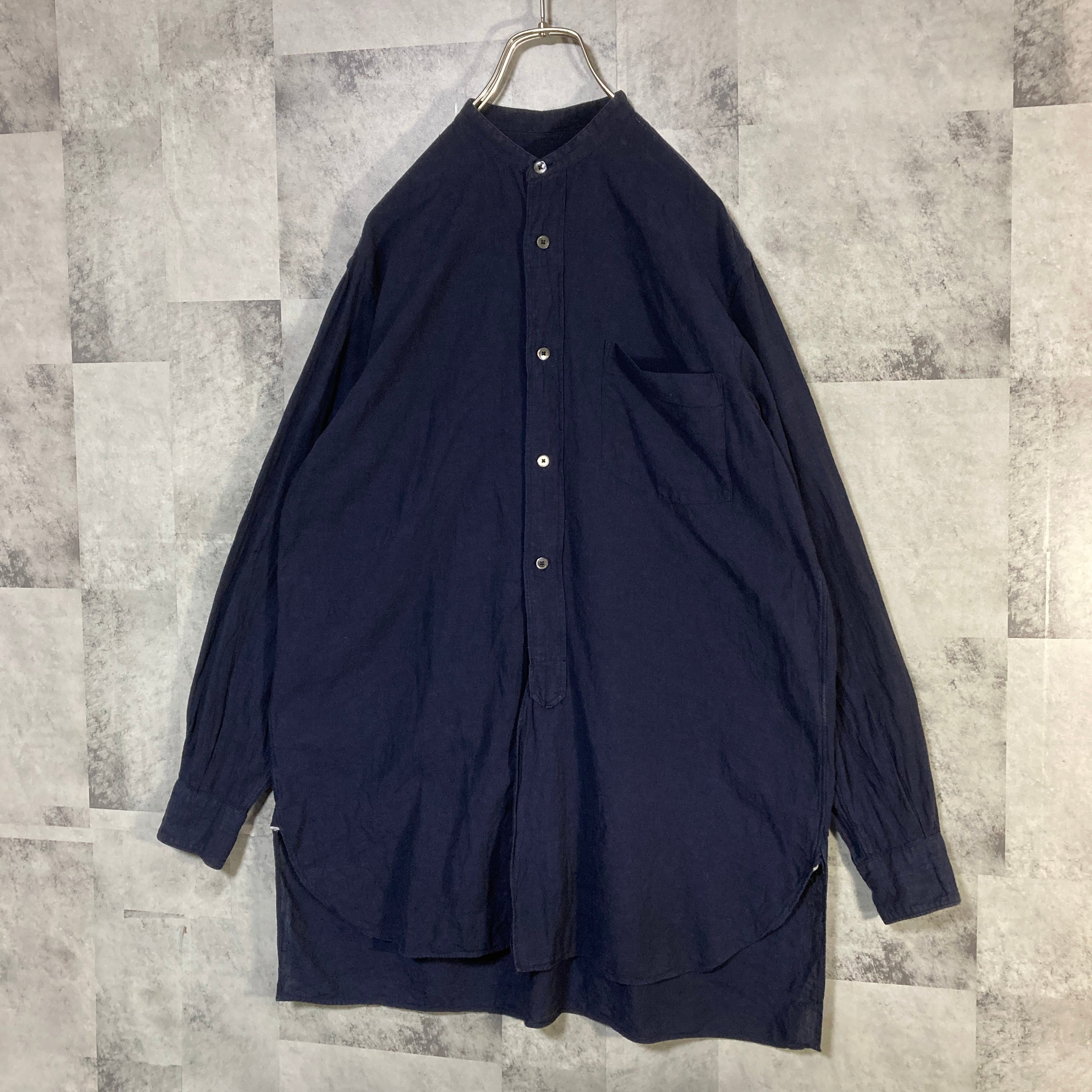 日本製 COMOLI コモリ 長袖 バンドカラー シャツ ネイビー 1