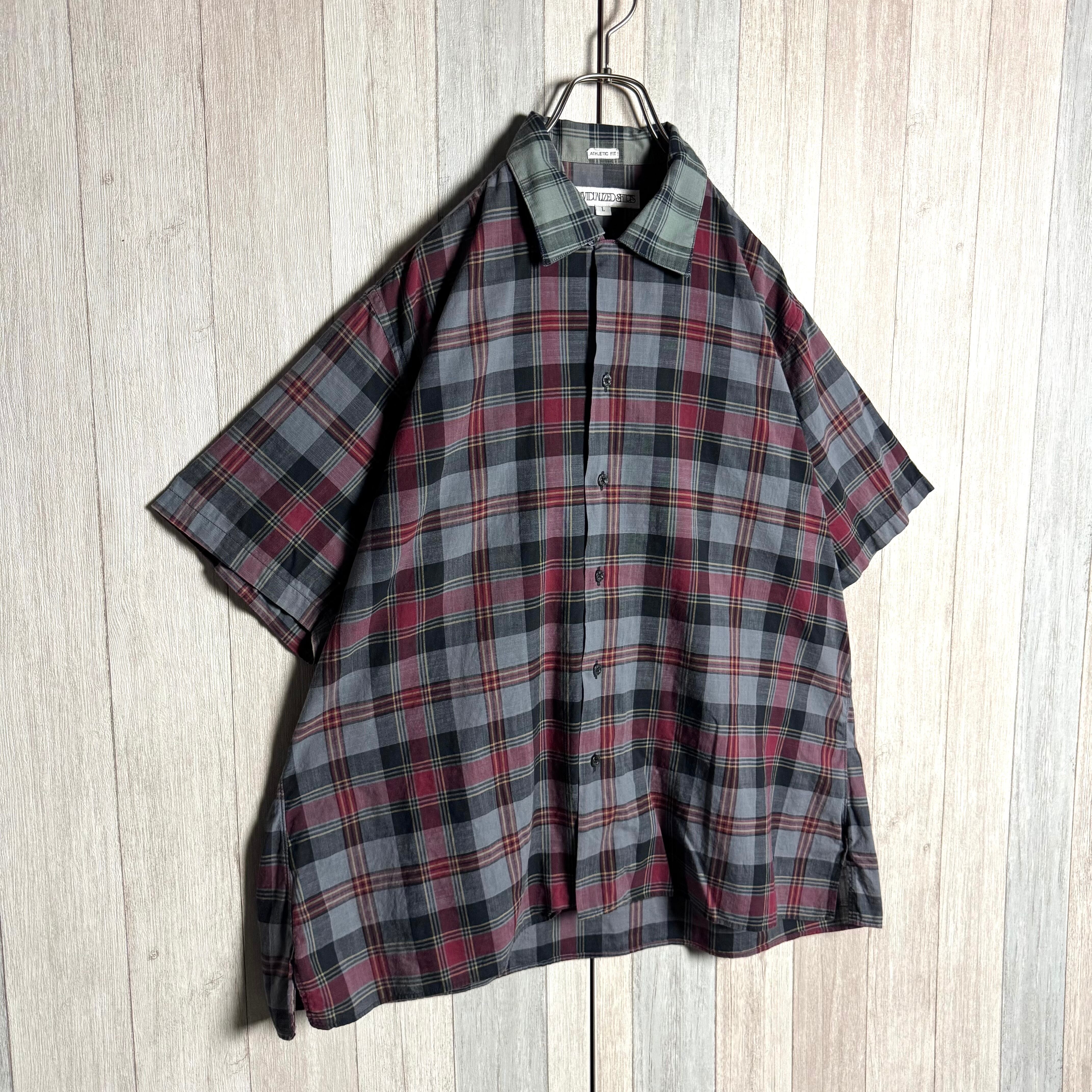 USA製 INDIVIDUALIZED SHIRTS インディヴィジュアライズド シャツ 半袖 オープンカラーシャツ チェック グレー L