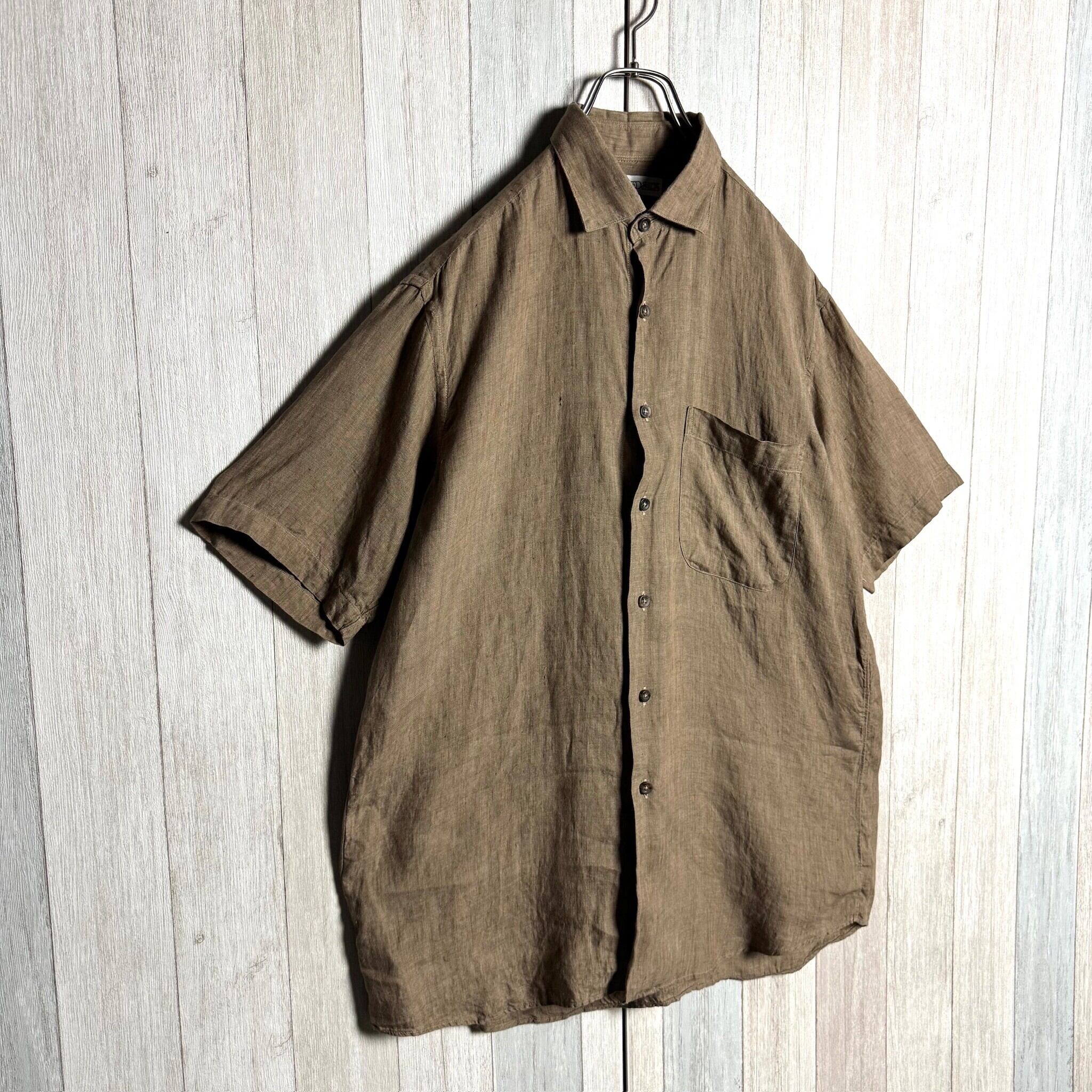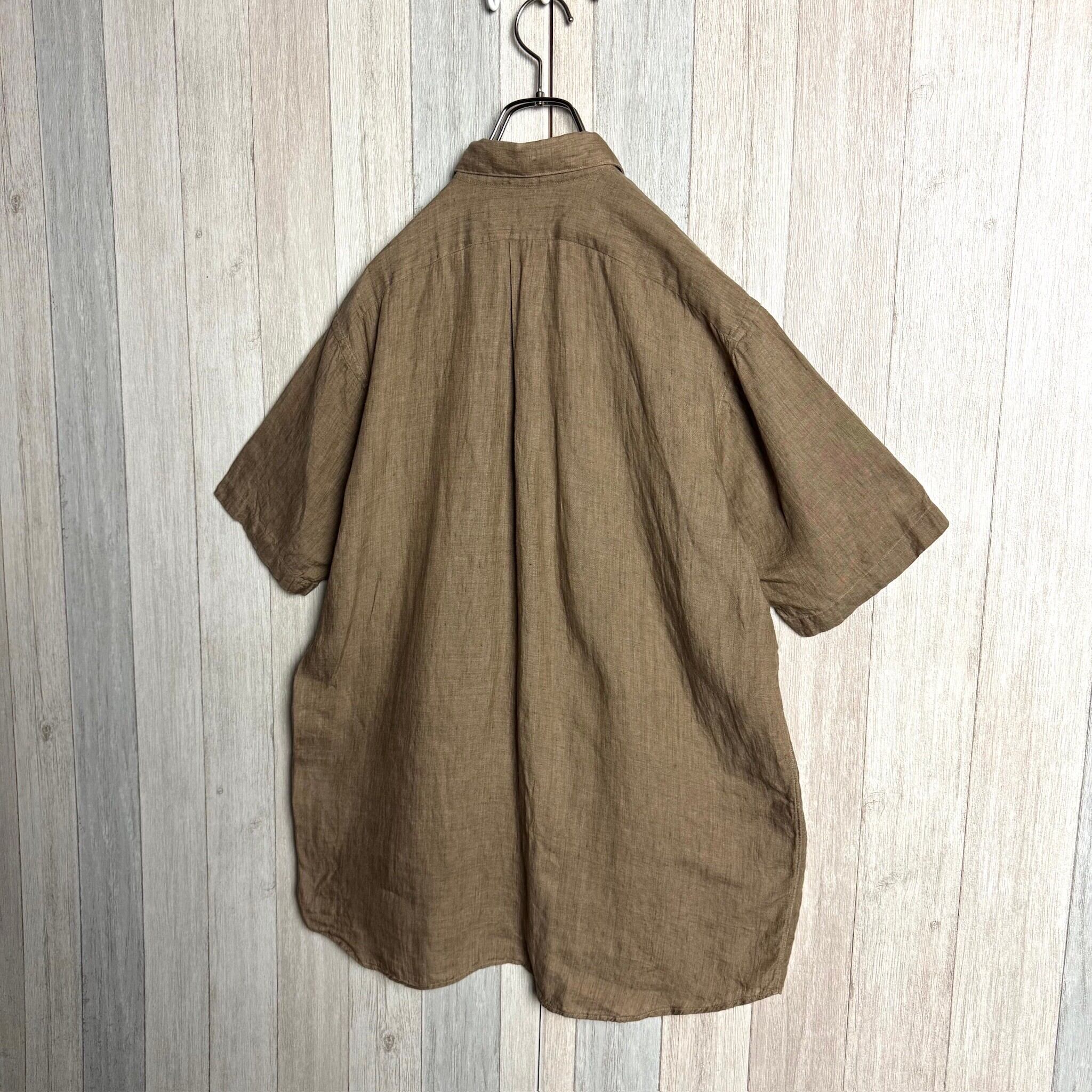 USA製 INDIVIDUALIZED SHIRTS インディヴィジュアライズド シャツ 半袖 リネン モカ M