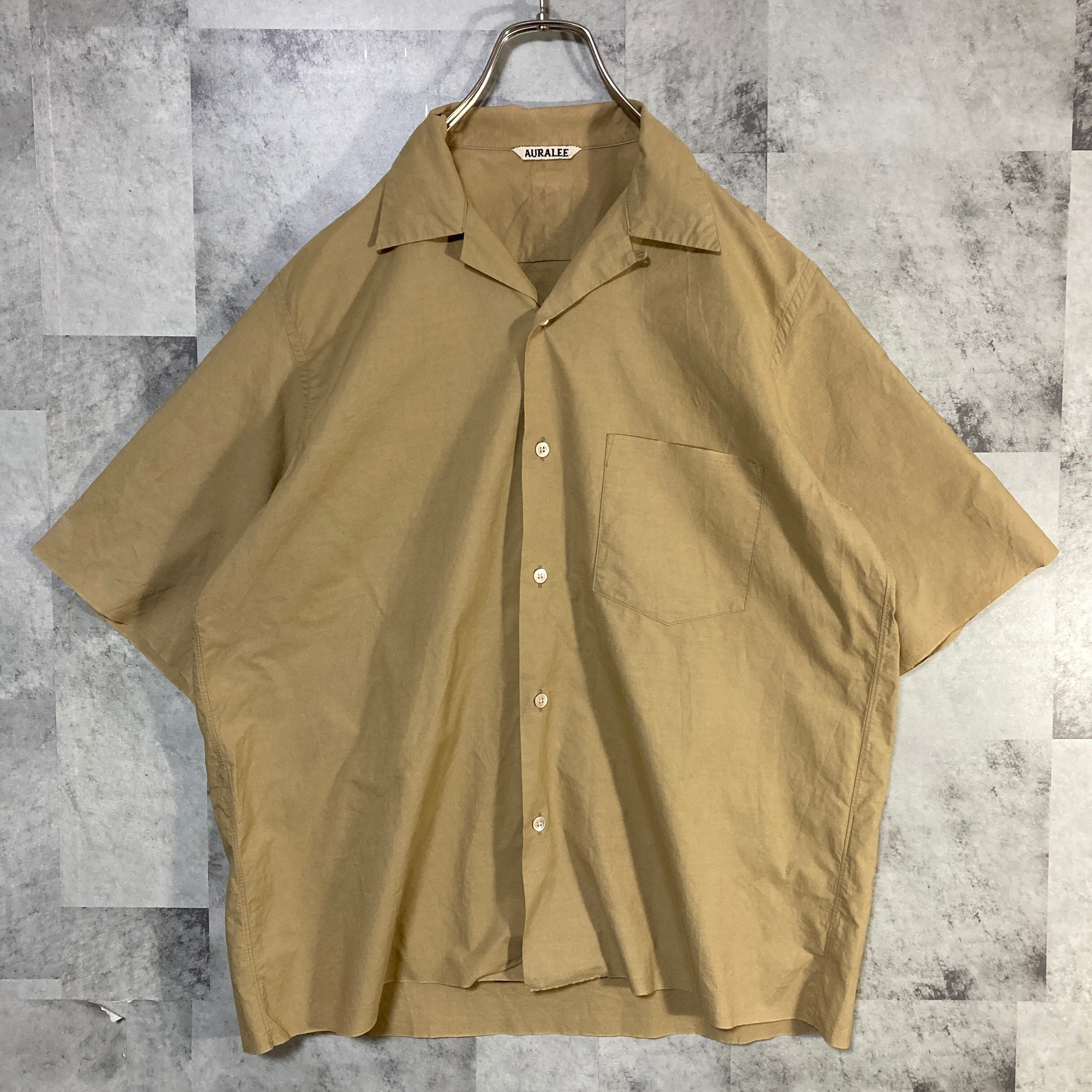 日本製 AURALEE オーラリー 半袖オープンカラーシャツ コットン キャメル 3