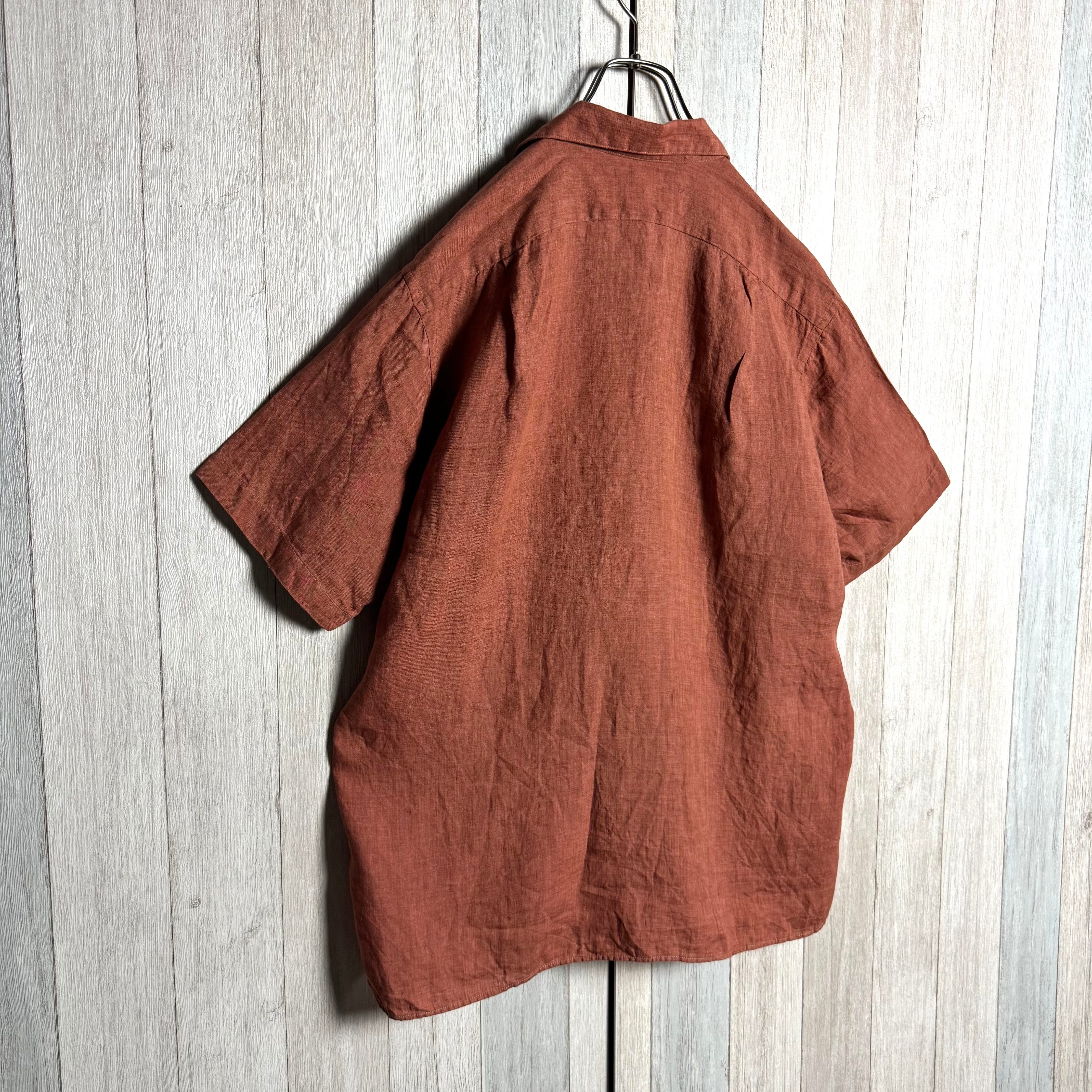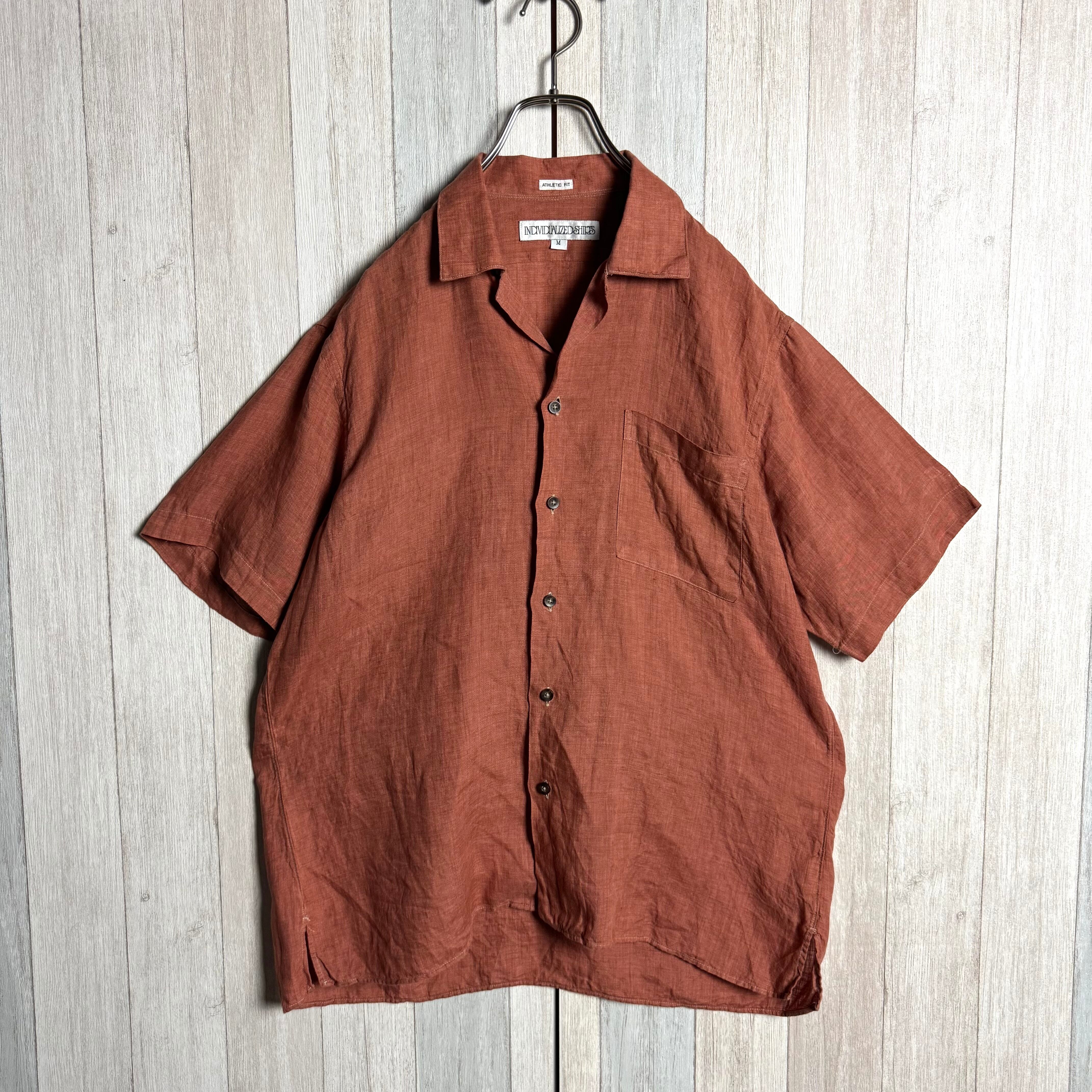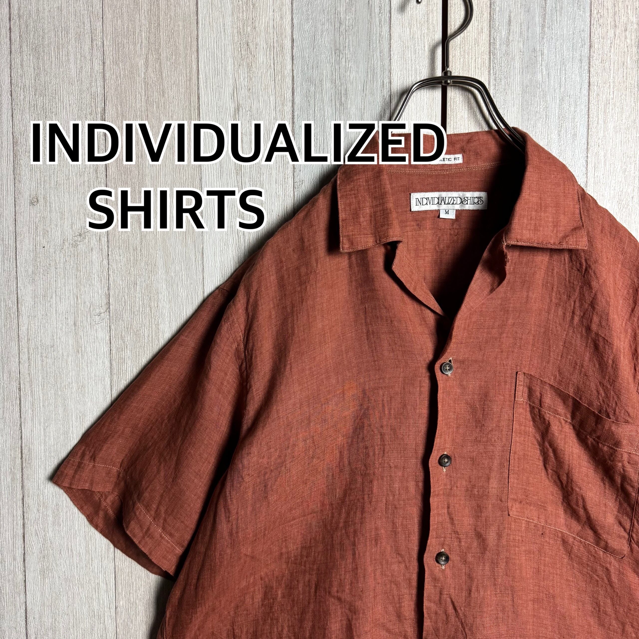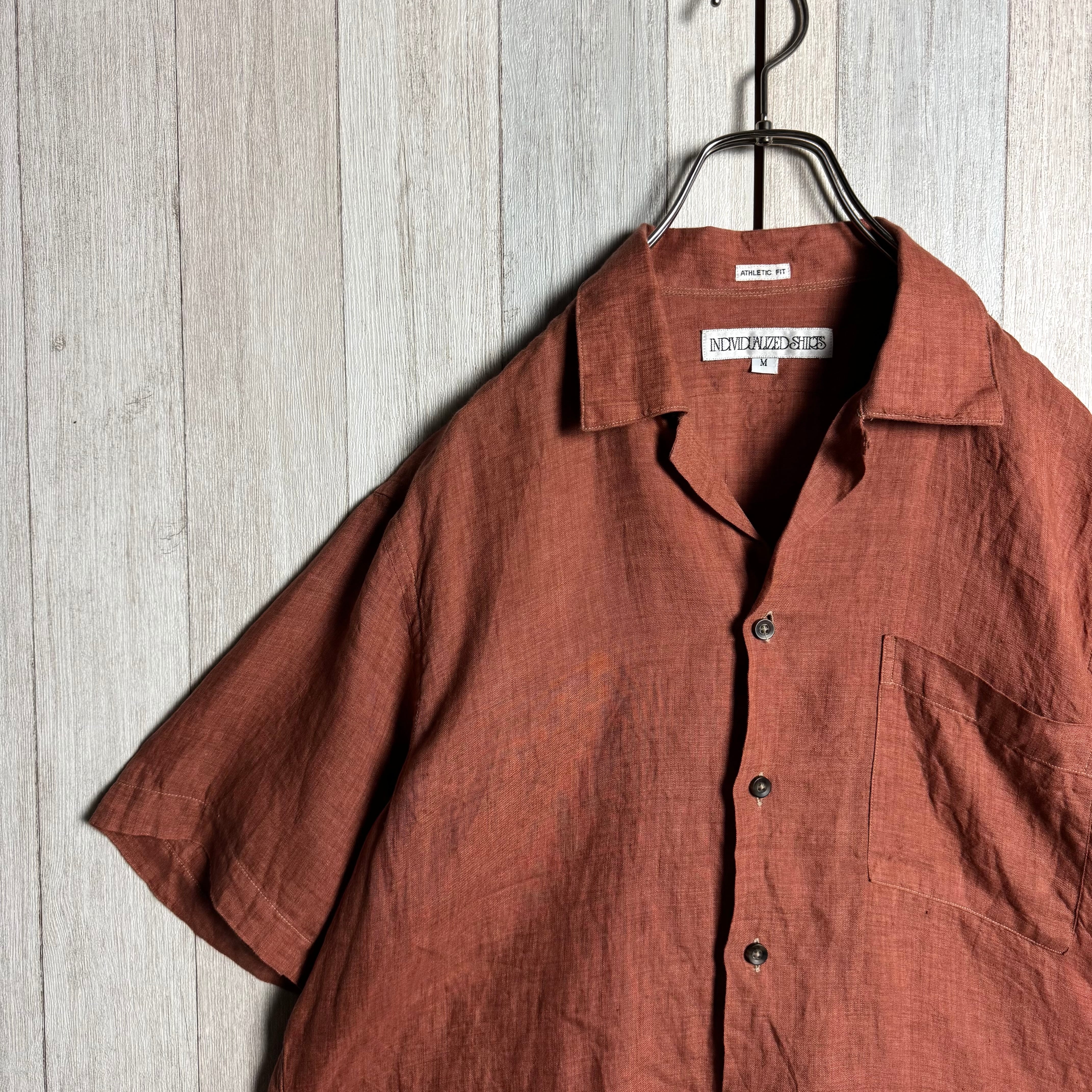 USA製 INDIVIDUALIZED SHIRTS インディヴィジュアライズド シャツ 半袖 オープンカラーシャツ リネン テラコッタ M