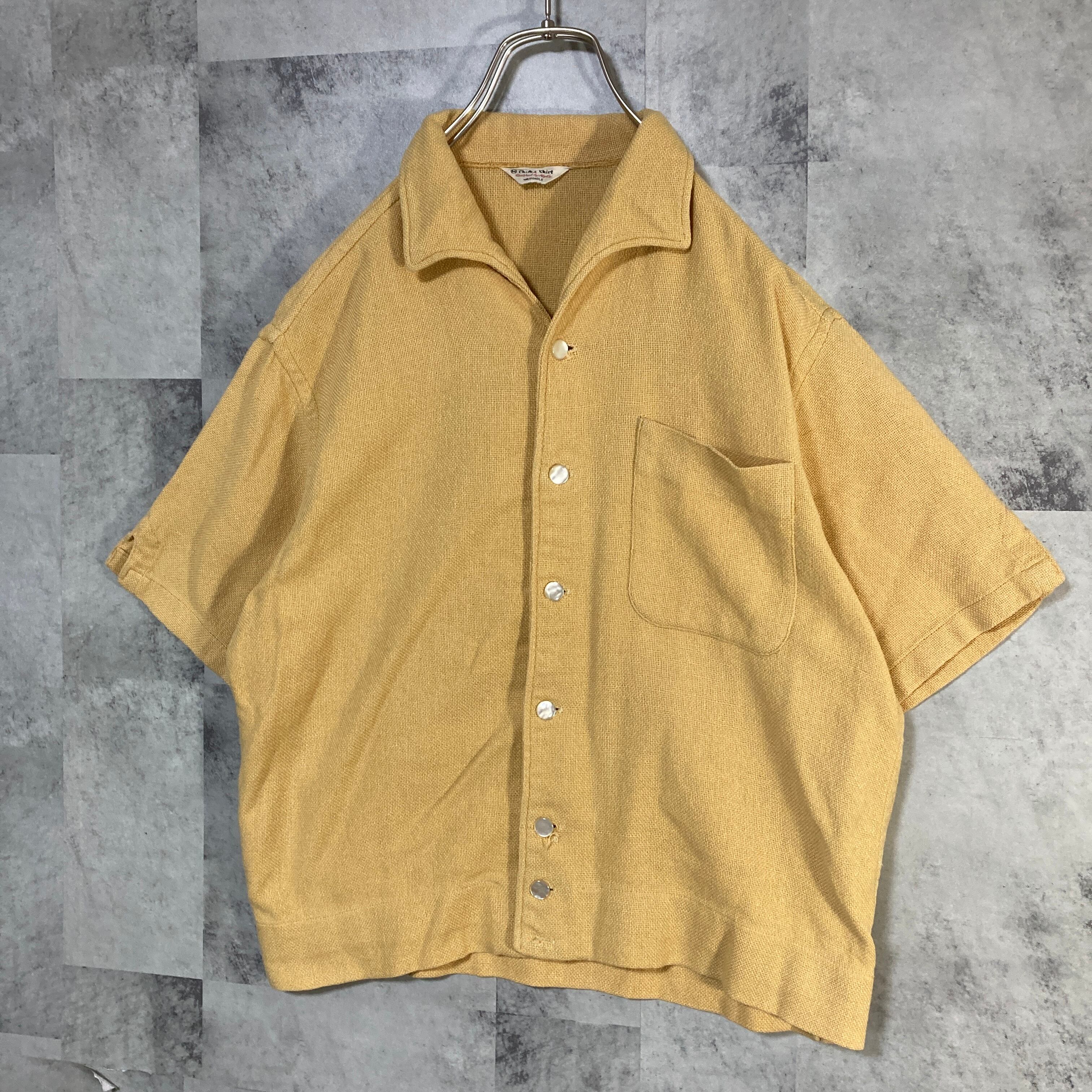 60's Hylo 半袖 イタリアンカラーボックスカットシャツ イエロー M ヴィンテージ