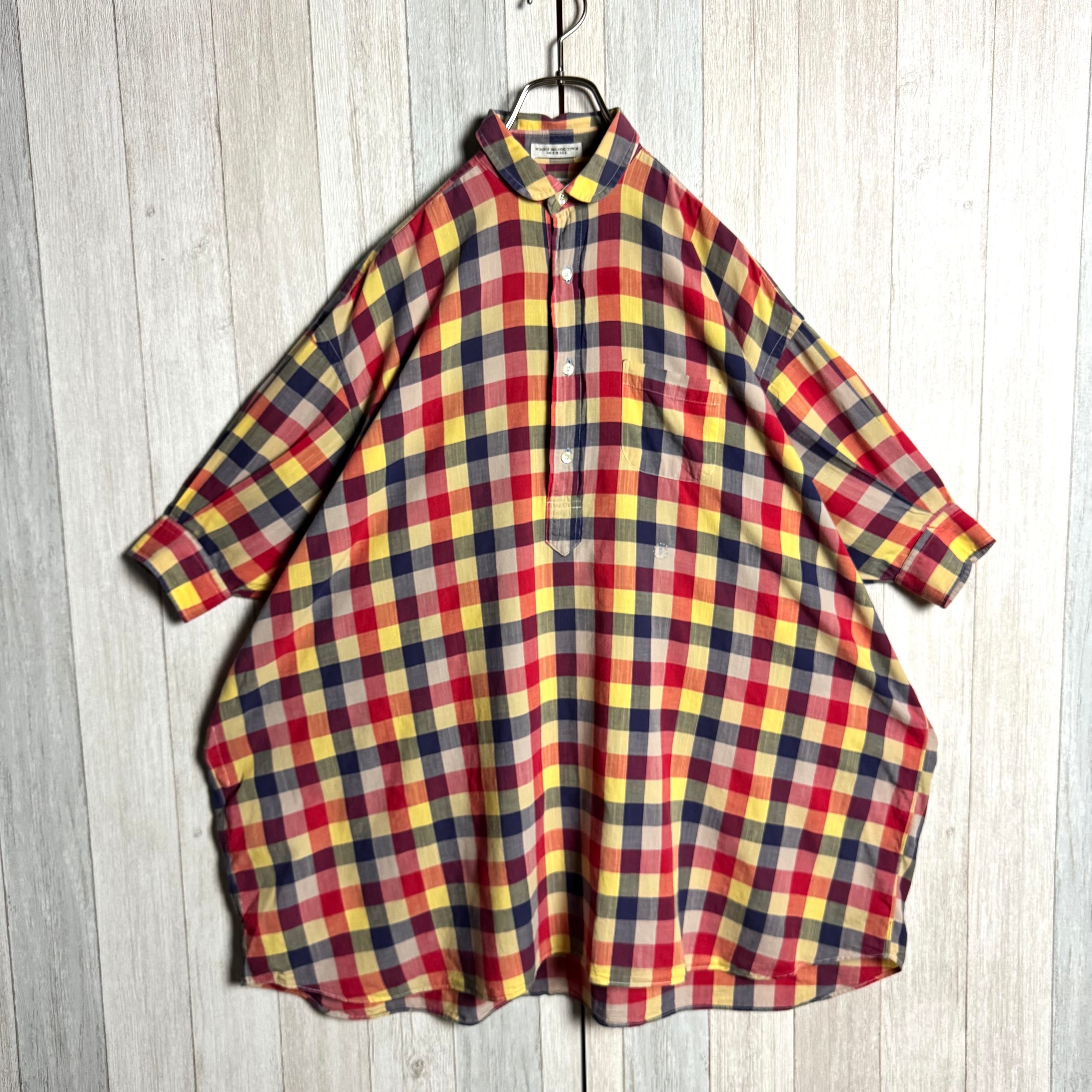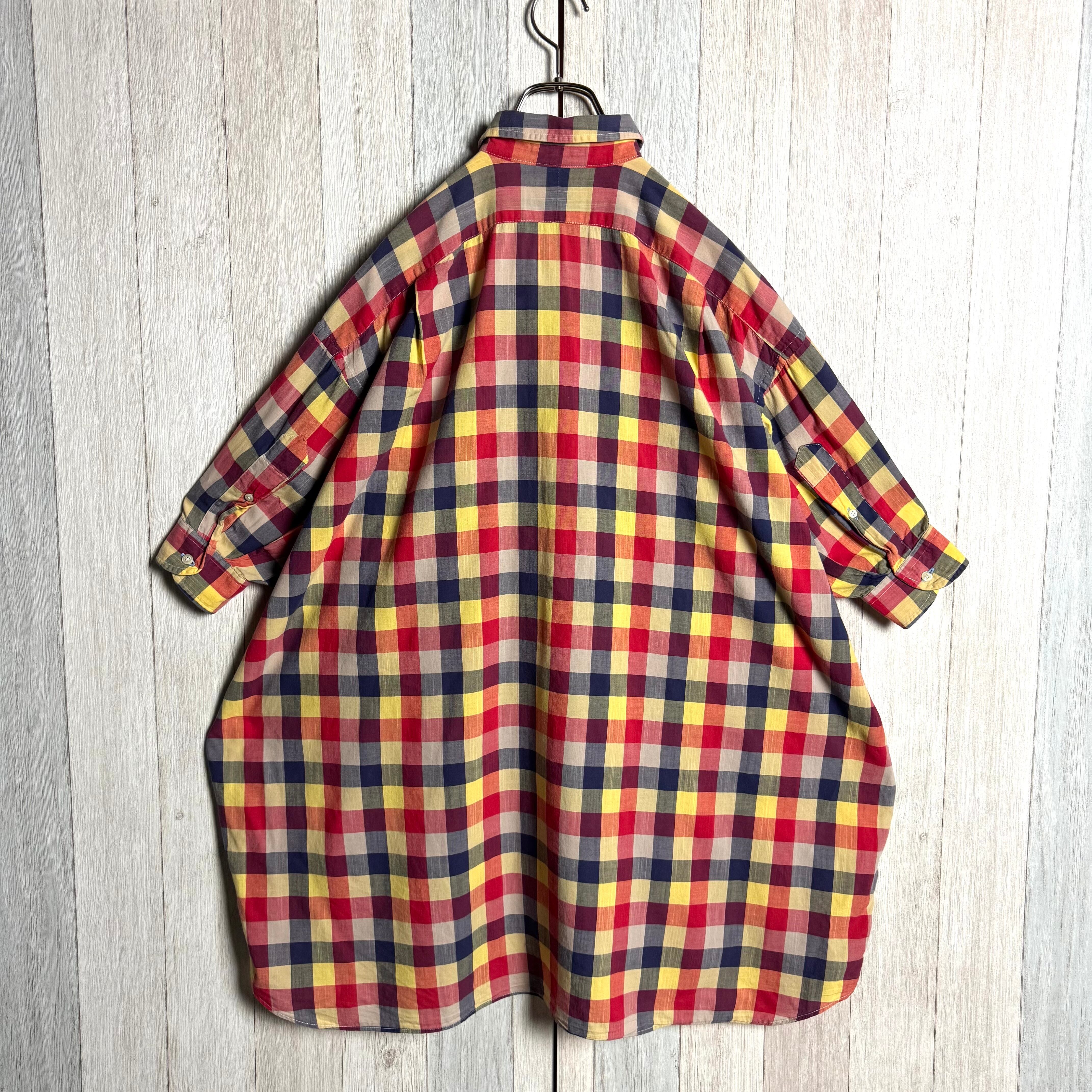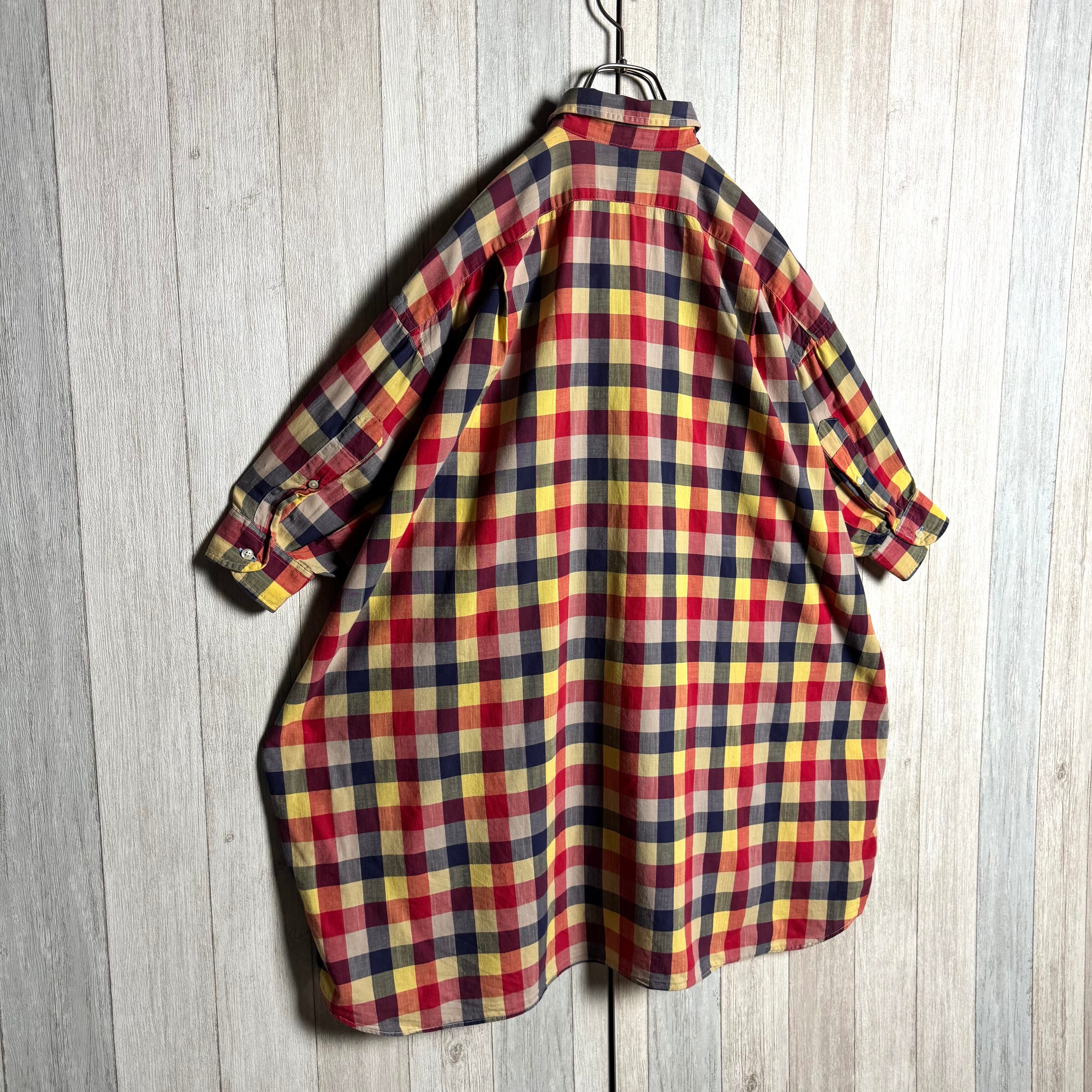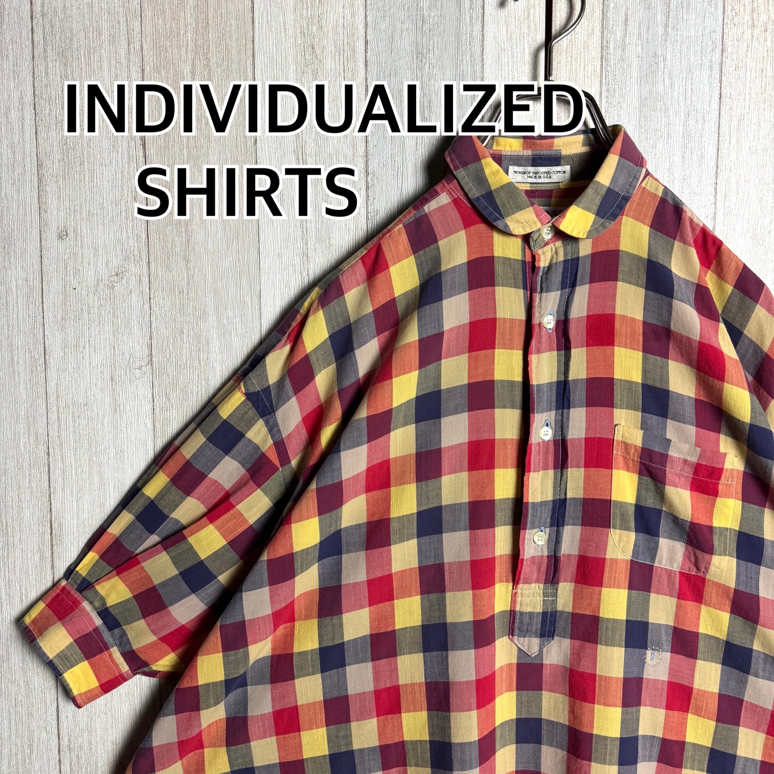 USA製 INDIVIDUALIZED SHIRTS インディビジュアライズドシャツ コットン プルオーバー ワイドシャツ ロング チェック ラウンドカラー