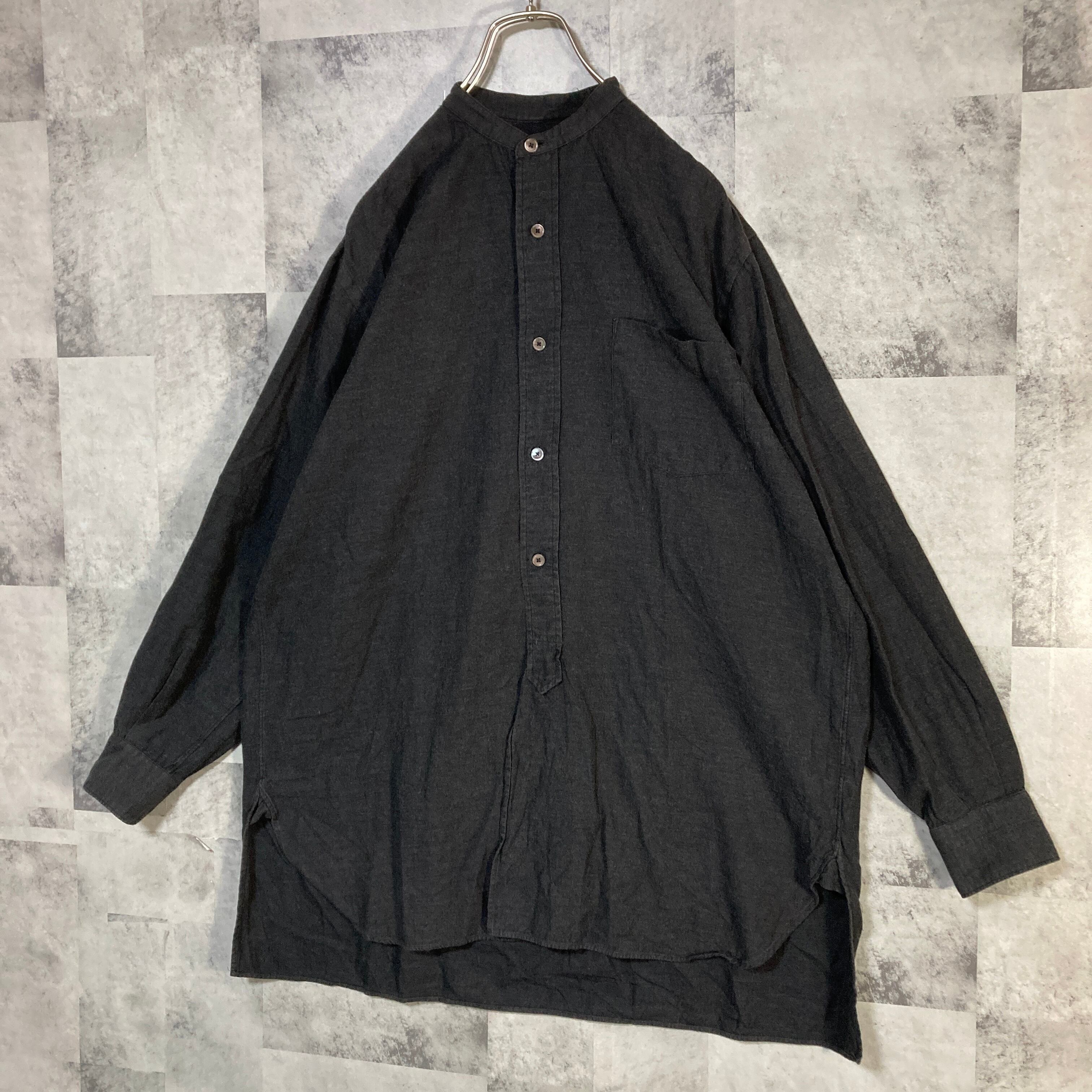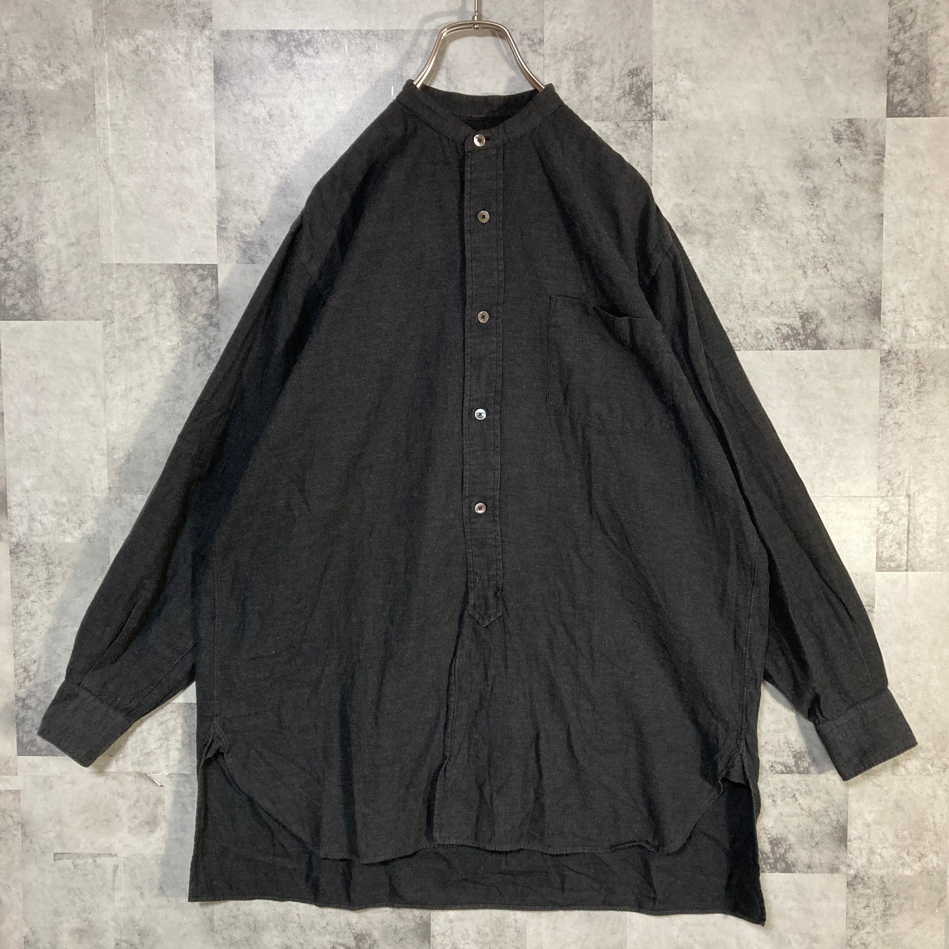 日本製 COMOLI コモリ 長袖 バンドカラー シャツ コットンネル チャコールグレー 1